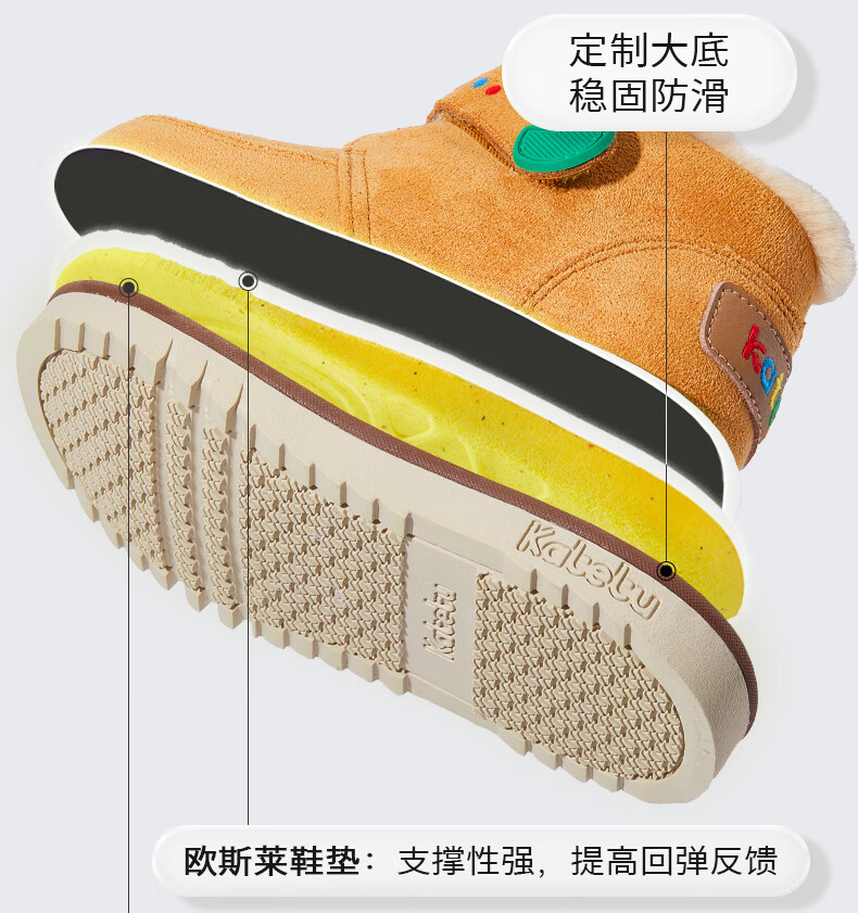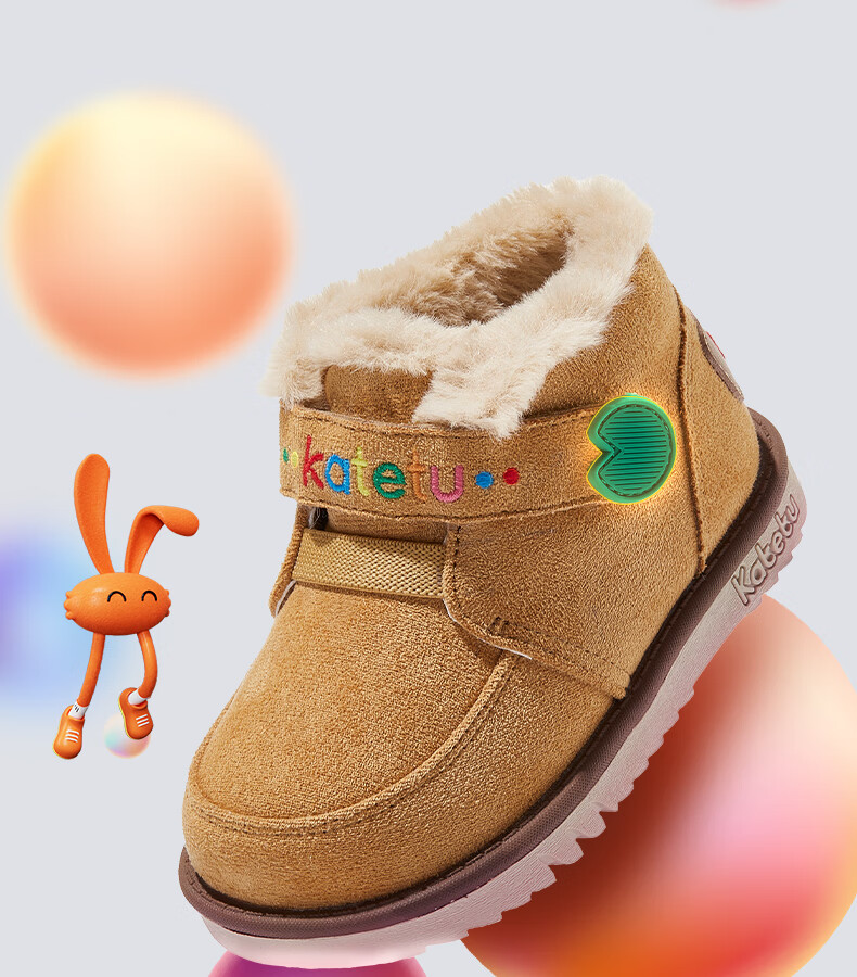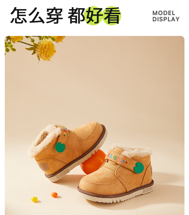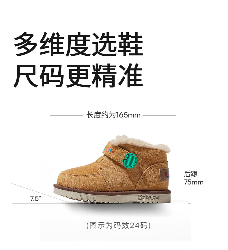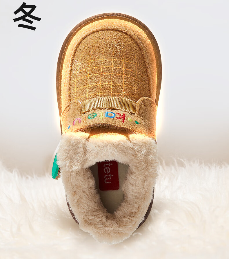 卡特兔儿童雪地靴男童女童毛毛鞋2024冬季新款棉鞋加绒保暖棉靴 棕色 27 内长16.5cm脚长约15.5-16.1cm