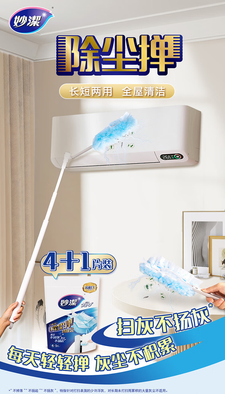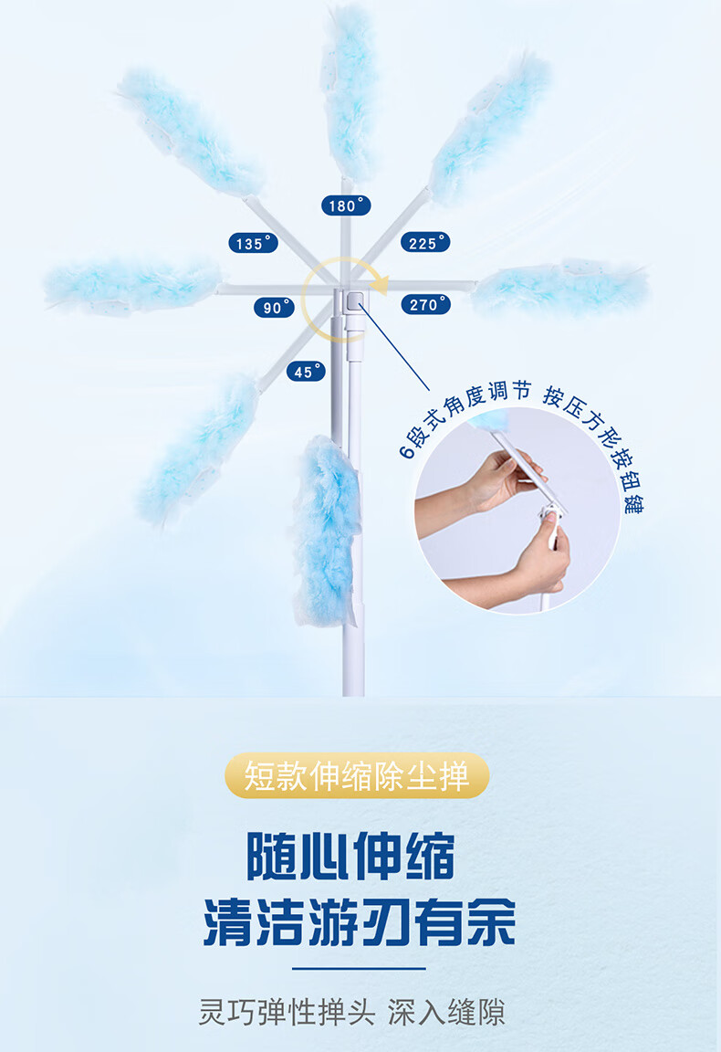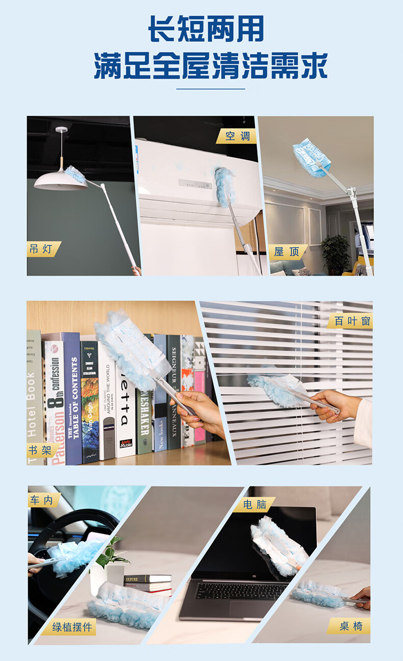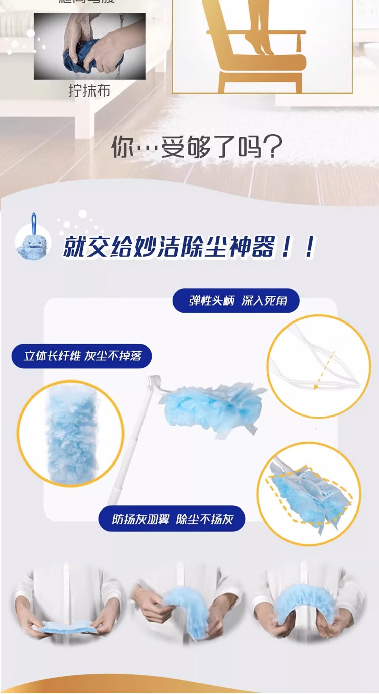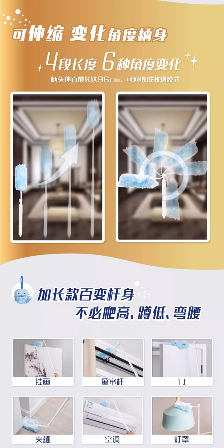 妙洁除尘掸 家务用清洁汽车扫灰鸡毛掸子不掉毛带替换装静电除灰尘 【升级伸缩】短柄1个+替换头5片
