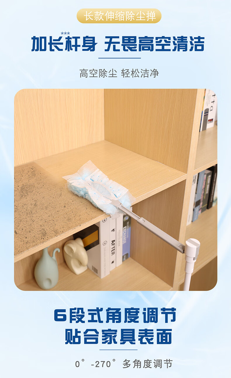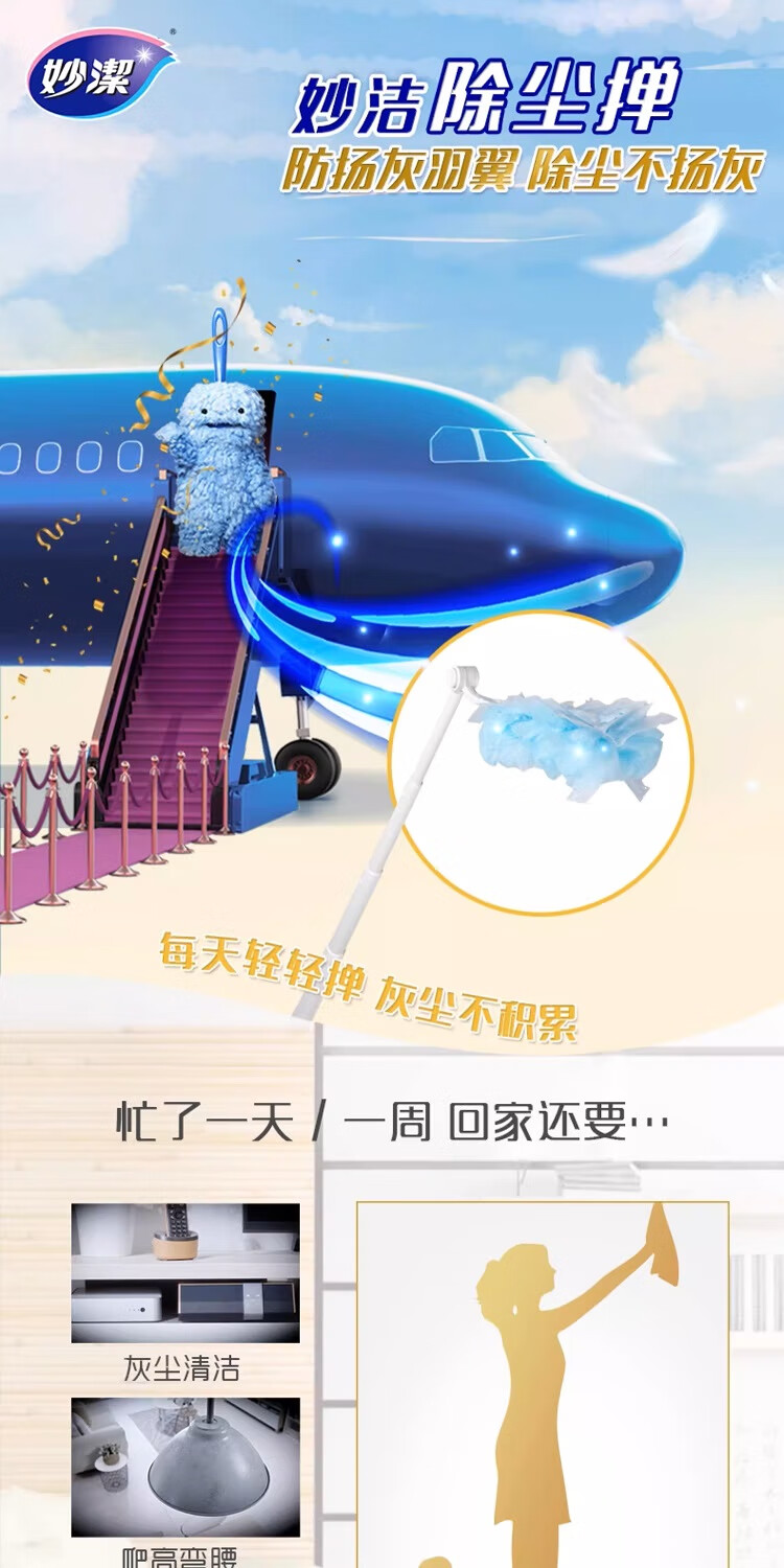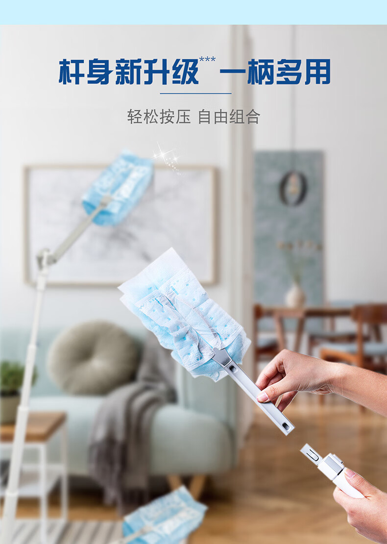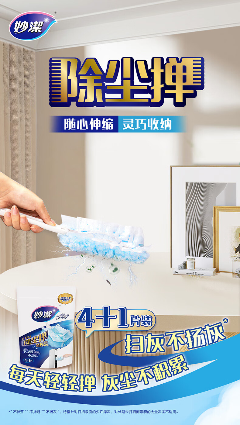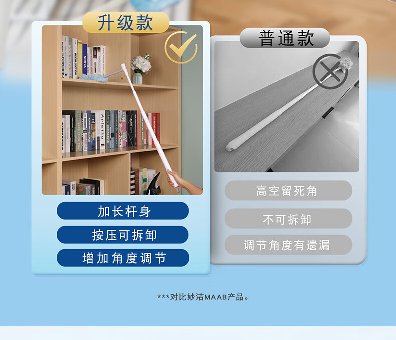 妙洁除尘掸 家务用清洁汽车扫灰鸡毛掸子不掉毛带替换装静电除灰尘 【升级伸缩】短柄1个+替换头5片