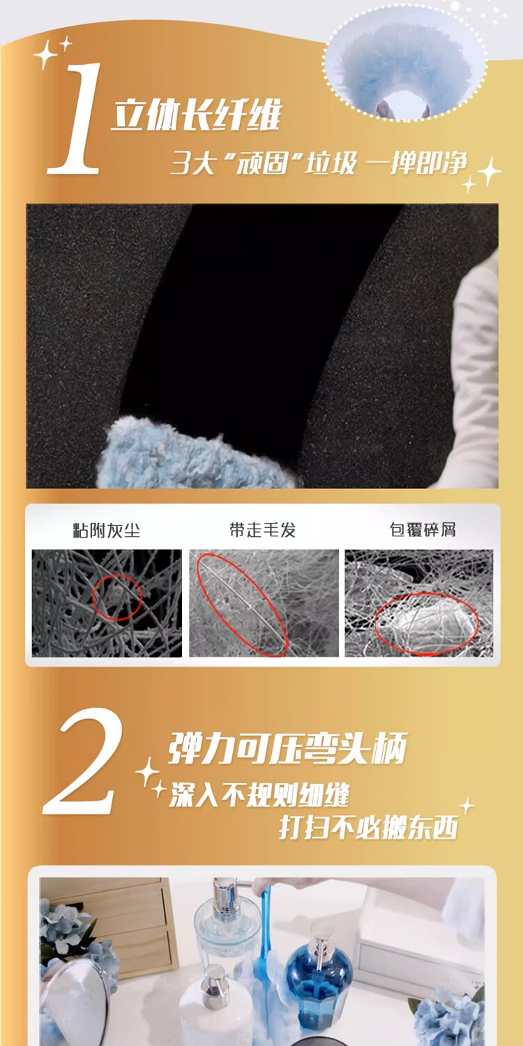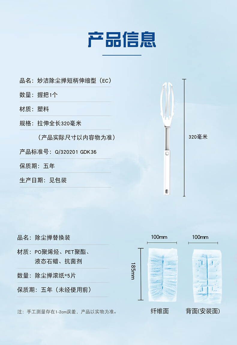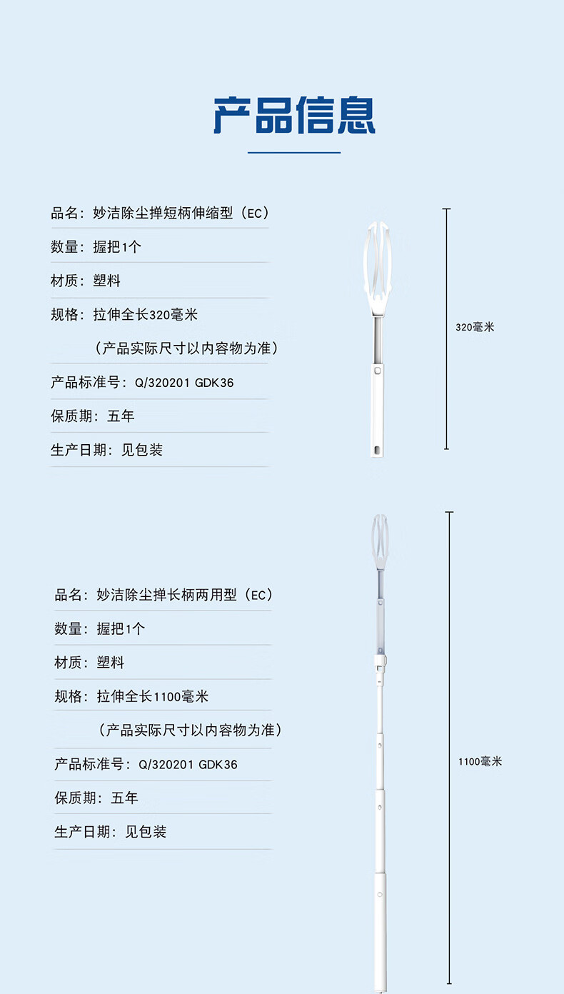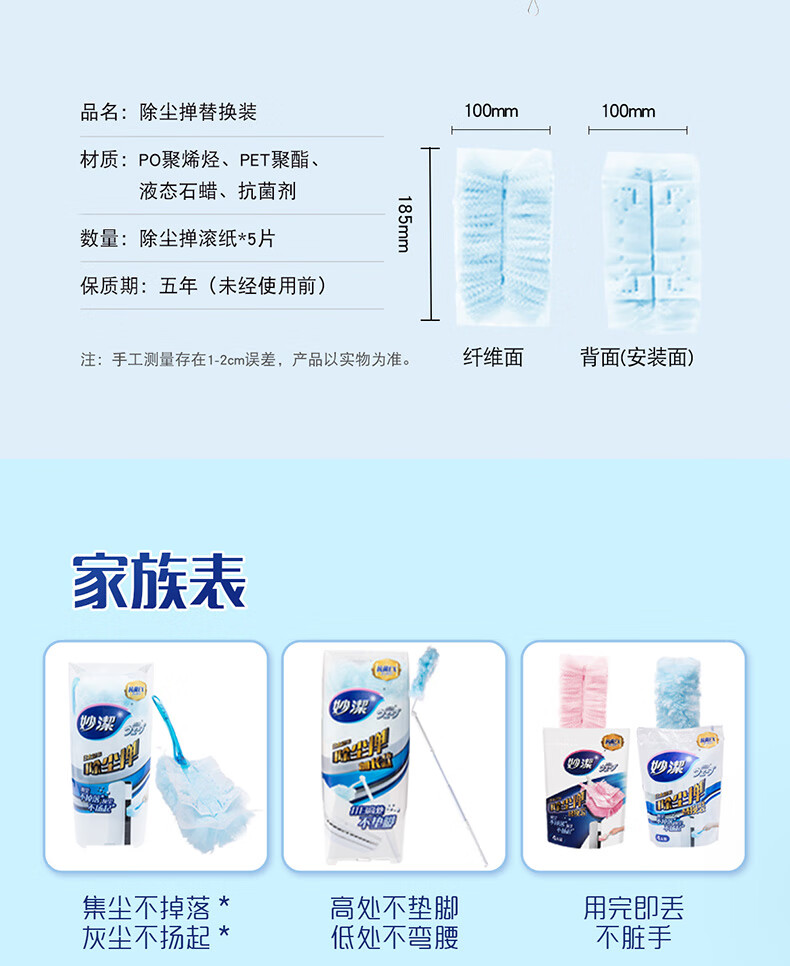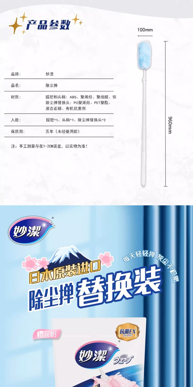 妙洁除尘掸 家务用清洁汽车扫灰鸡毛掸子不掉毛带替换装静电除灰尘 【升级伸缩】短柄1个+替换头5片