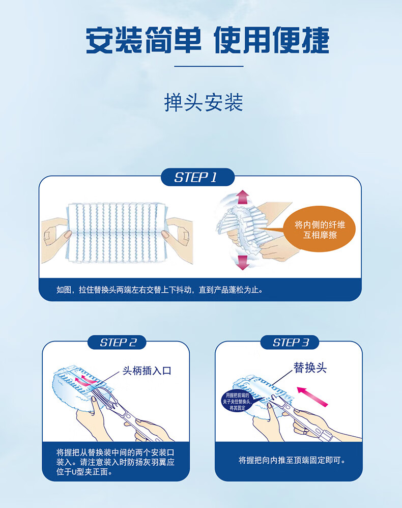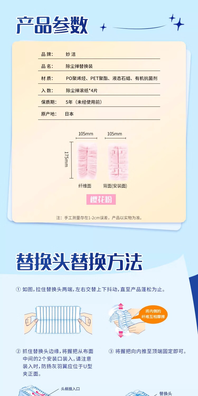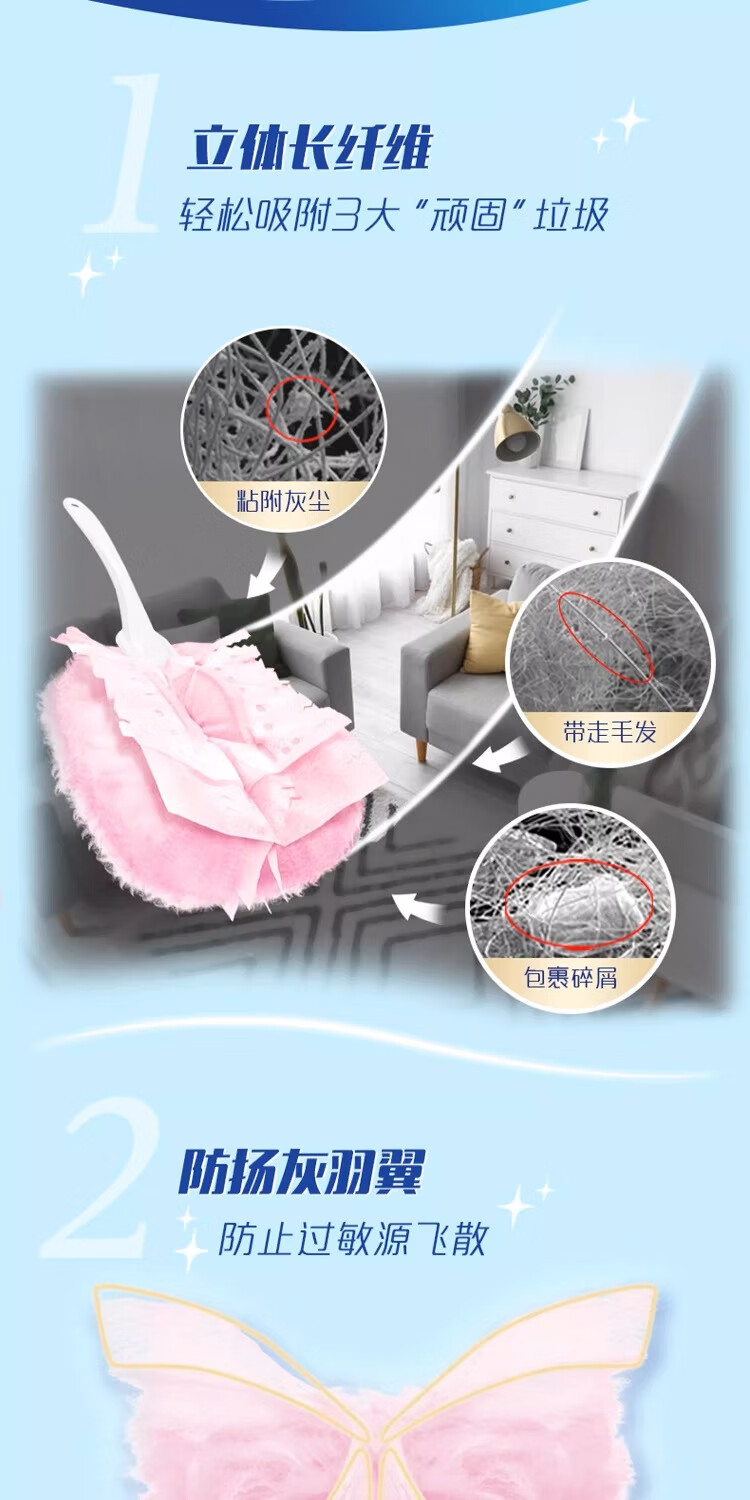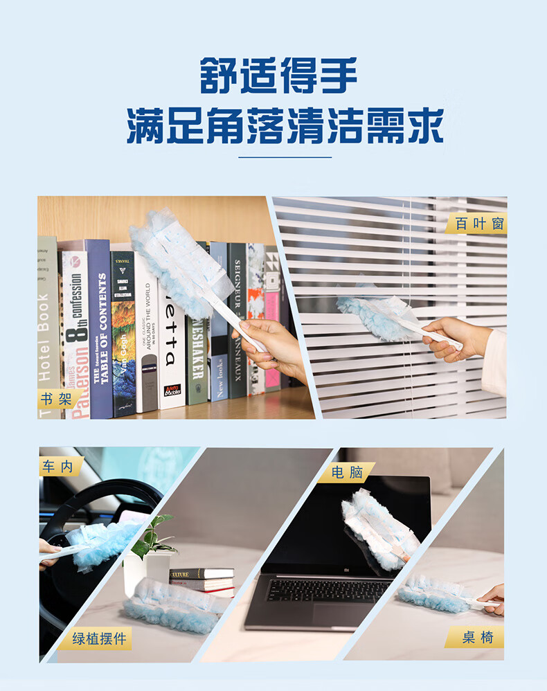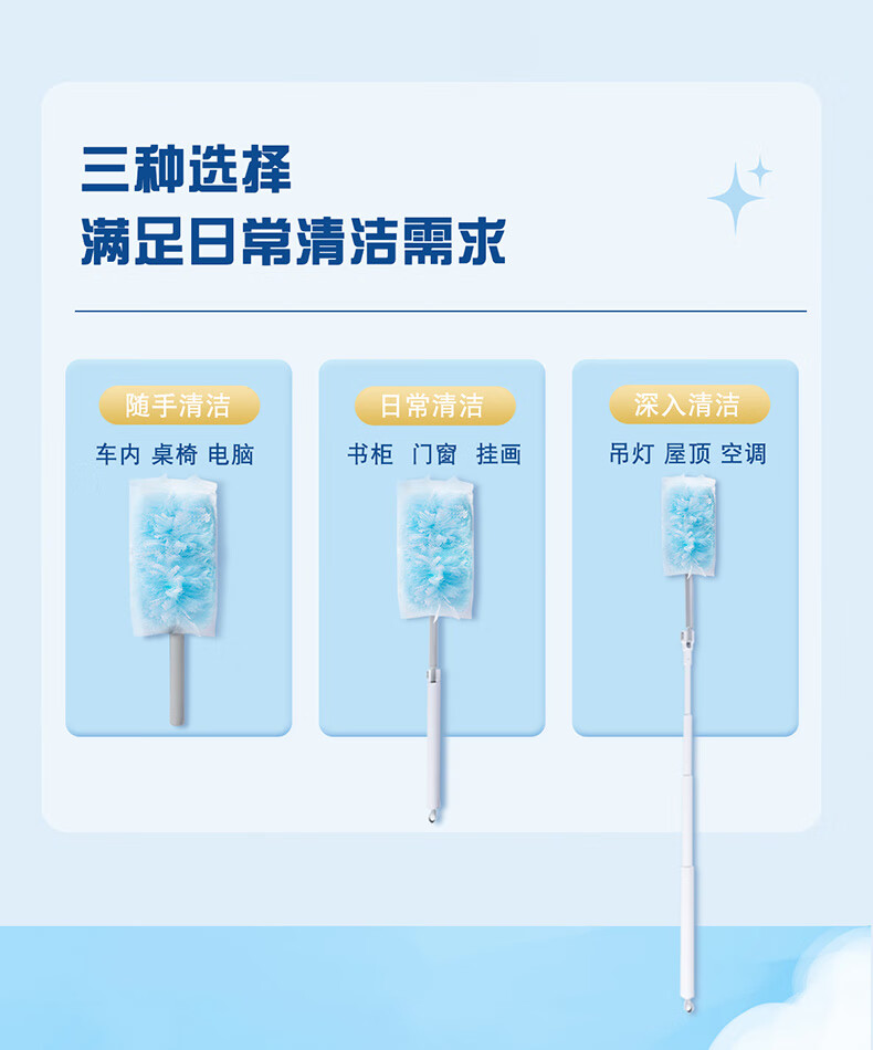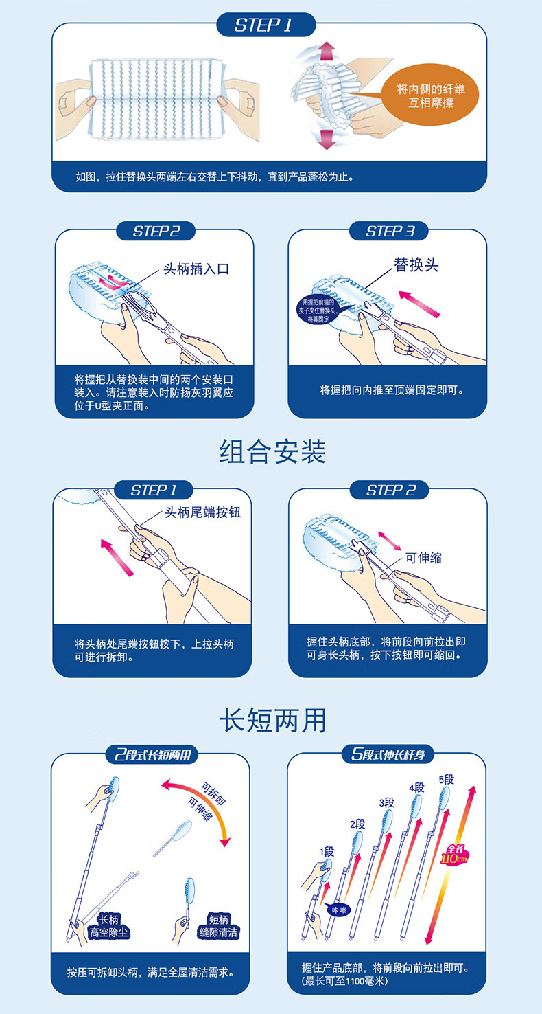 妙洁除尘掸 家务用清洁汽车扫灰鸡毛掸子不掉毛带替换装静电除灰尘 【升级伸缩】短柄1个+替换头5片