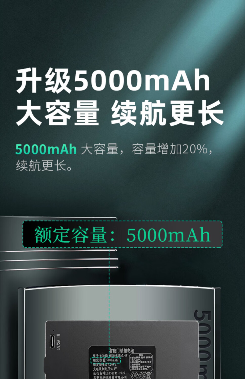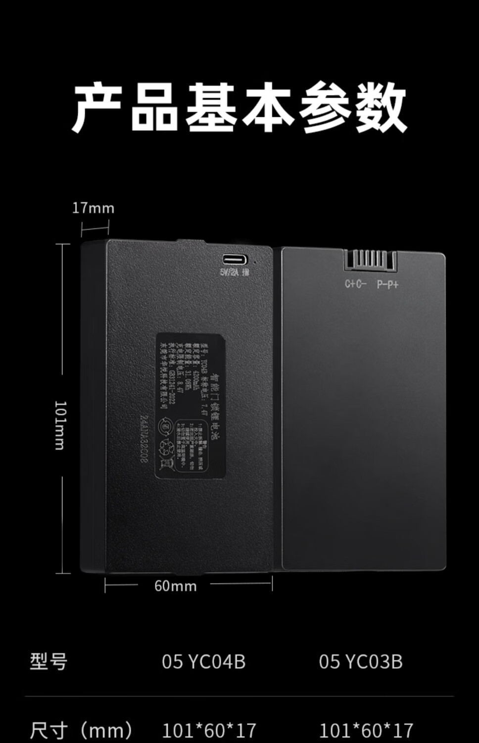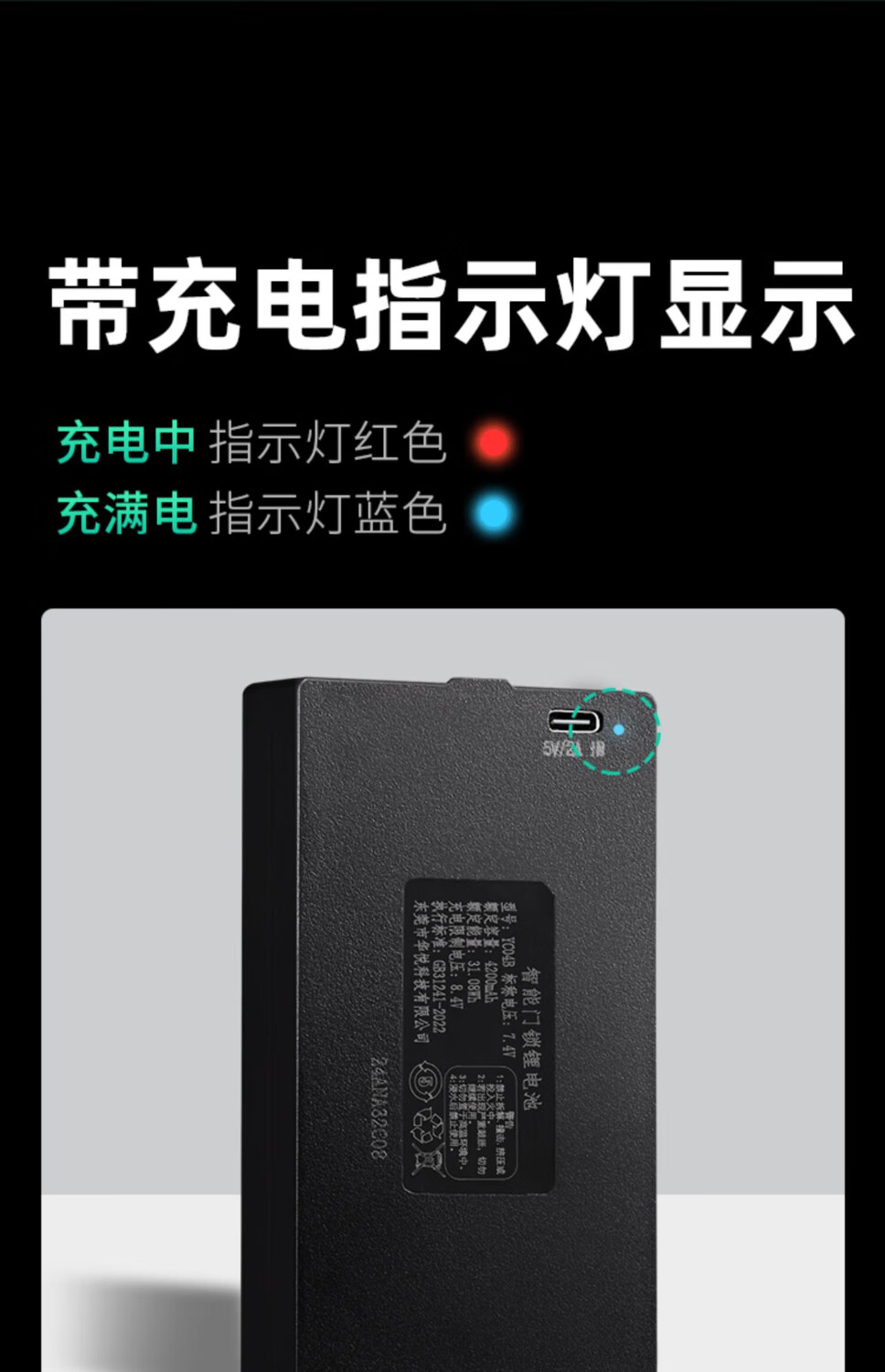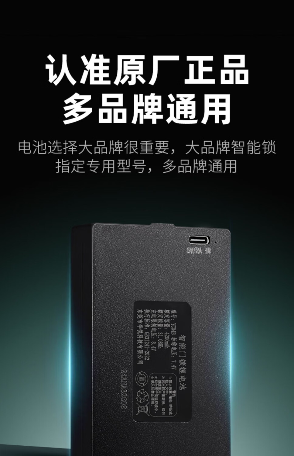 华悦智能门锁锂电池通用防盗门智能锁指纹锁充电密码锁专用电子锁 YC04B【C+C-P-P+】4200mAh