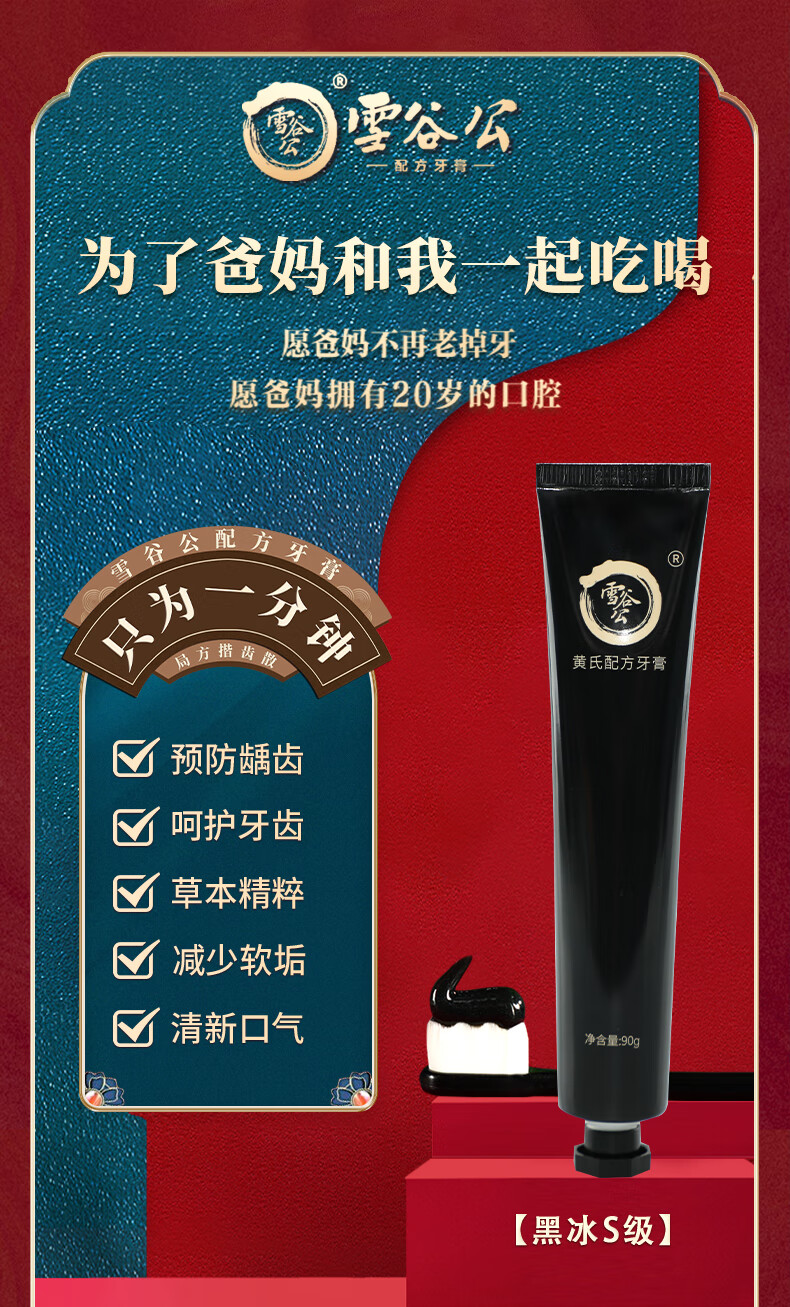 雪谷公牙膏防蛀防龋清新口气90g减少软垢官方旗舰店正品 黑冰单支90g正装 支持试用