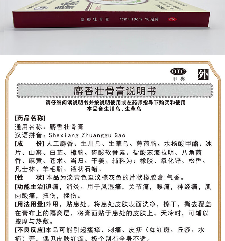 [西山]麝香壮骨膏 7cm*10cm*10贴 3盒装 7cm*10cm*10贴镇痛消炎 风湿痛关节痛 腰痛神经痛肌肉酸痛扭伤挫伤 正品直发