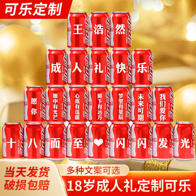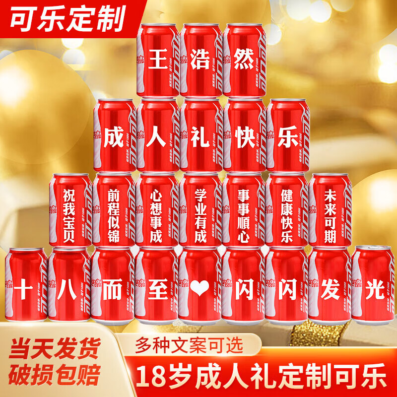 可口可乐 定制刻字儿童生日宴宝宝满月周岁可乐定制礼物十八岁成人礼装饰 16罐(周岁1号版本)