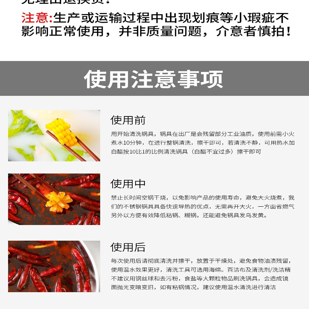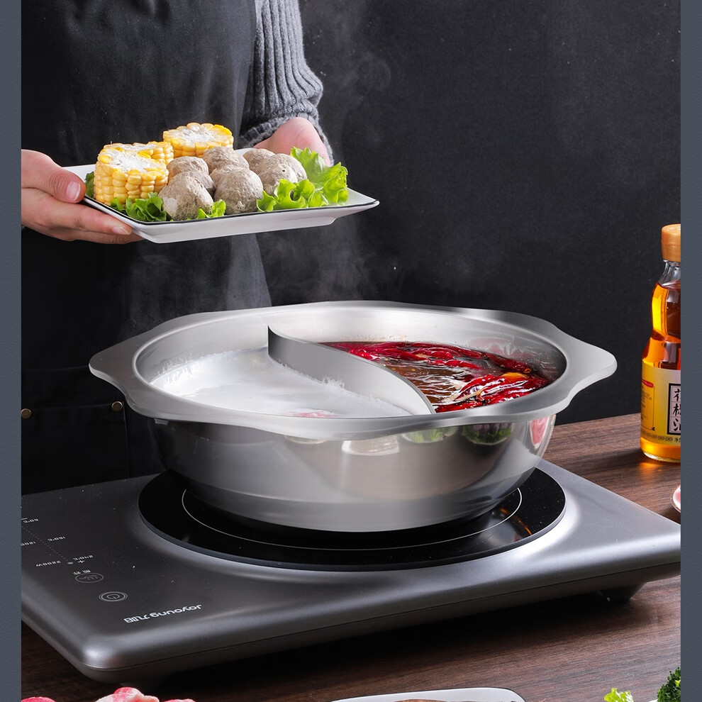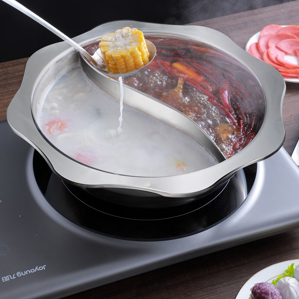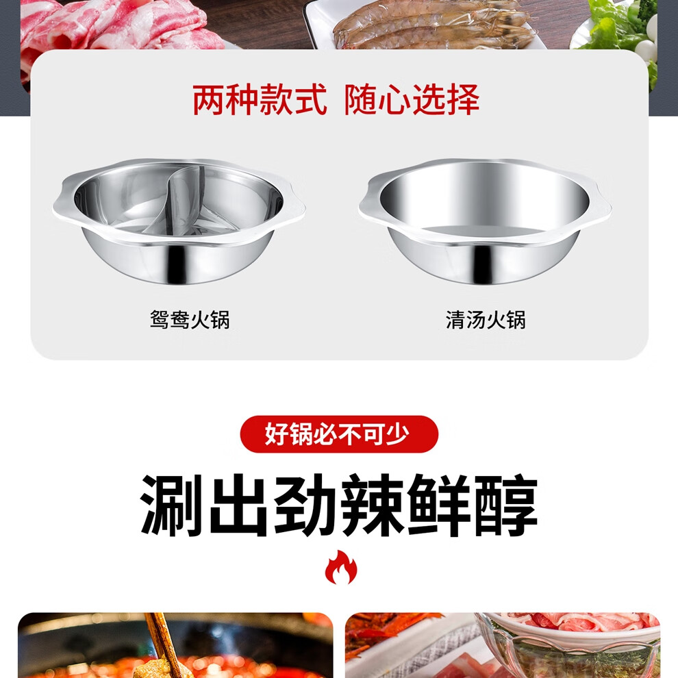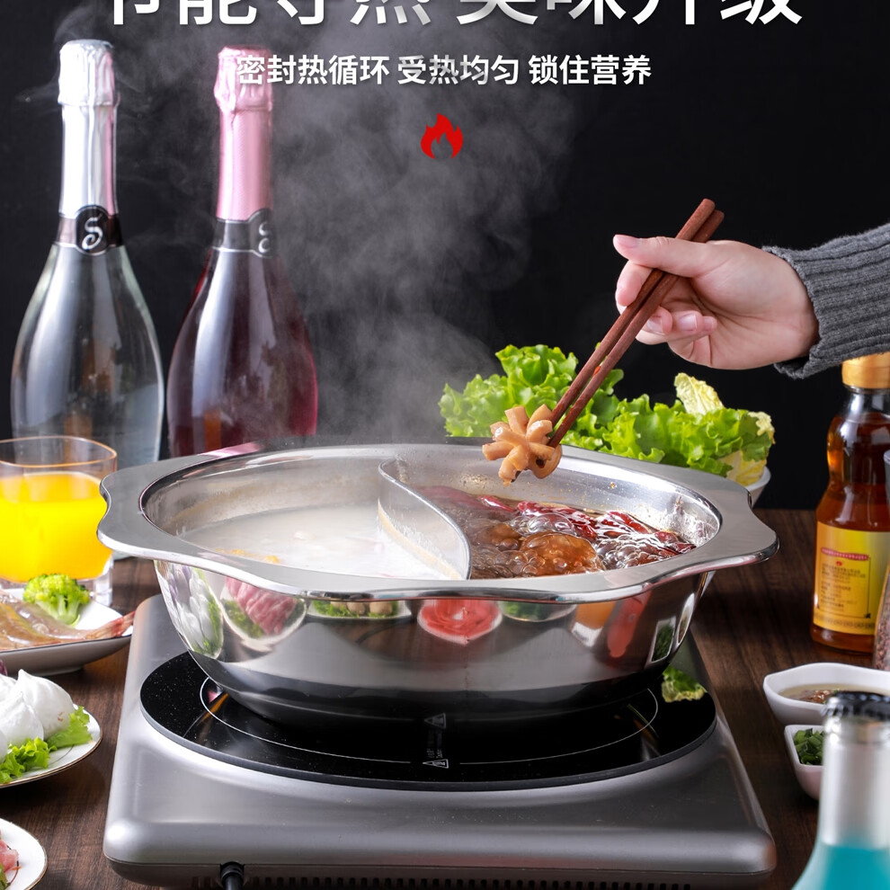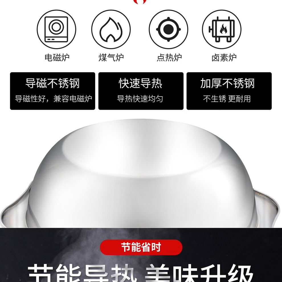日禾盛唐火锅家用电磁炉锅火锅锅盆不锈钢涮锅大容量大号加厚众耐用 加厚清汤锅【送汤勺+漏勺】- 34cm