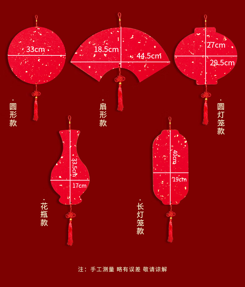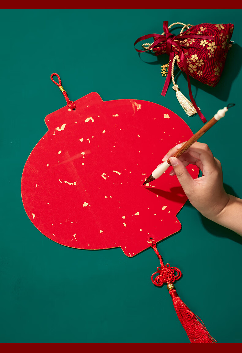玉水湖红色硬卡加厚空白斗方自写书法毛笔2026马年新年中国结挂饰写福字卡纸新款挂件 万年红长灯笼10个
