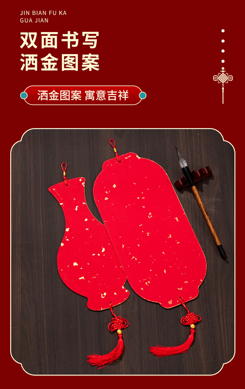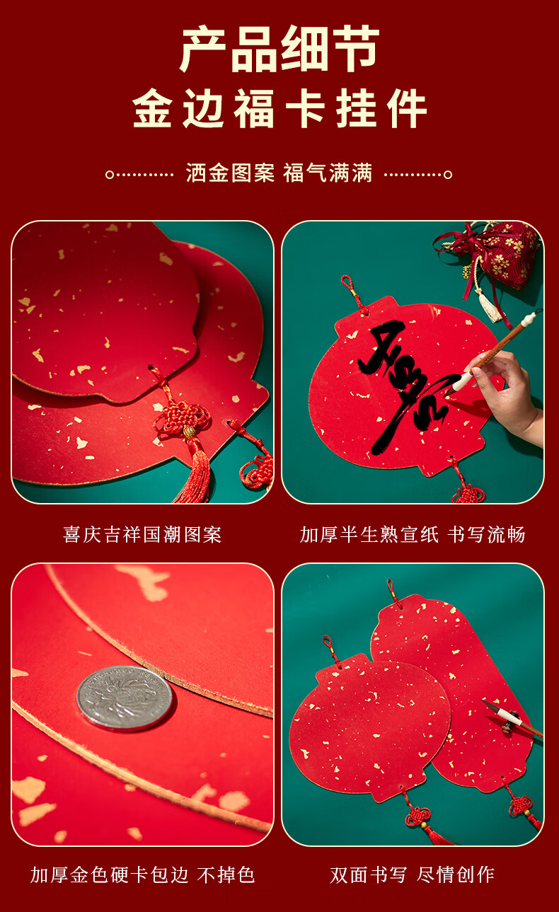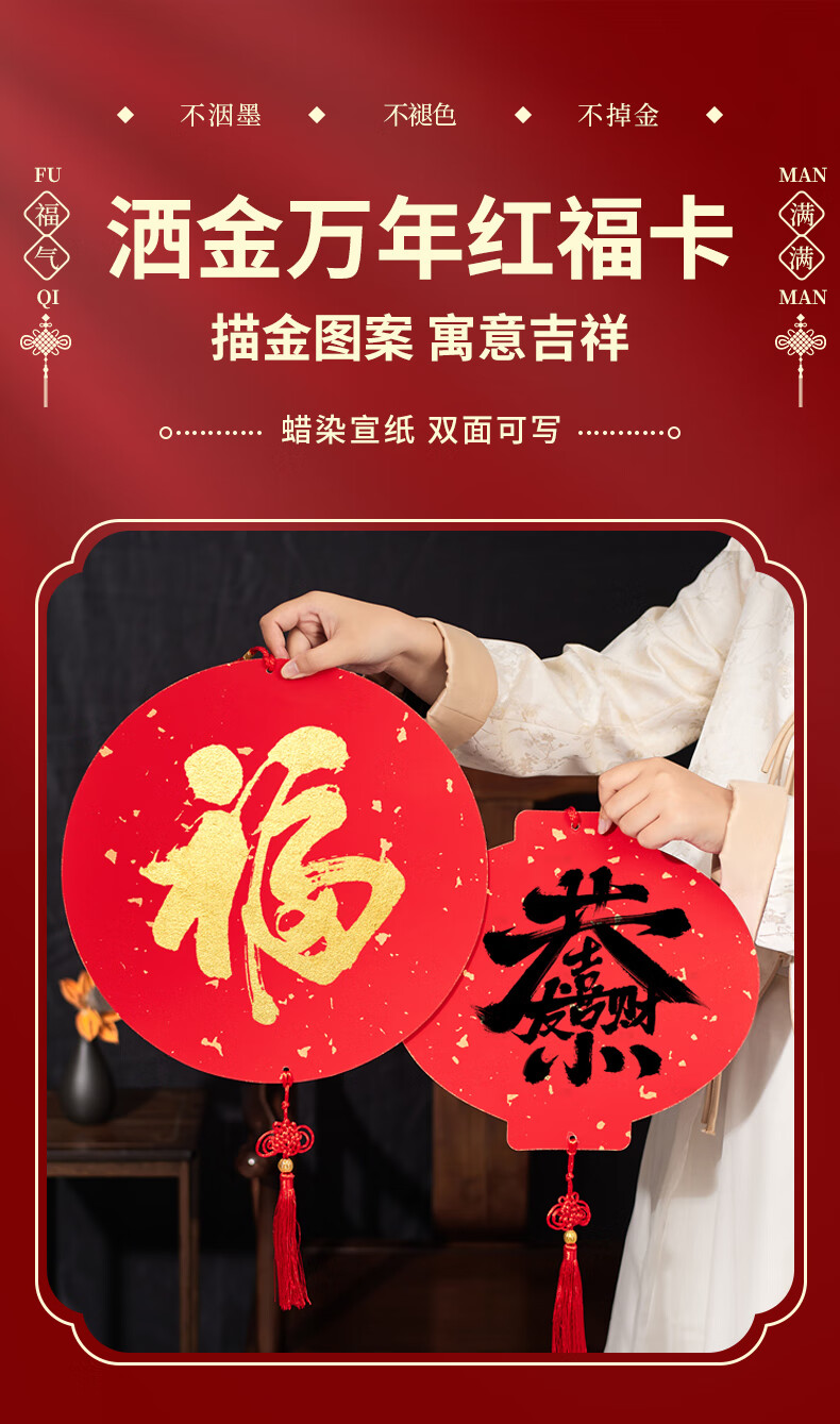 玉水湖万年红福字斗方纸100张空白对联手写加厚春节新年专用门贴福纸洒金春联书法毛笔用纸 空白洒金34cm