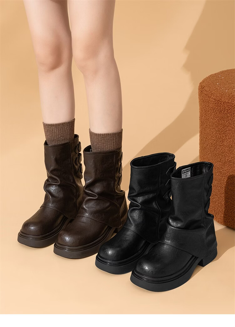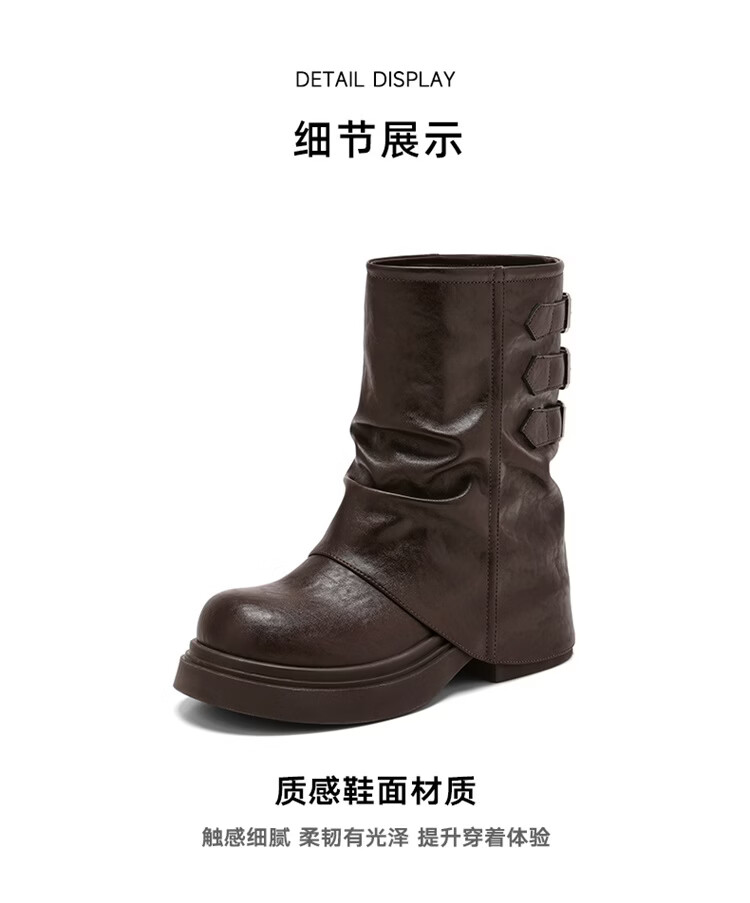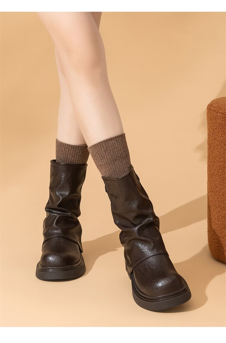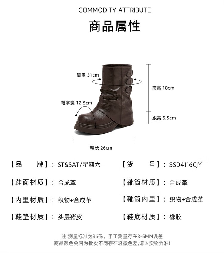 星期六厚底马丁靴女款2025新款秋季棕色骑士短靴复古美拉德裤管靴 棕色 【跟高5.5cm】 39