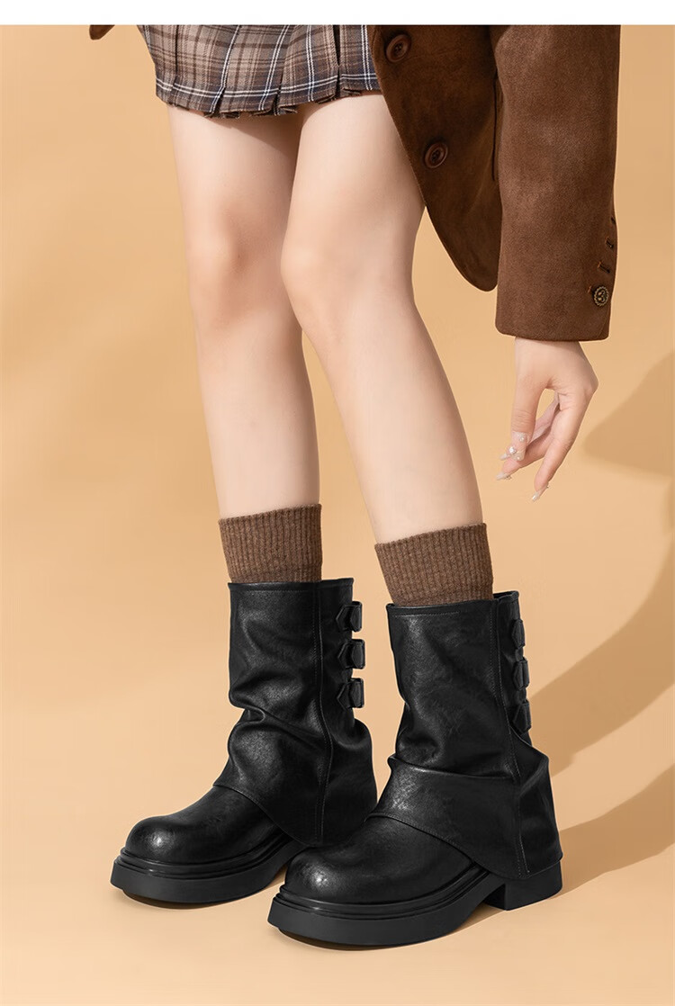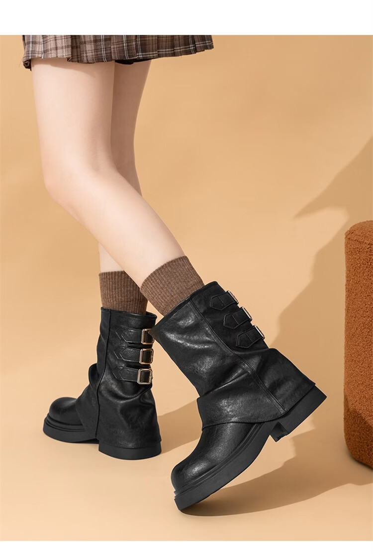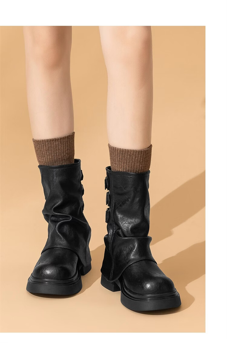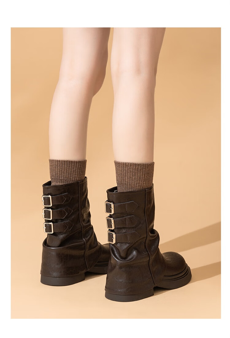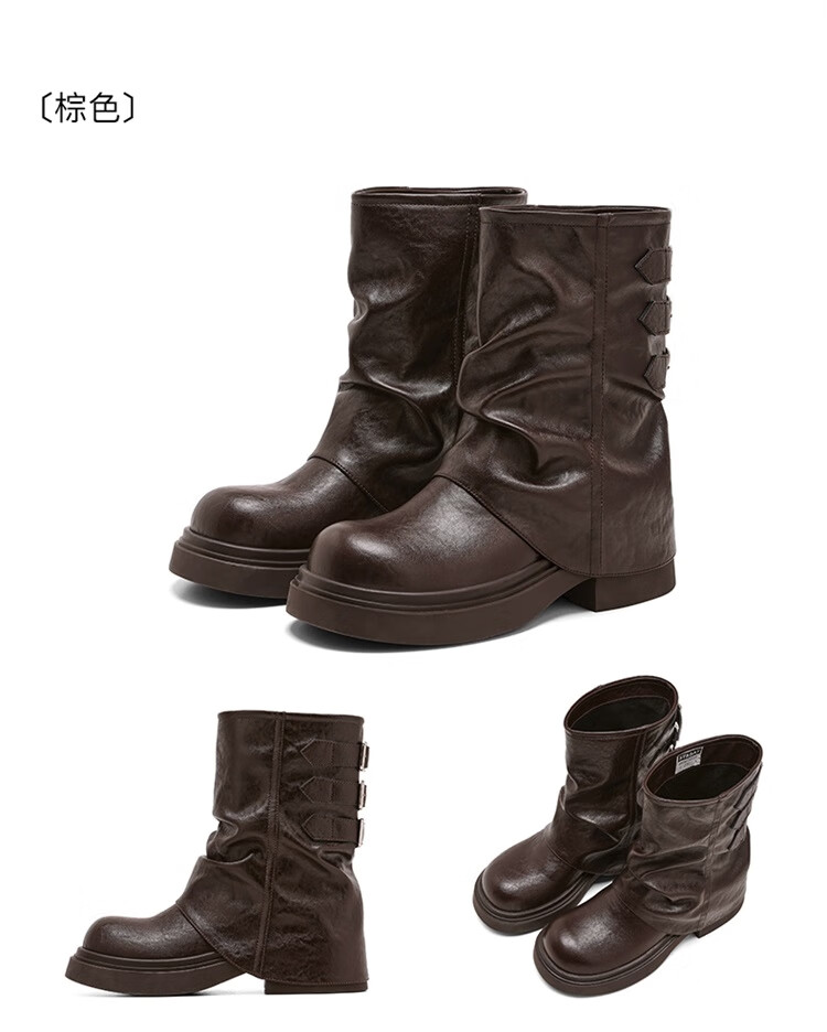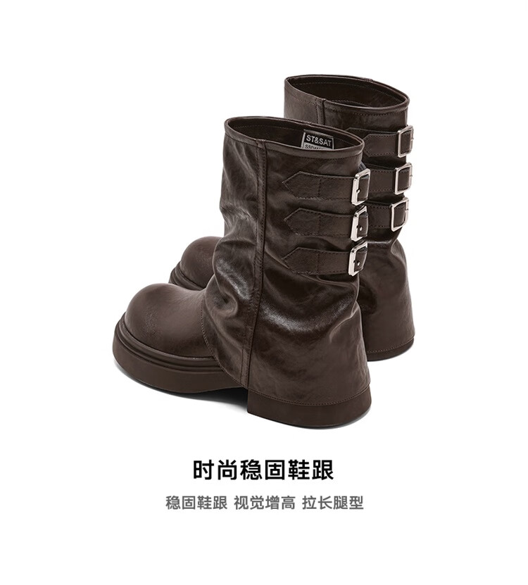 星期六复古风机车靴女2025新款秋冬休闲百搭舒适皮靴短靴百搭马丁靴 棕色 【复古百搭】 35 225