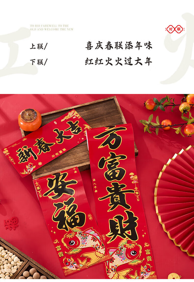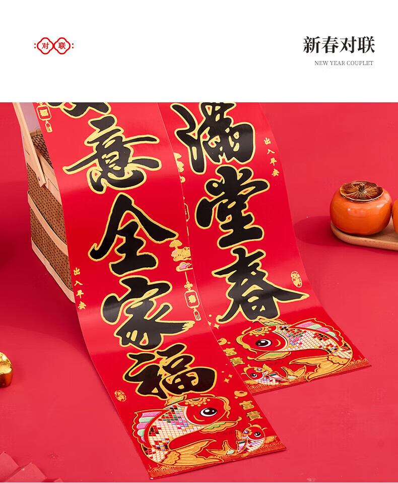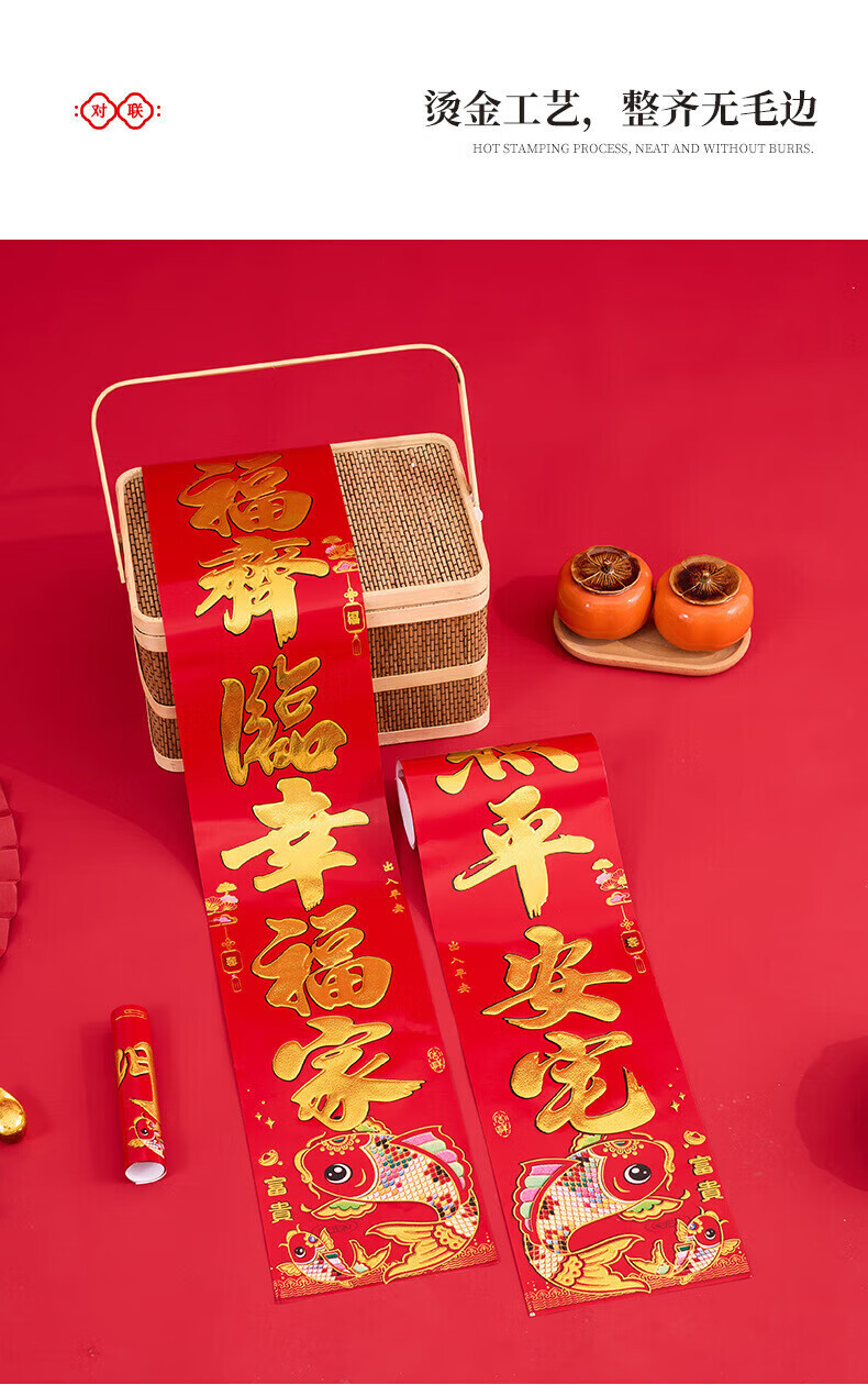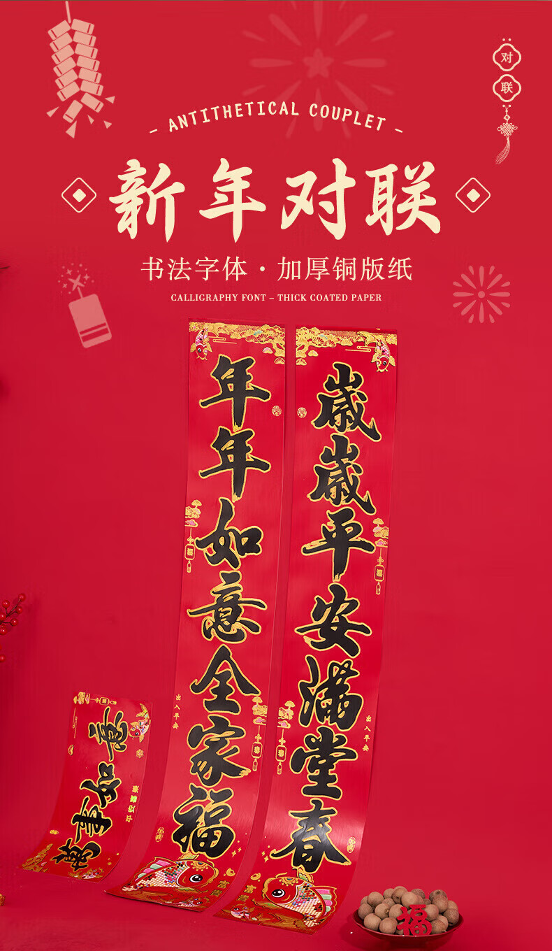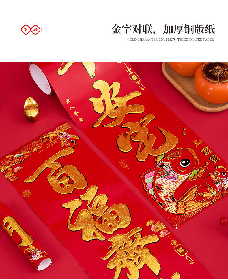 喜庆对联2026马年加厚铜版纸门贴新年春节过年家用大门装饰门联 铜版鱼金字 1.3米/不挑词句/都是好词