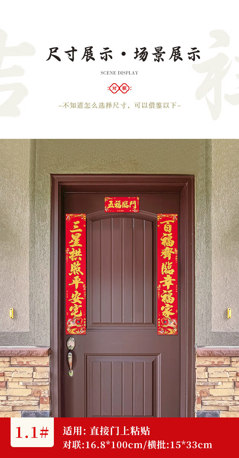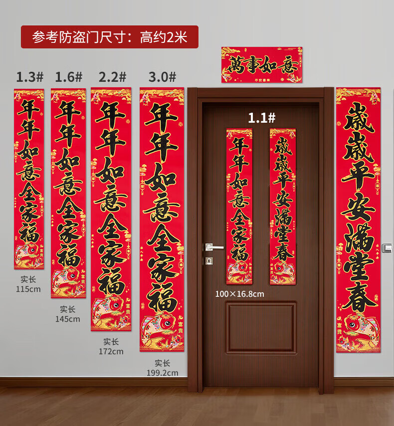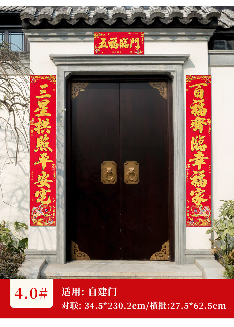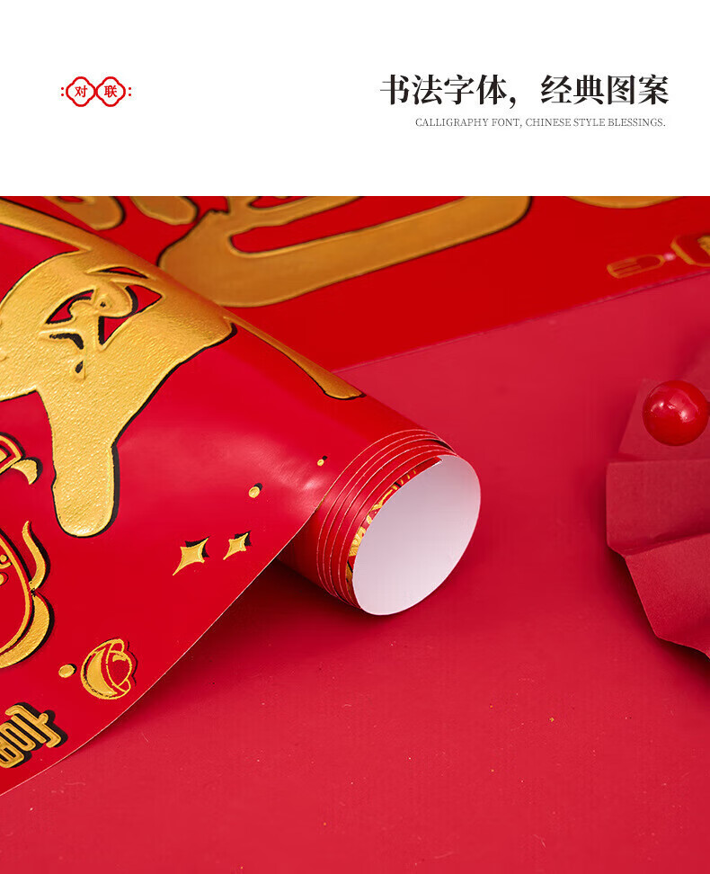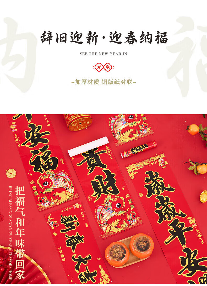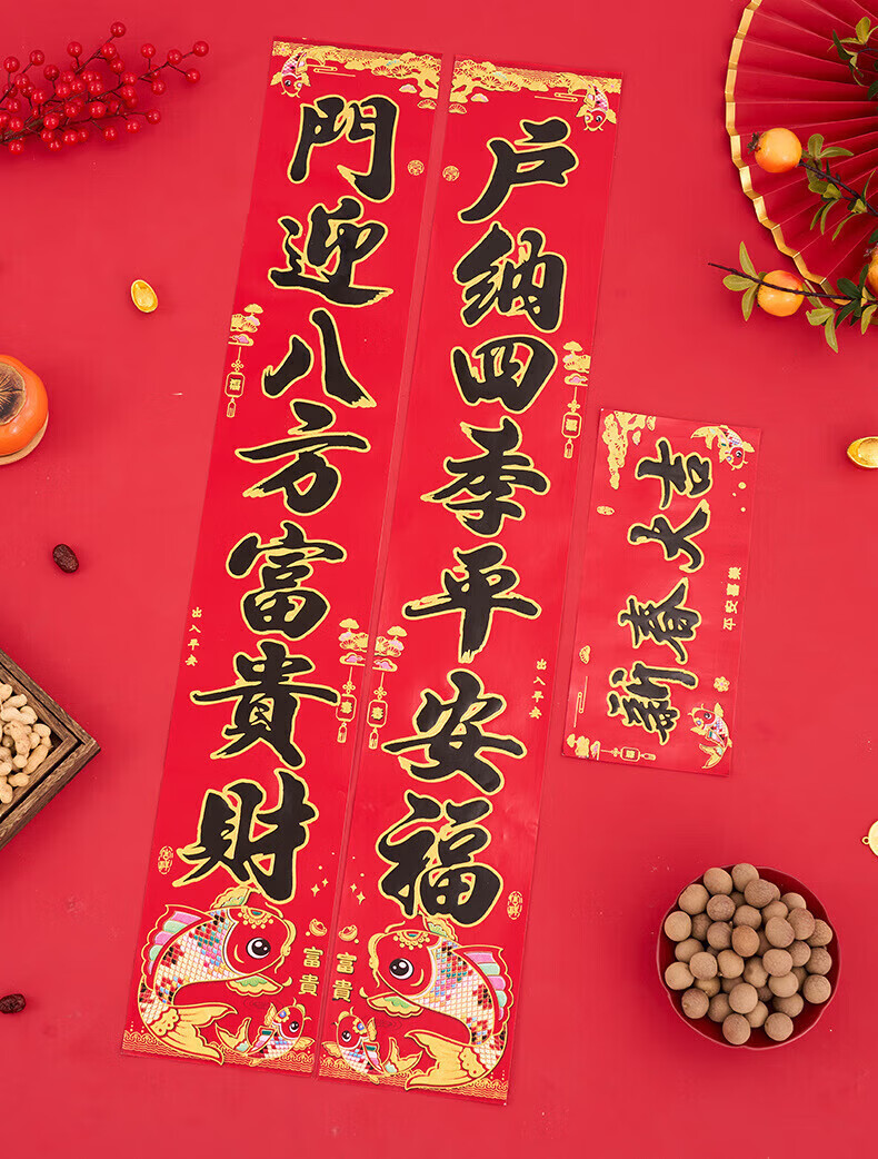 喜庆对联2026马年加厚铜版纸门贴新年春节过年家用大门装饰门联 铜版鱼金字 1.3米/不挑词句/都是好词
