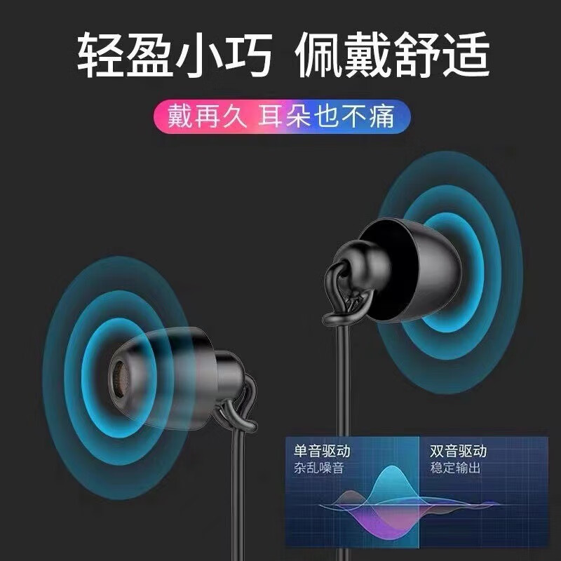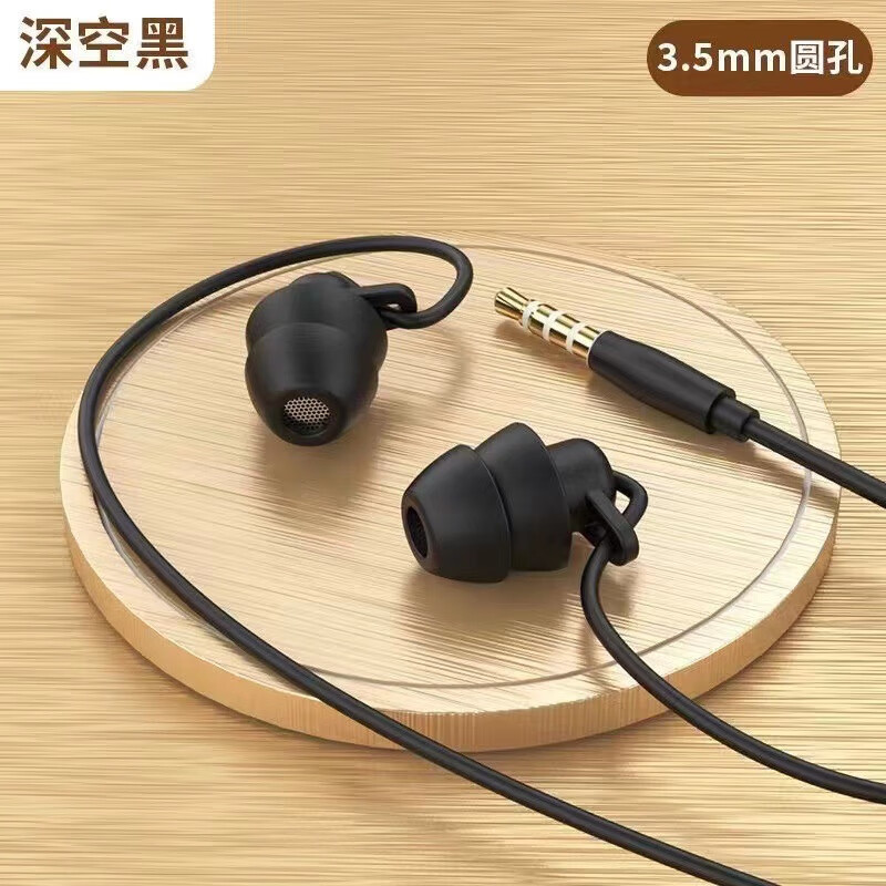 入耳式二代睡眠耳机音乐重低音动圈耳机手机电脑通用耳机 3.5圆孔黑色单层单麦