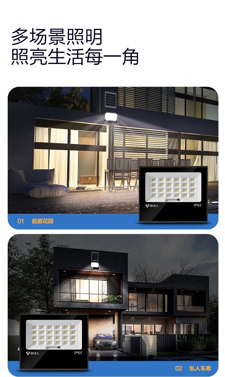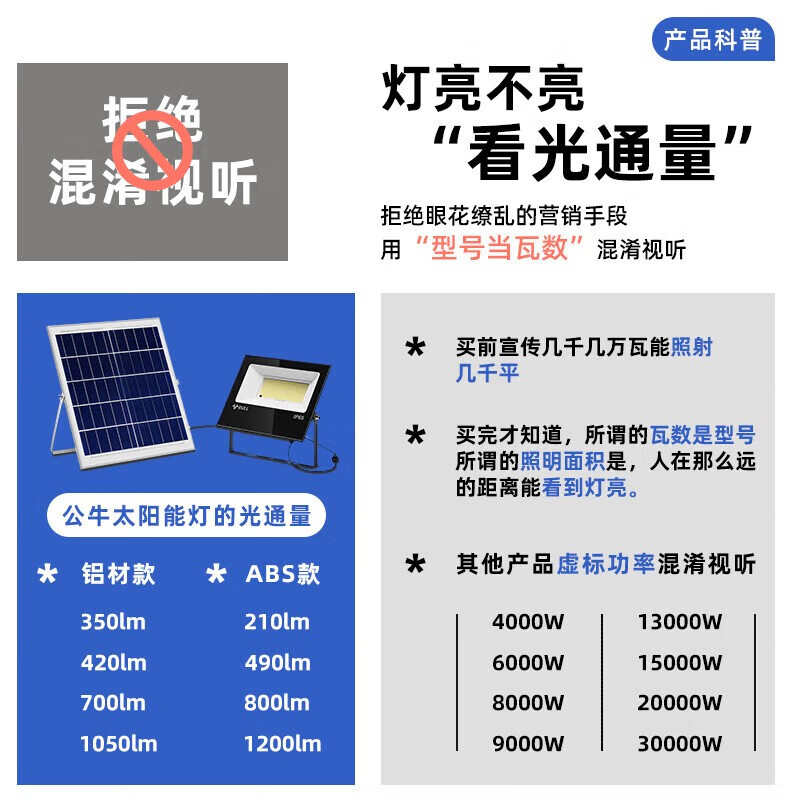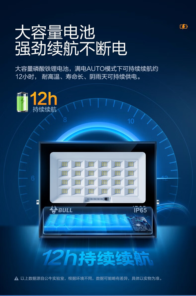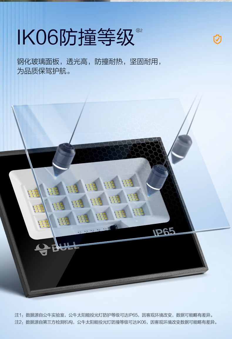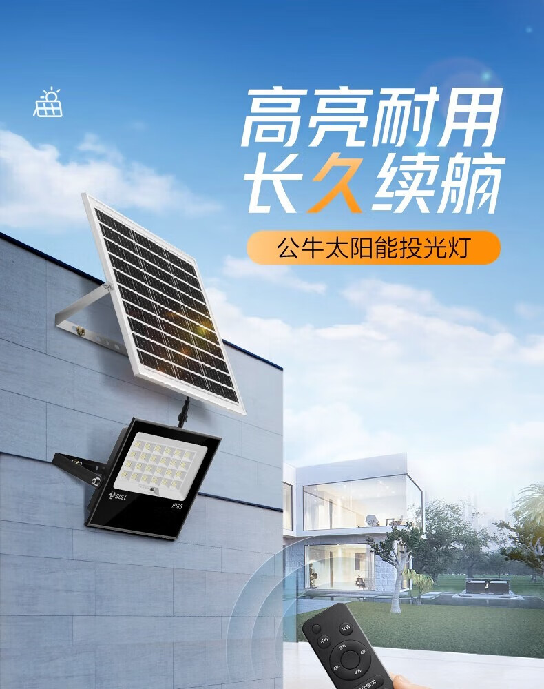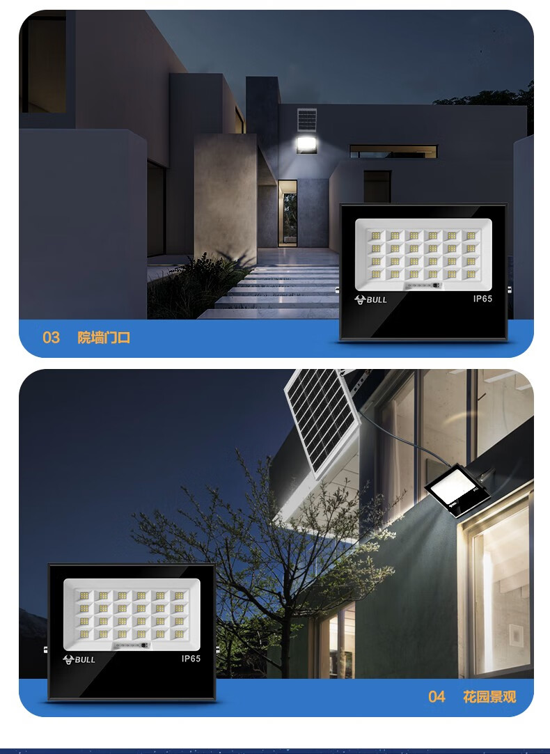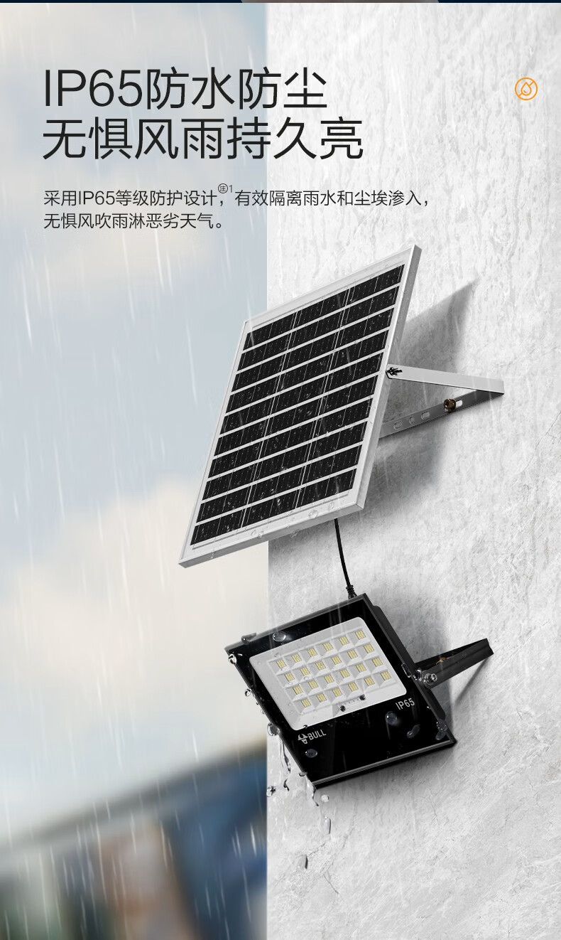 公牛太阳能户外照明灯 庭院灯农村院子家用防雨大功率路灯LED室外射灯 【防水】照明约120m² 高亮800lm