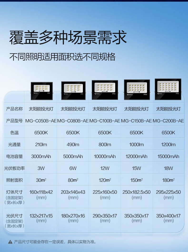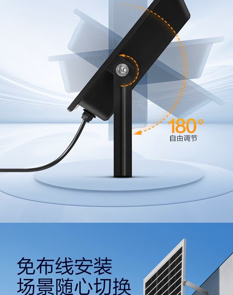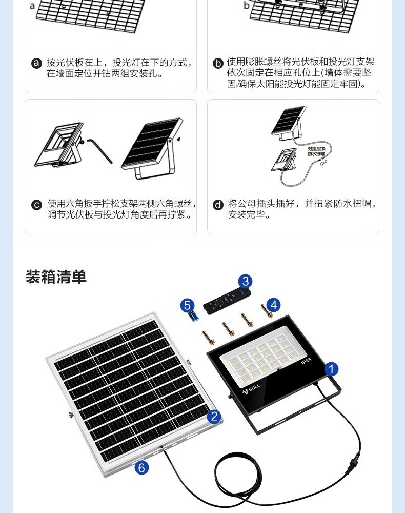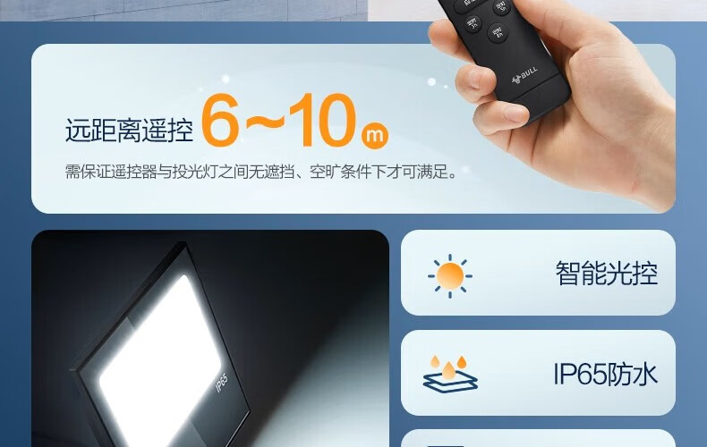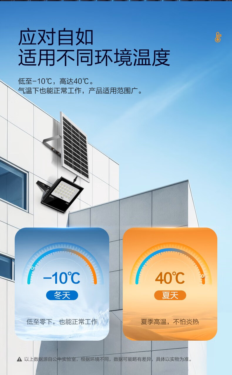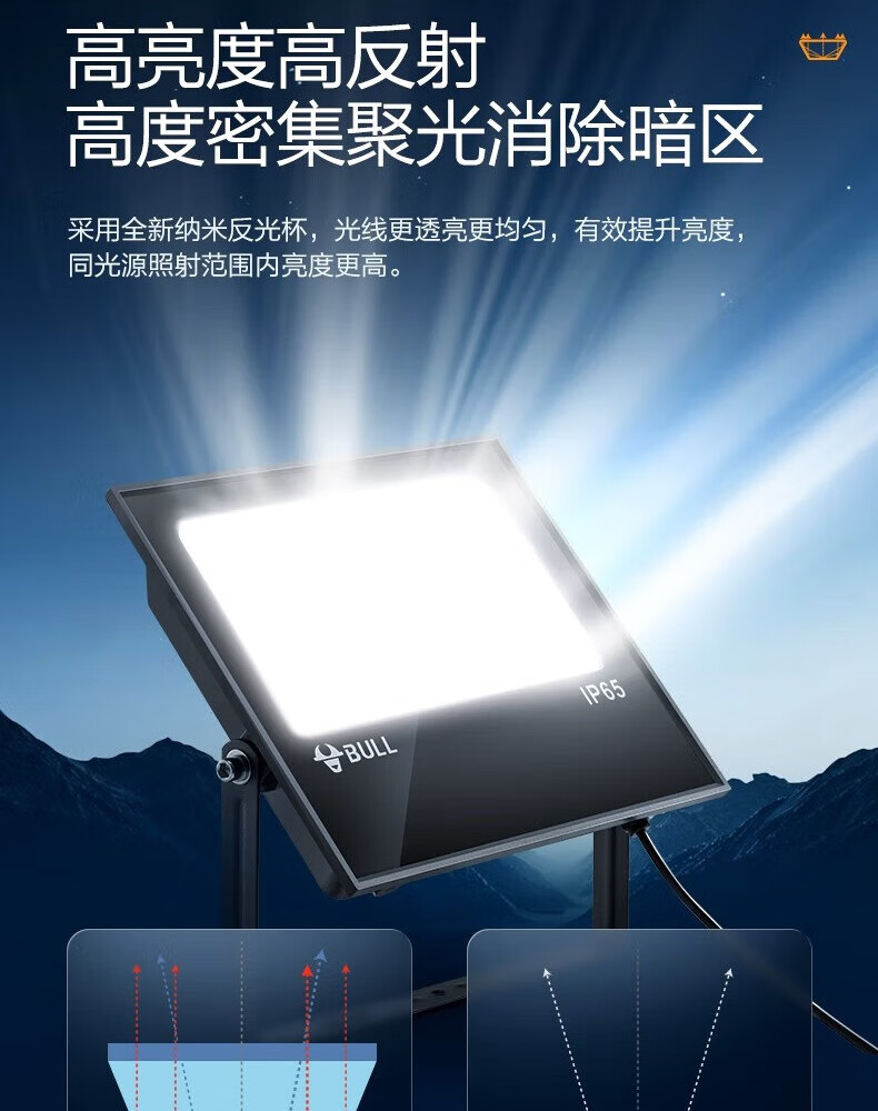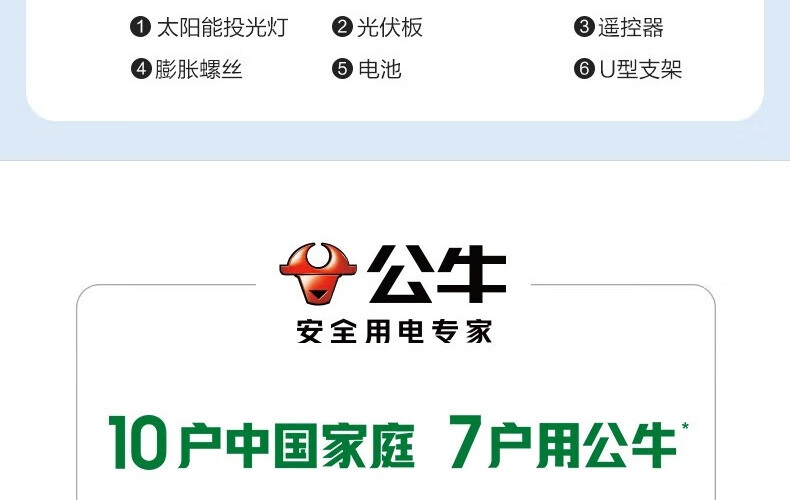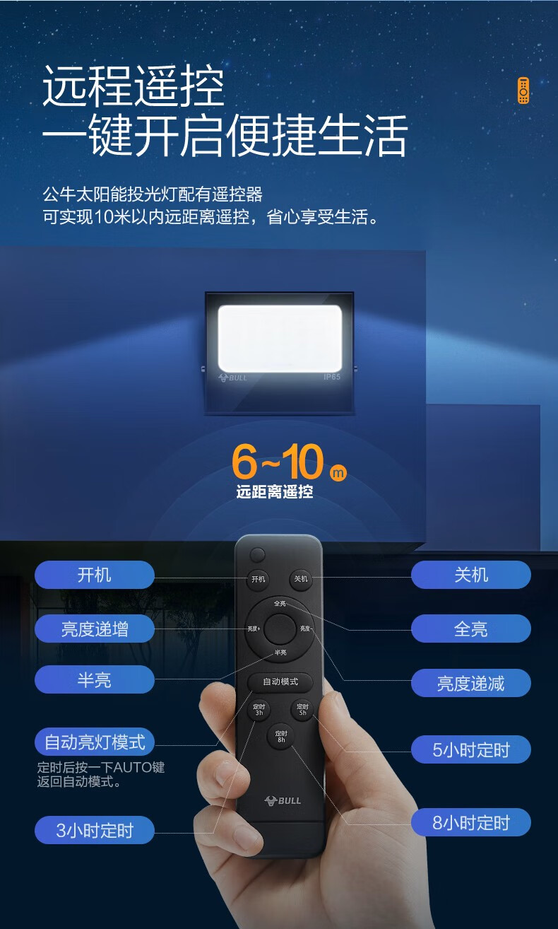 公牛太阳能户外照明灯 庭院灯农村院子家用防雨大功率路灯LED室外射灯 【防水】照明约120m² 高亮800lm