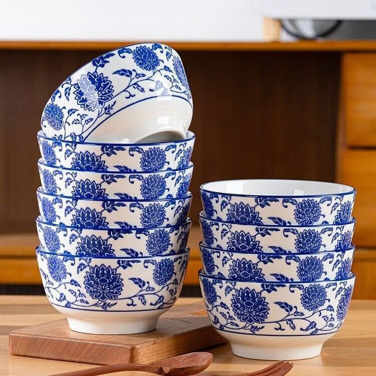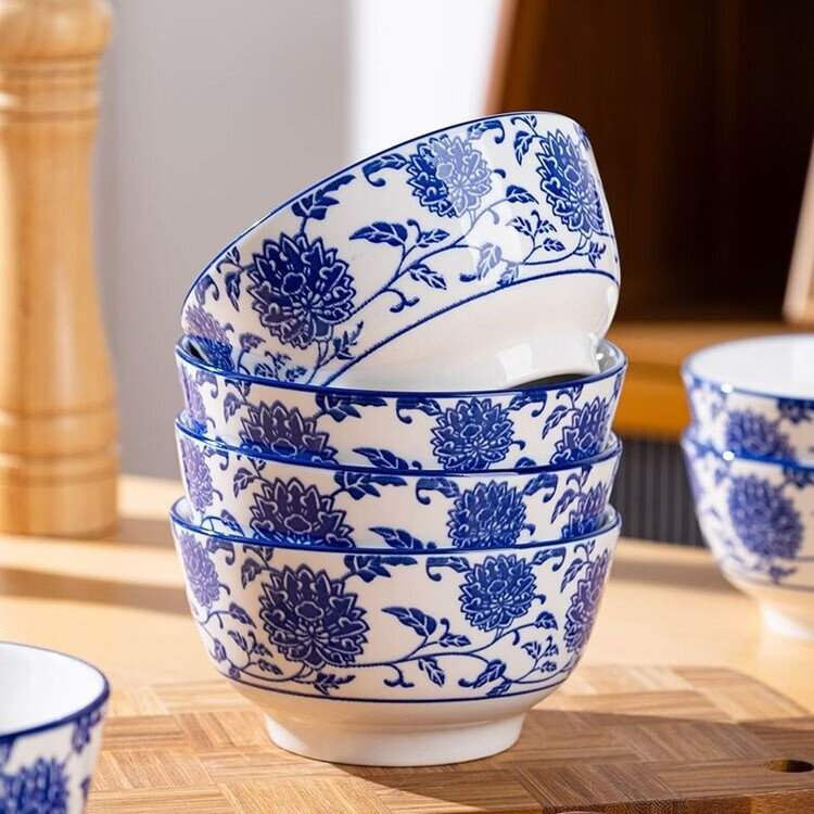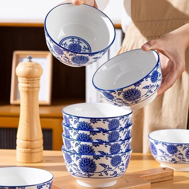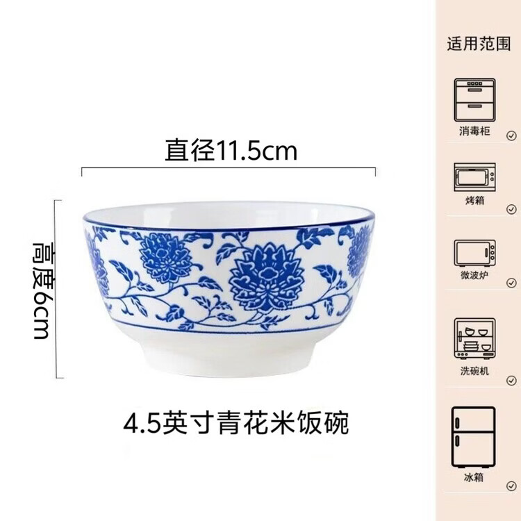 咏夏4.5英寸青花饭碗家用陶瓷餐具青花瓷釉下彩汤碗吃饭酒店饭店 4.5英寸青花米饭碗2只