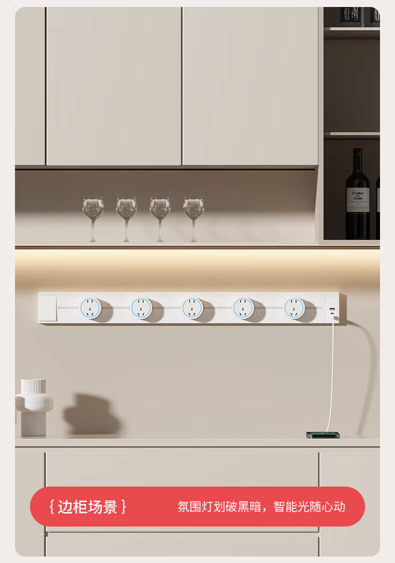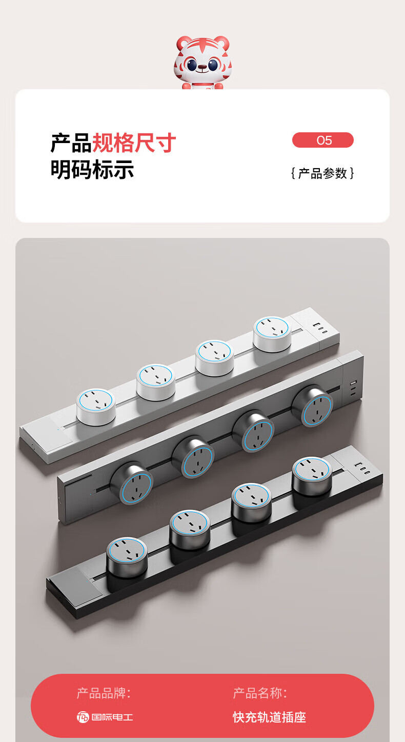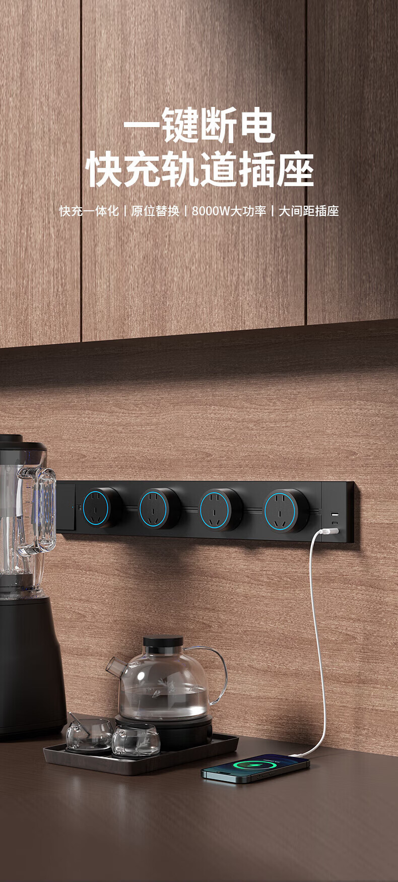 国际电工可移动快充轨道插座大间距明装滑动电力导轨家用餐边柜滑轨排插 灰色【快充U/C】带总控-30厘米+2个大五孔