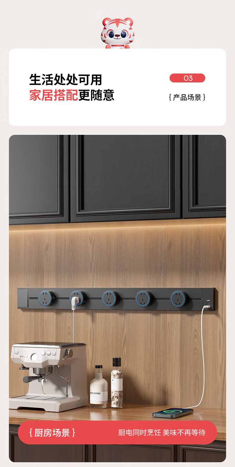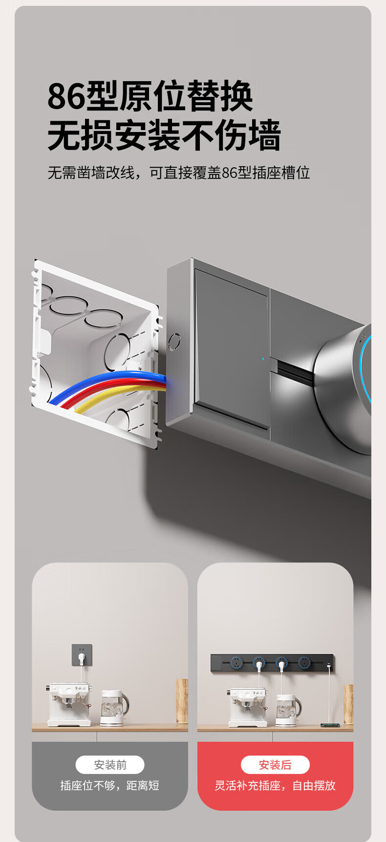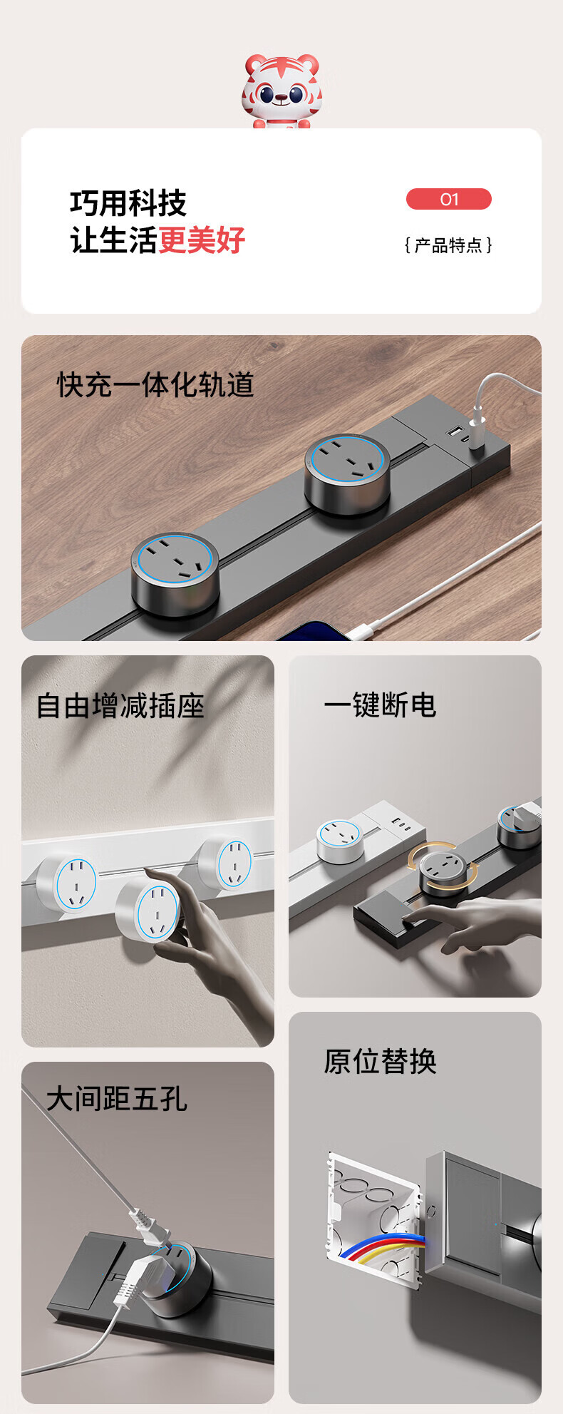 国际电工可移动快充轨道插座大间距明装滑动电力导轨家用餐边柜滑轨排插 灰色【快充U/C】带总控-30厘米+2个大五孔
