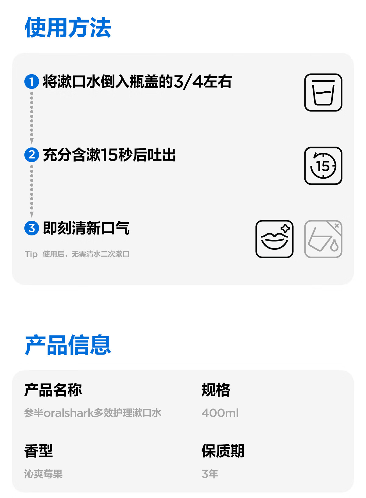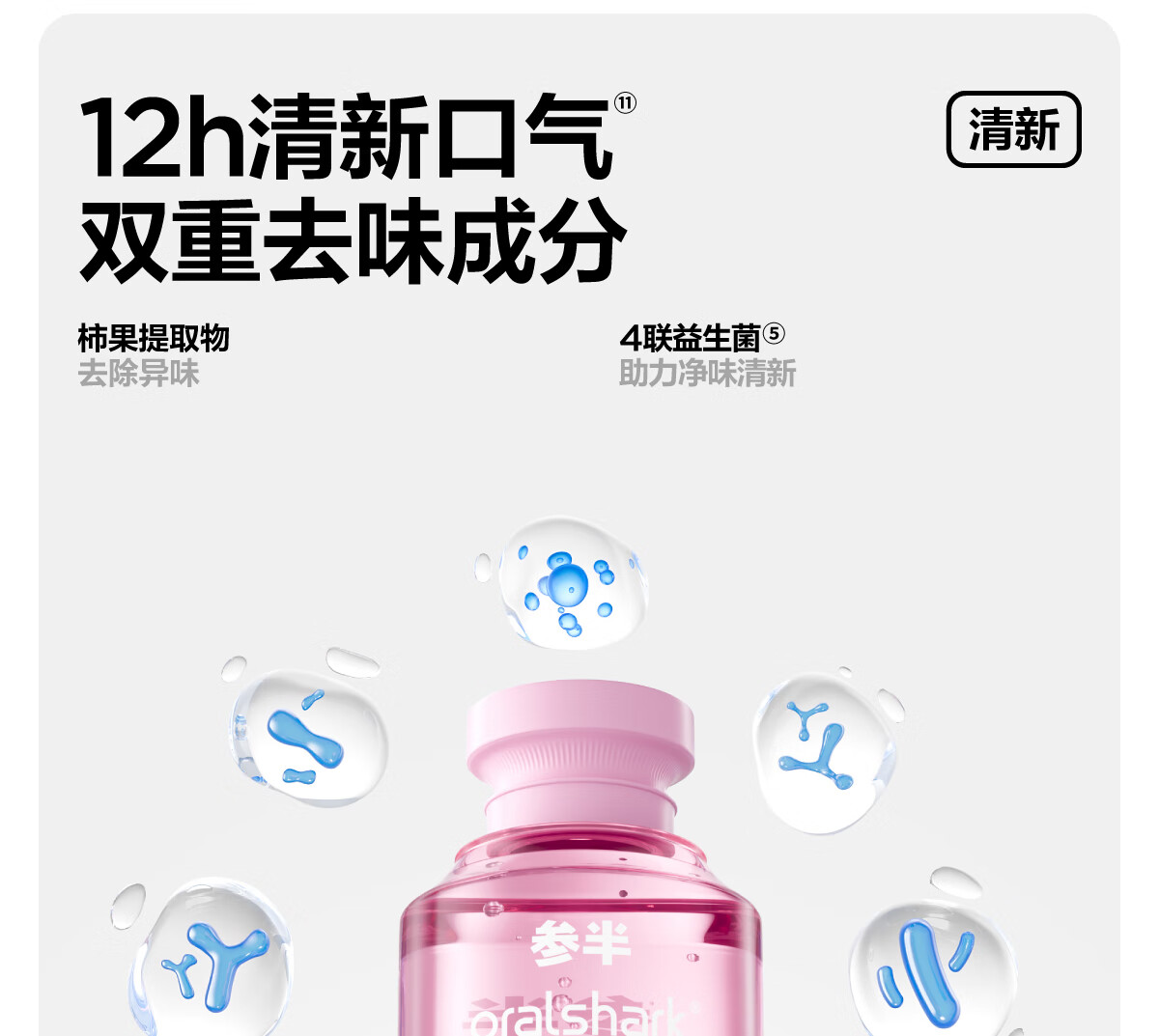 参半oralshark多效护理漱囗水 去牙菌斑 美白 防龋(沁爽莓果)400ml