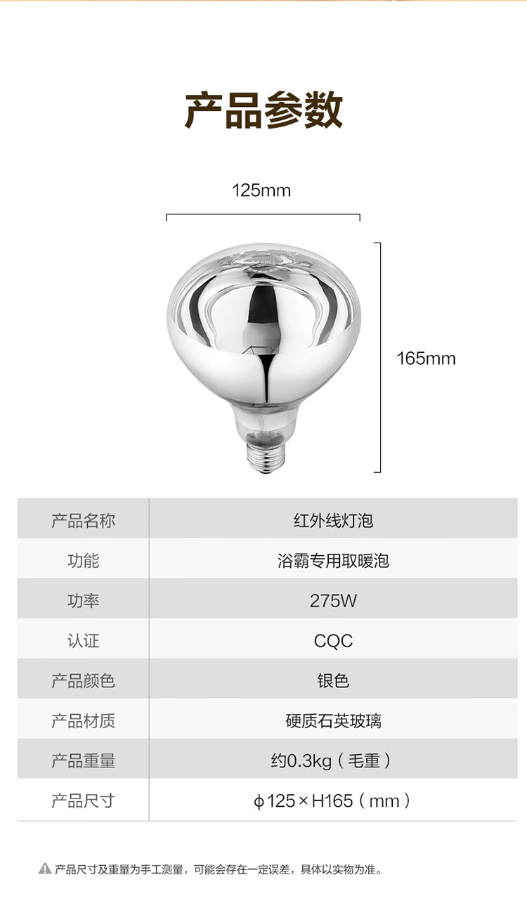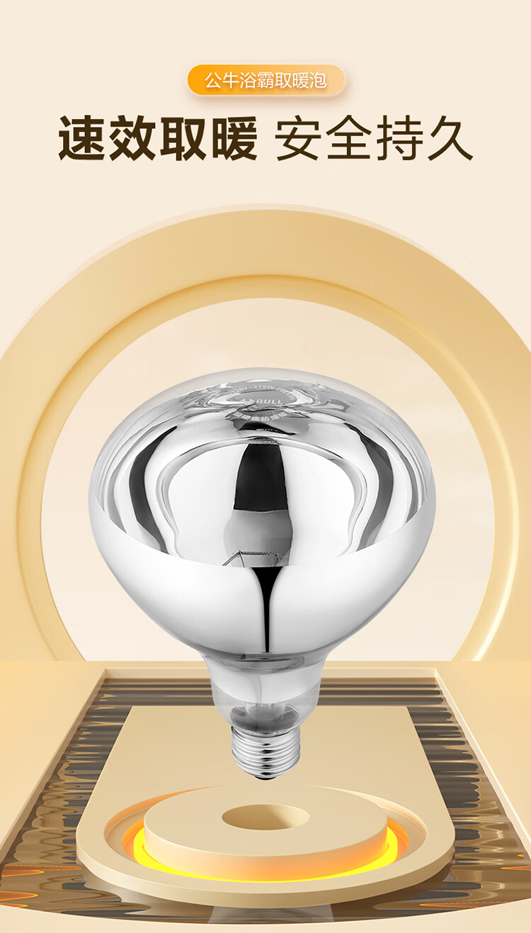 公牛(BULL)浴霸灯泡275W水防集成吊顶灯暖灯泡 卫生间浴室通用老式E27螺口 (2只)速热275W银色灯泡-E27螺口