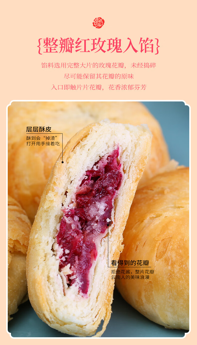 潘祥记鲜花饼经典玫瑰饼云南特产休闲零食糕点心 6枚150g