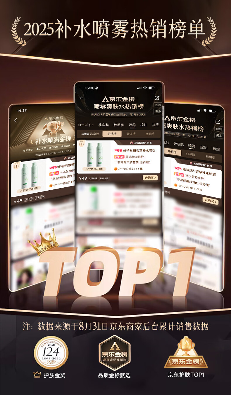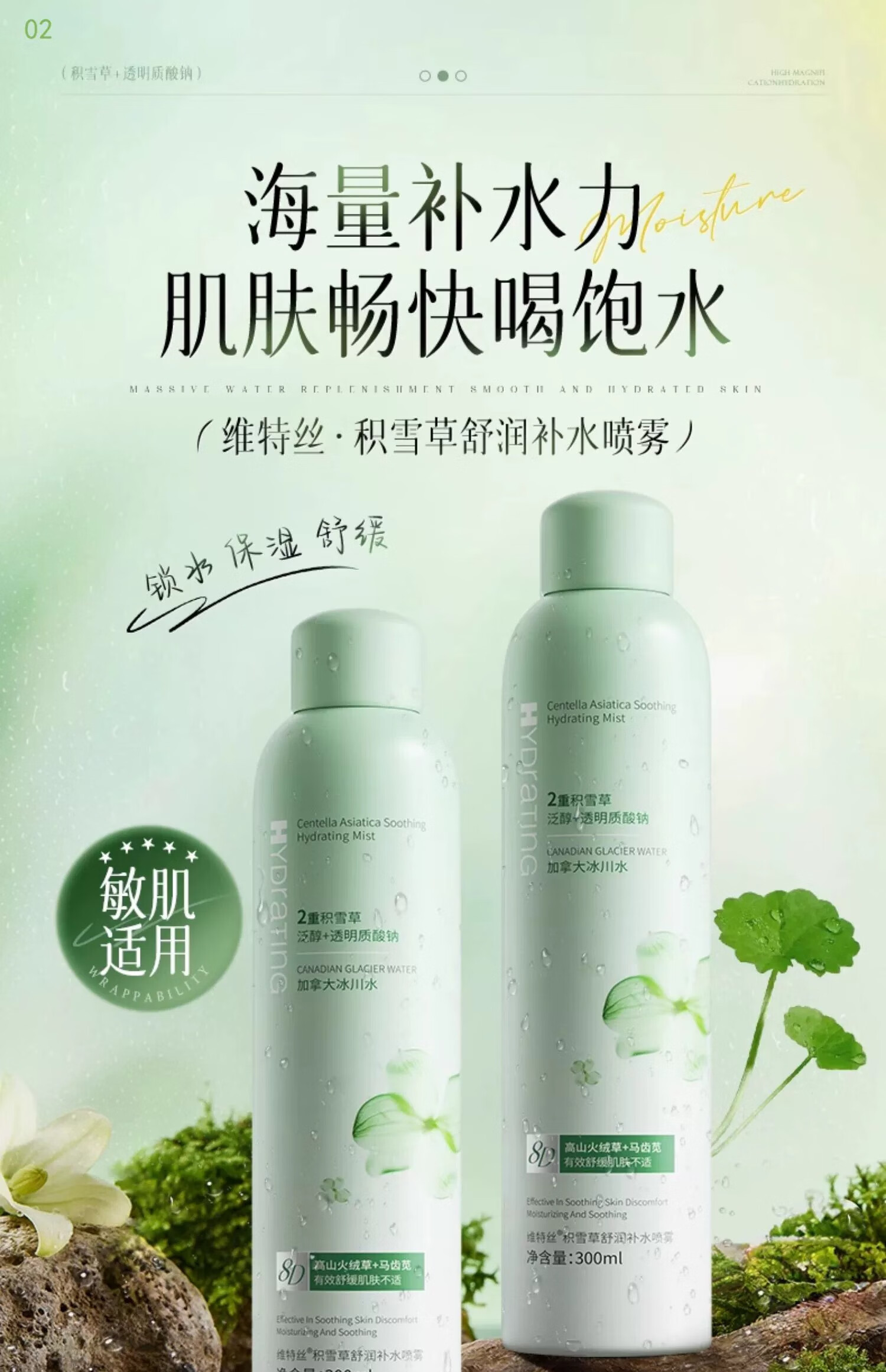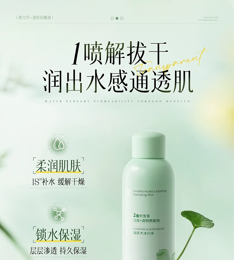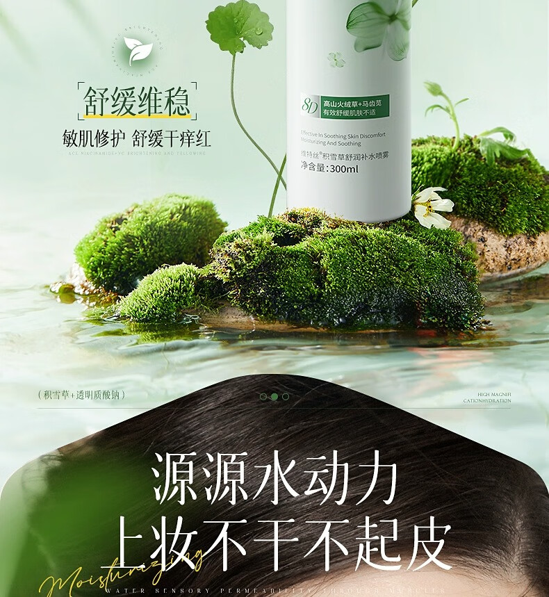 维特丝积雪草补水喷雾爽肤水小分子保湿水护肤品精华男女美白湿敷化妆品