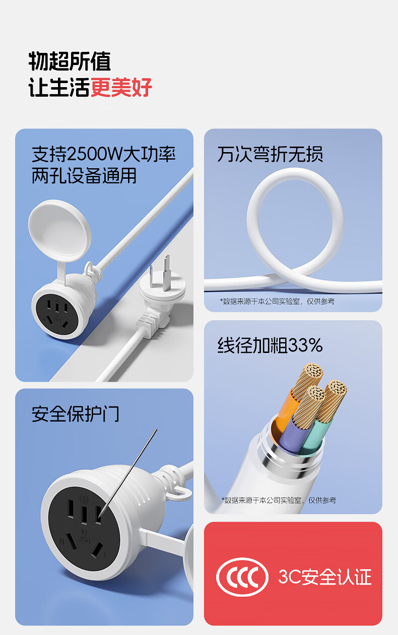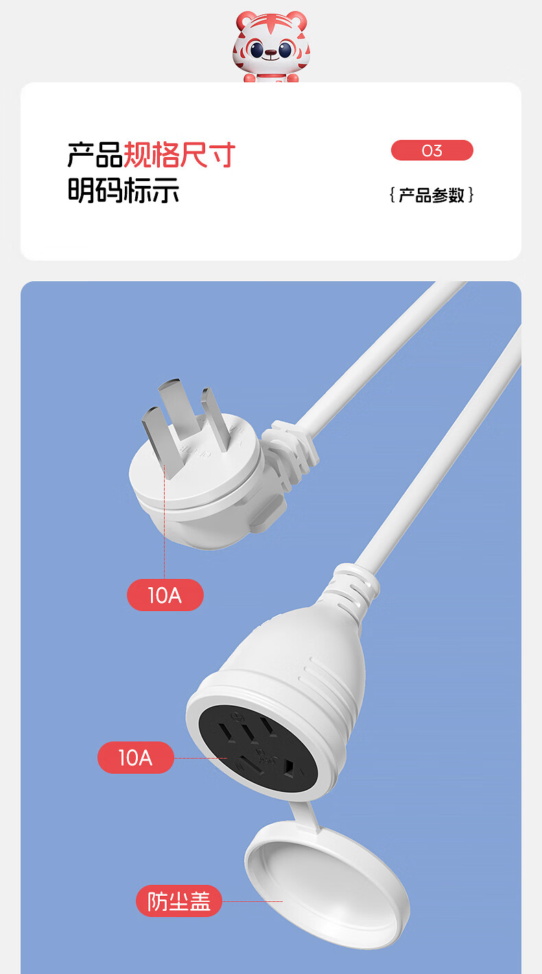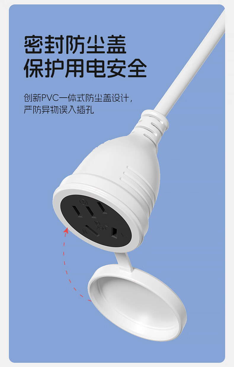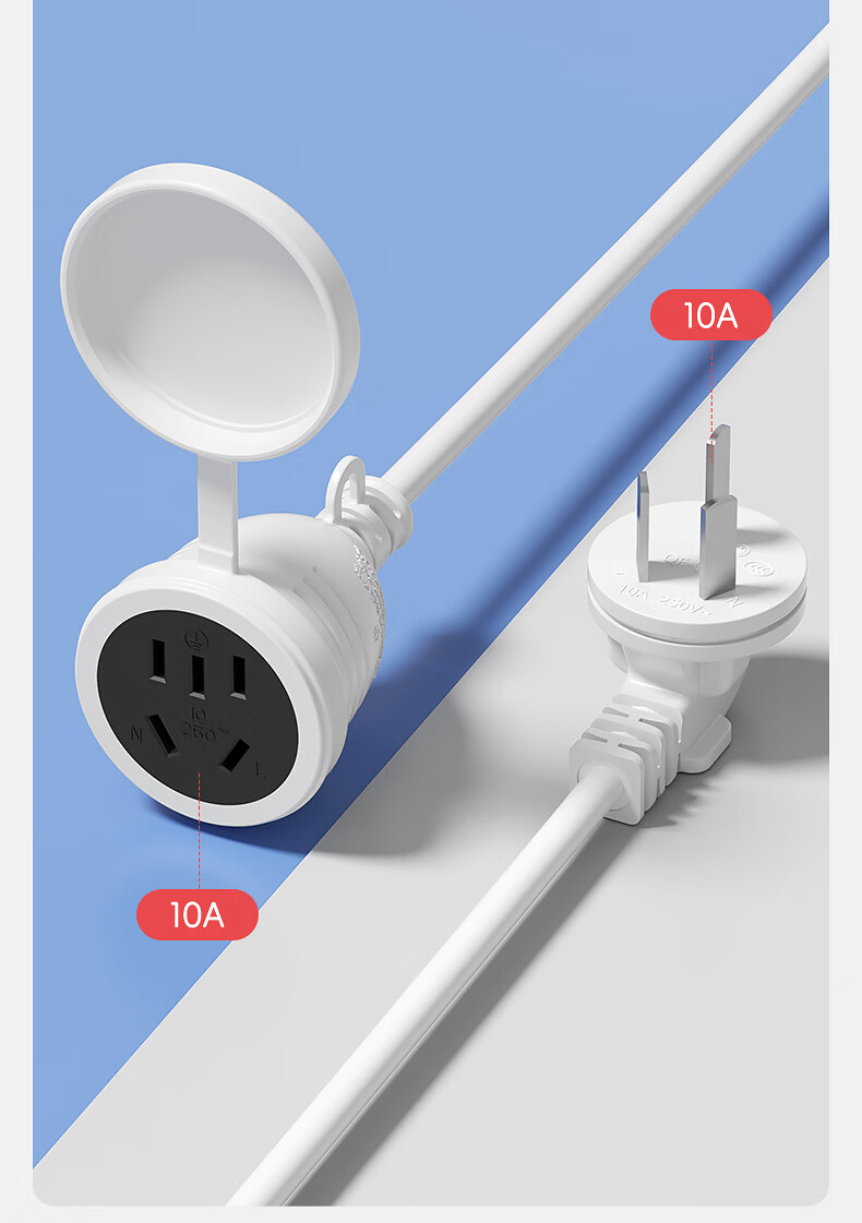 公正牛转带线家用插线板2米3米5米10米排插大功率多插孔电源插10A 蓝白28孔+10米线 2500w
