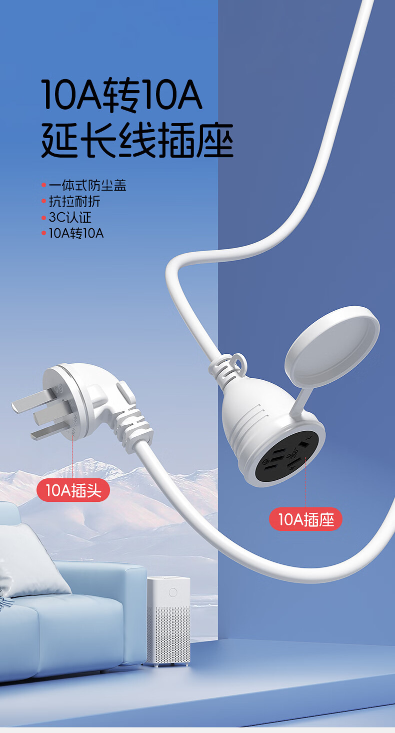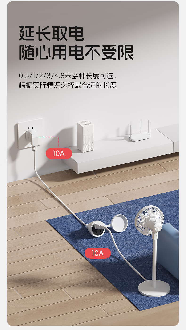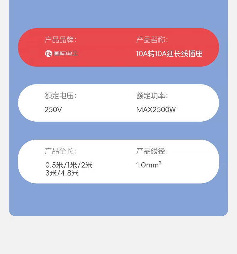 国际电工(FDD)10A转16A电源延长线插座家用电动车加长充电线冰箱热水器10A插头 10A转10A 全长0.5米