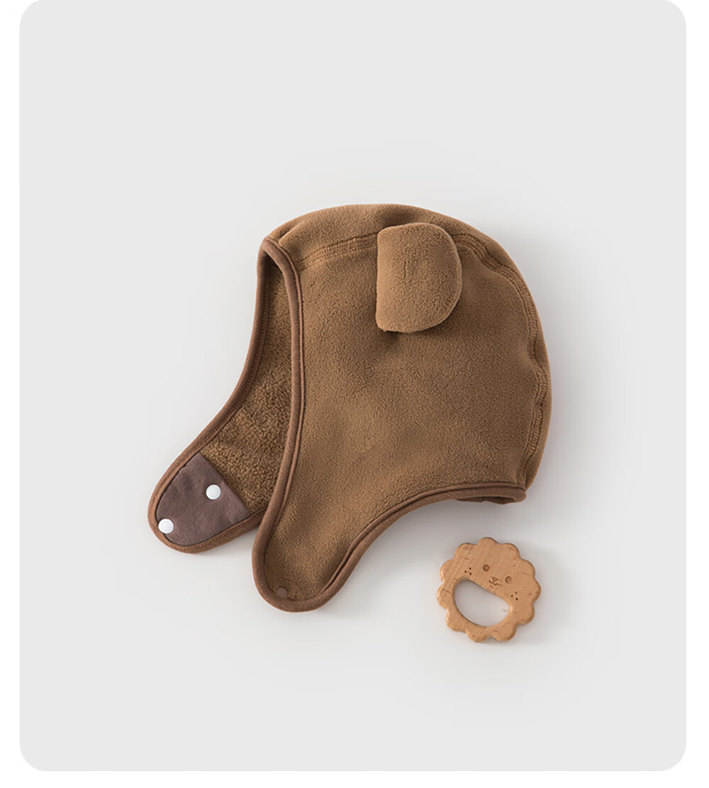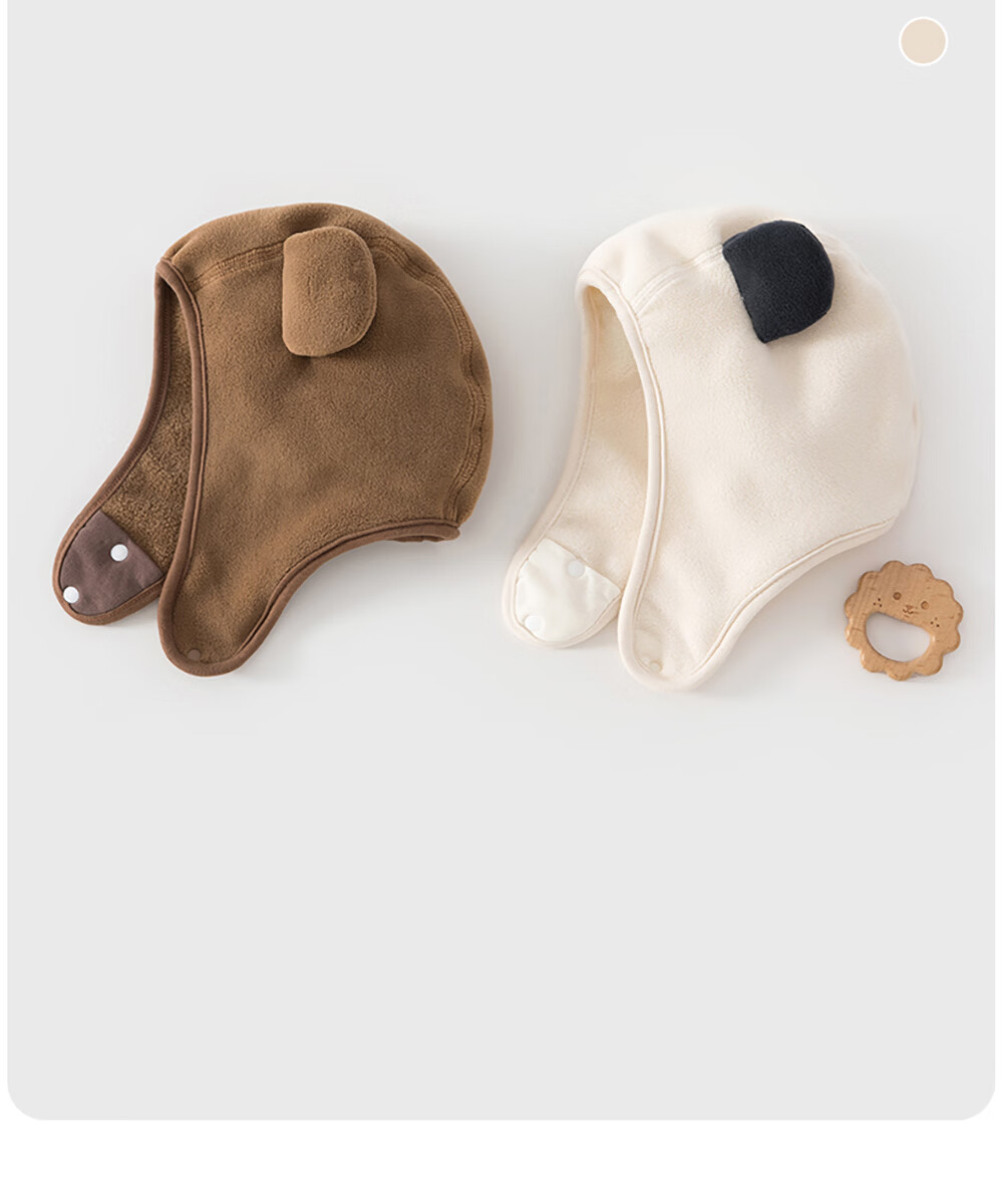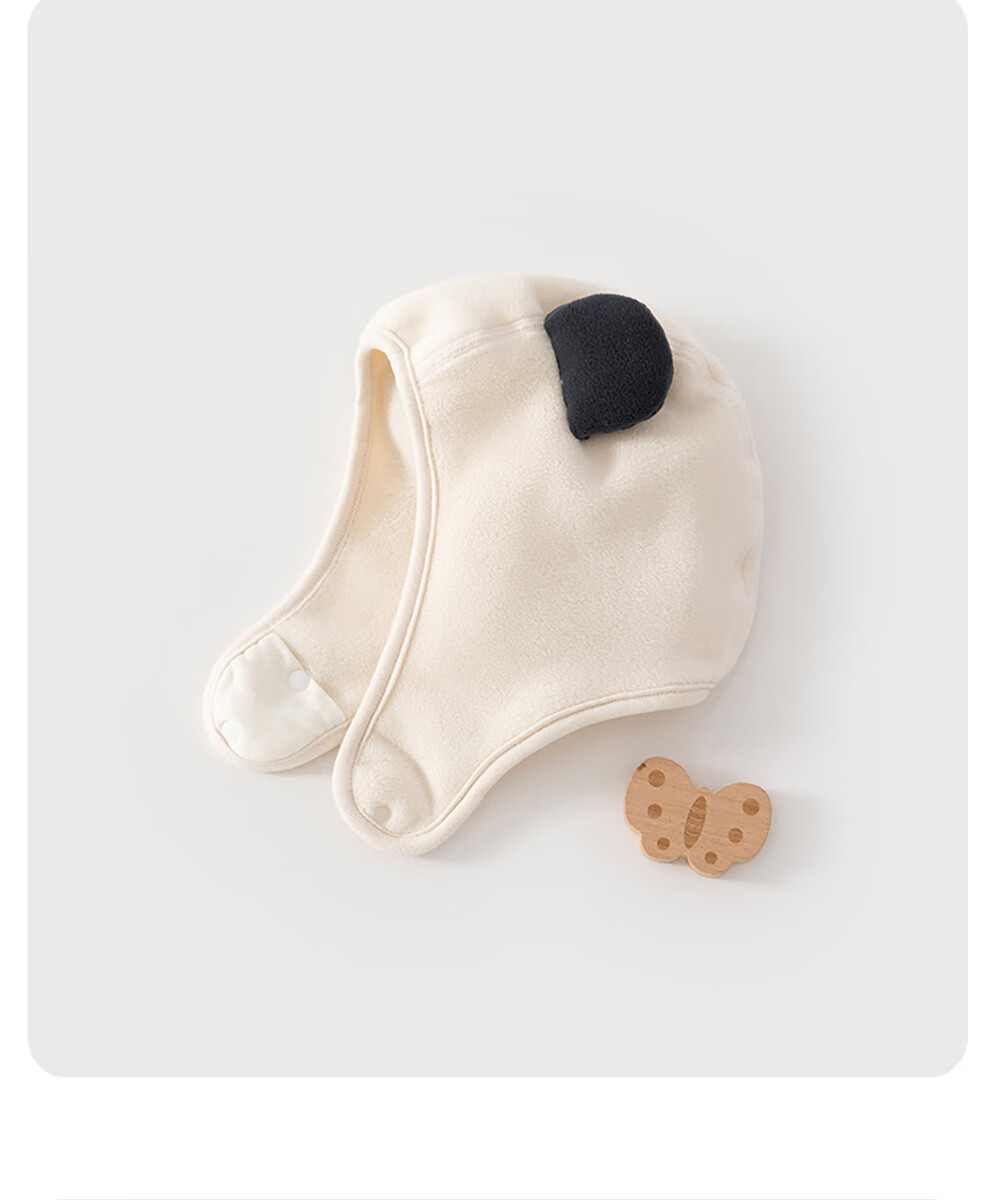 贝肽斯婴幼儿帽子冬季男女宝宝可爱儿童保暖防风护耳帽 米白 4-12个月(S码)