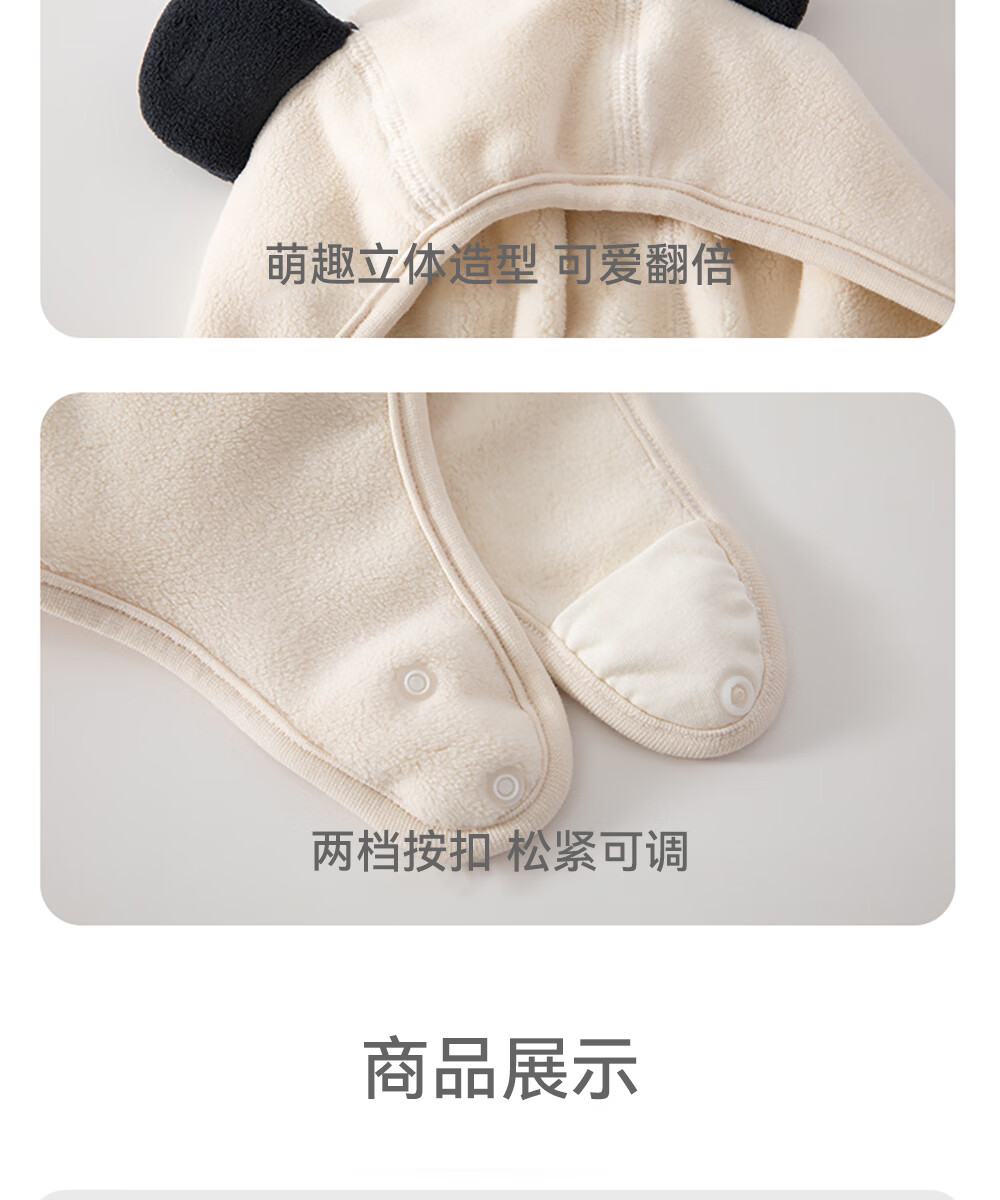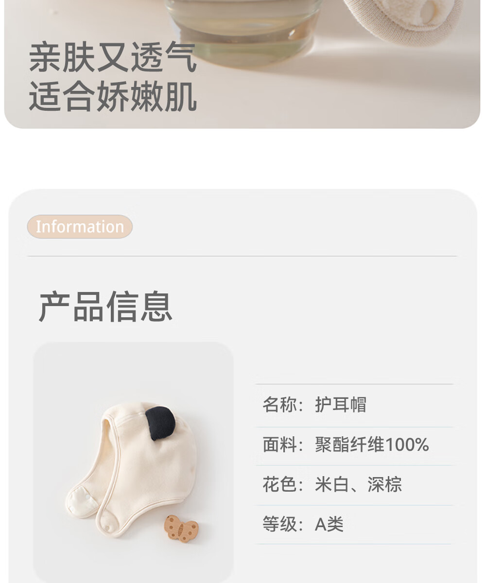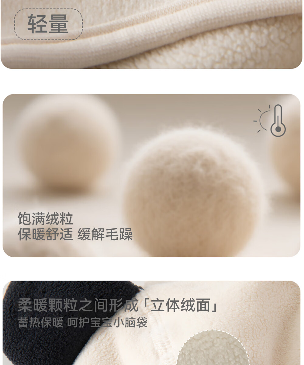 贝肽斯婴幼儿帽子冬季男女宝宝可爱儿童保暖防风护耳帽 米白 4-12个月(S码)