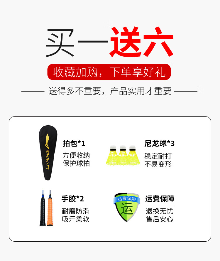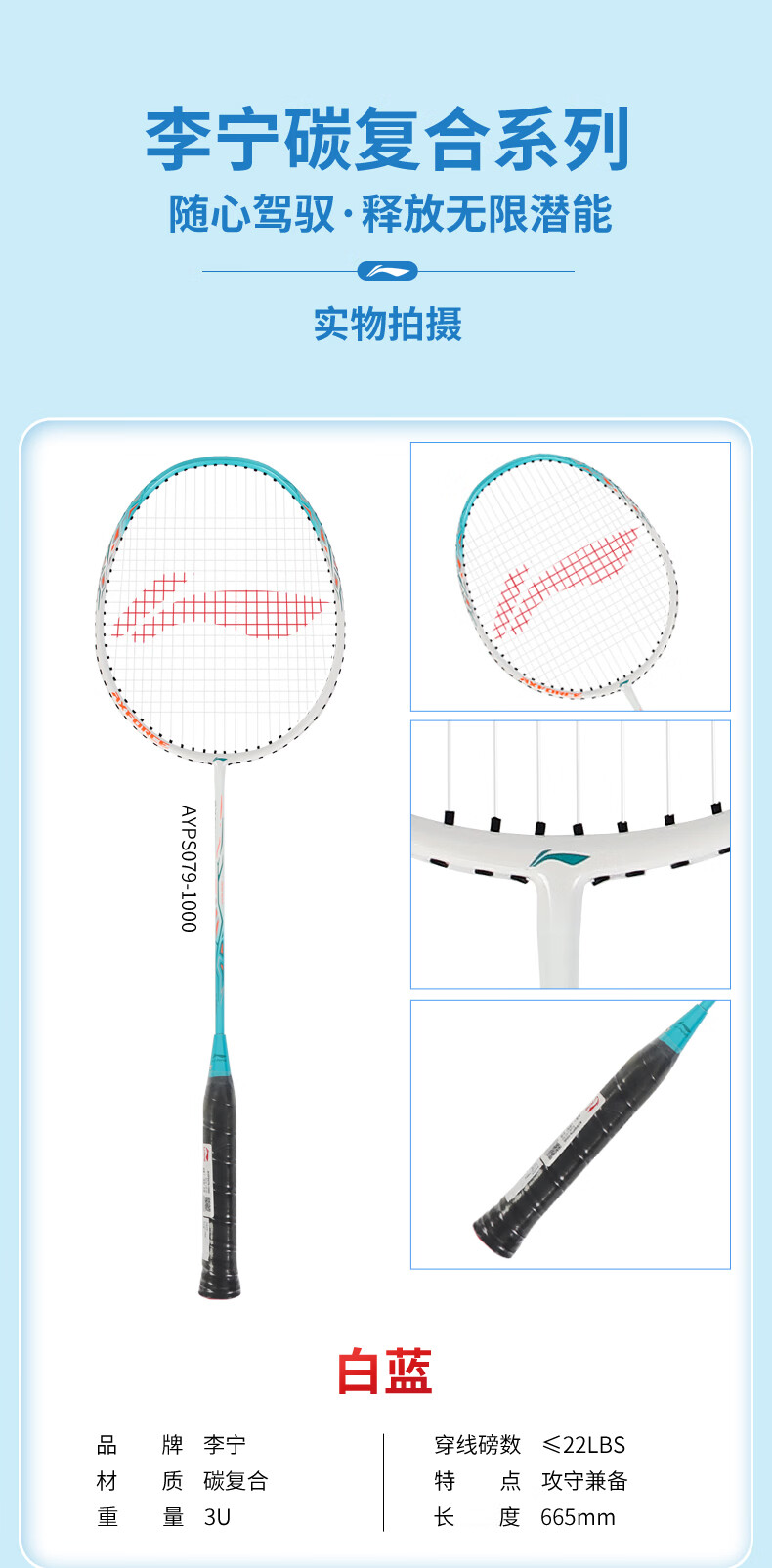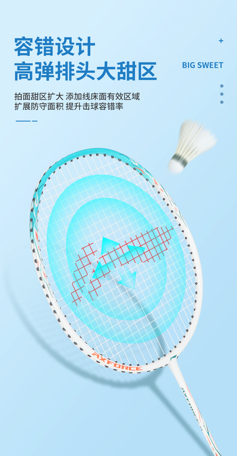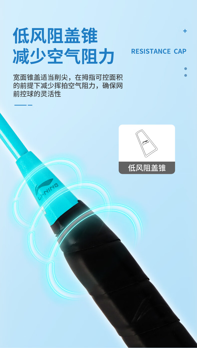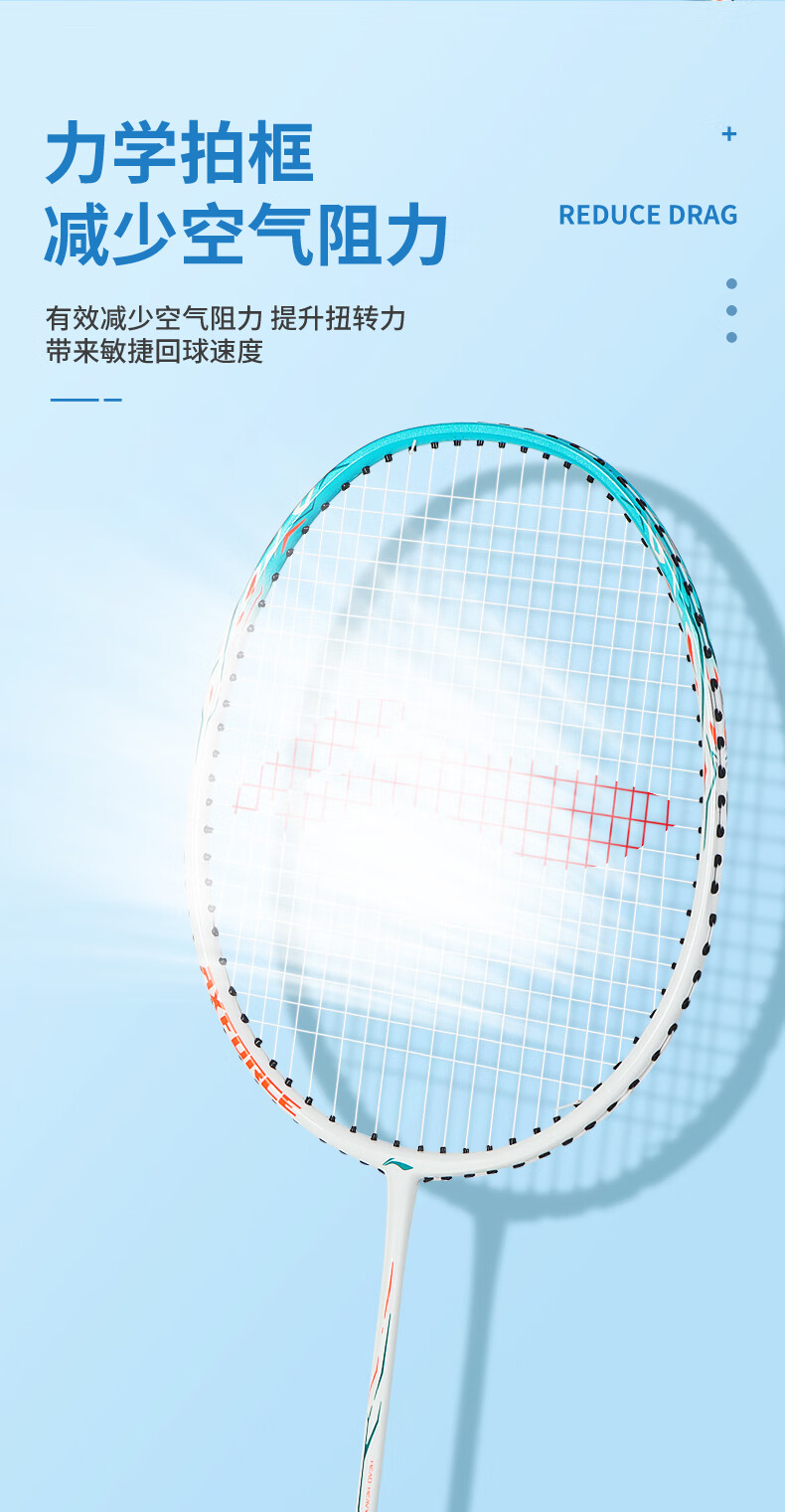 李宁羽毛球拍耐用型单双拍超轻碳素纤维学生业余初学套装雷霆9 1只装 碧空蓝AYPT137