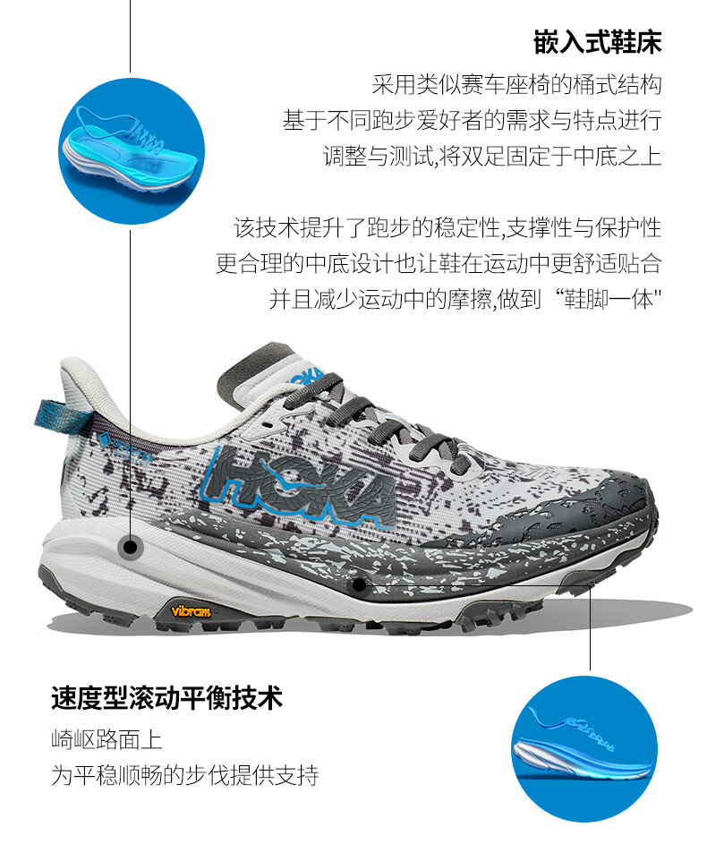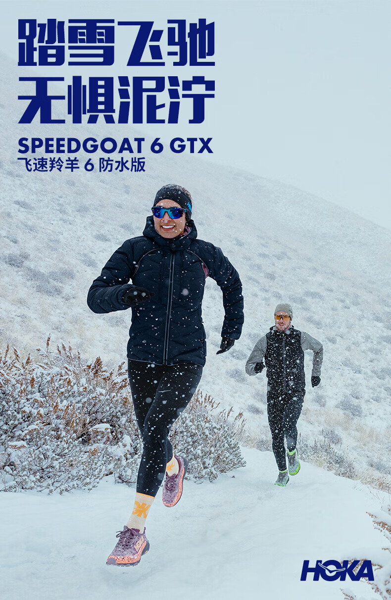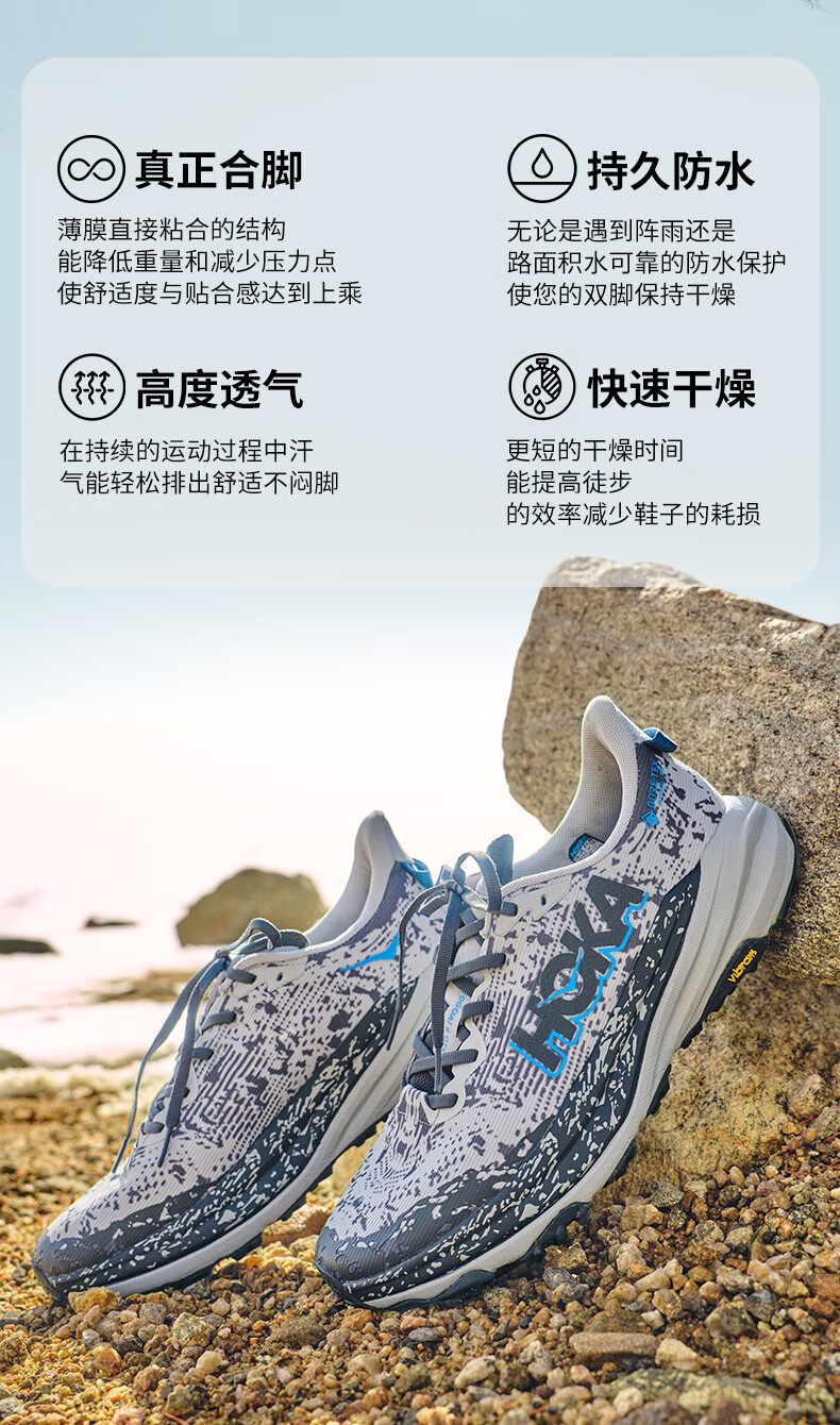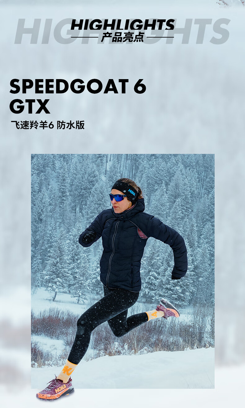 HOKA男女款冬季飞速羚羊6防水越野跑步鞋SPEEDGOAT 6 GTX 户外 星尘灰/太空蓝-男 40