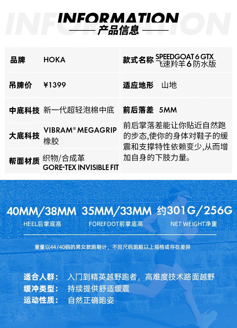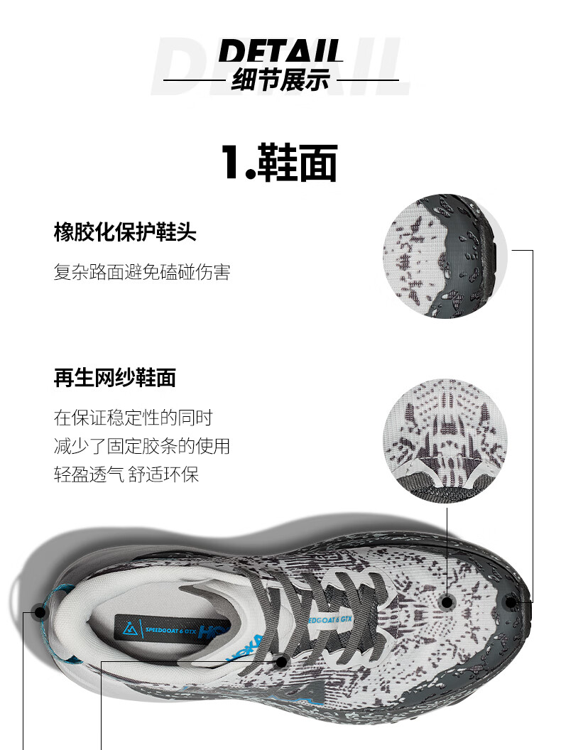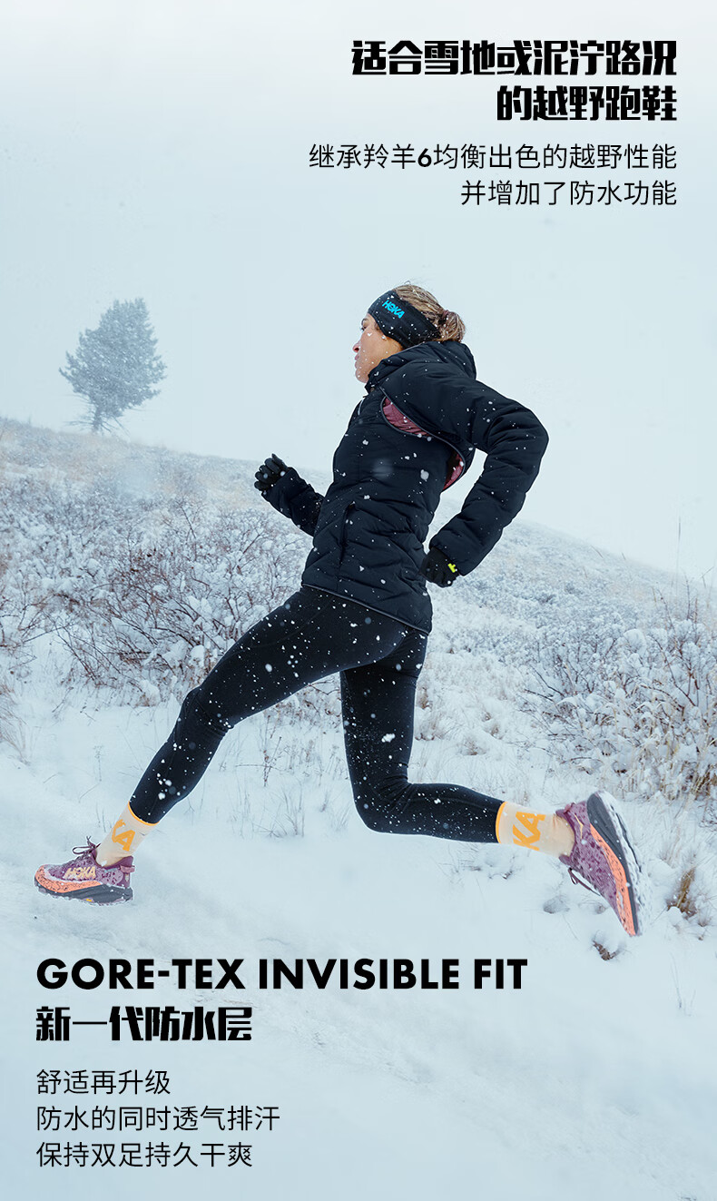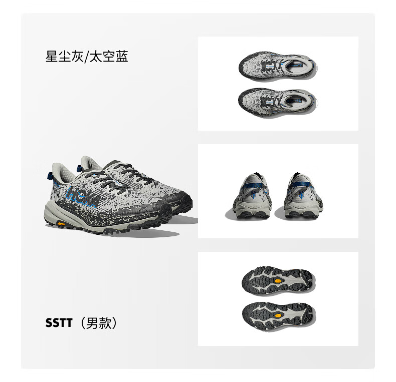 HOKA男女款冬季飞速羚羊6防水越野跑步鞋SPEEDGOAT 6 GTX 户外 星尘灰/太空蓝-男 40
