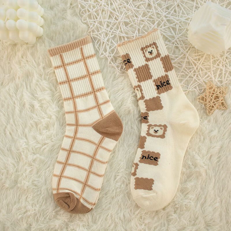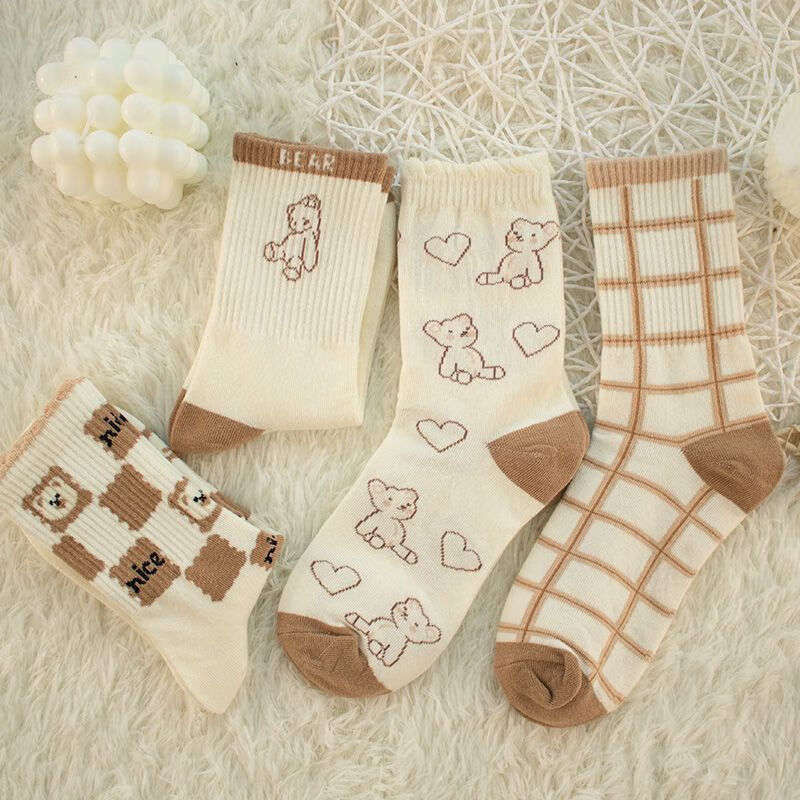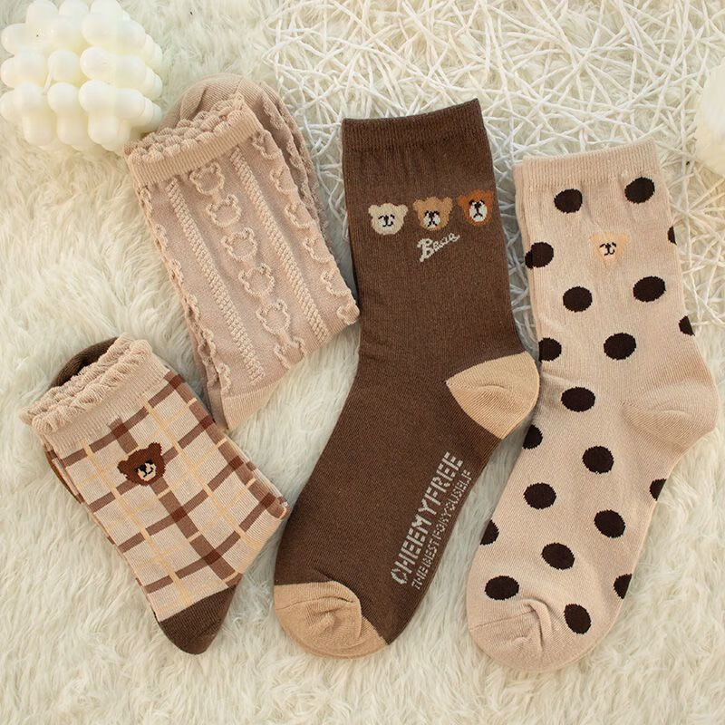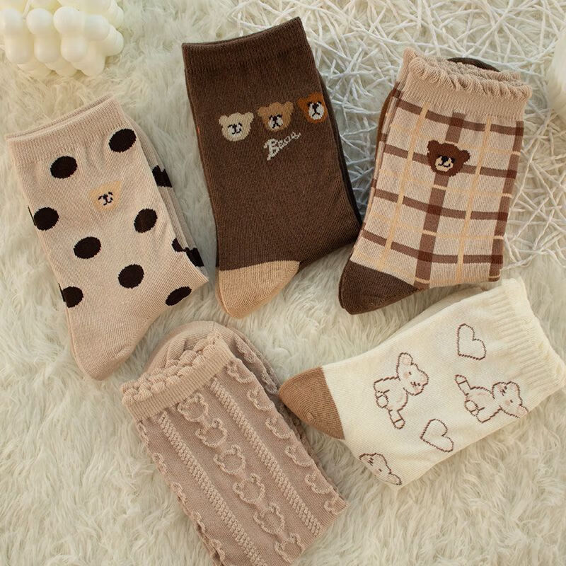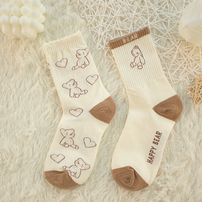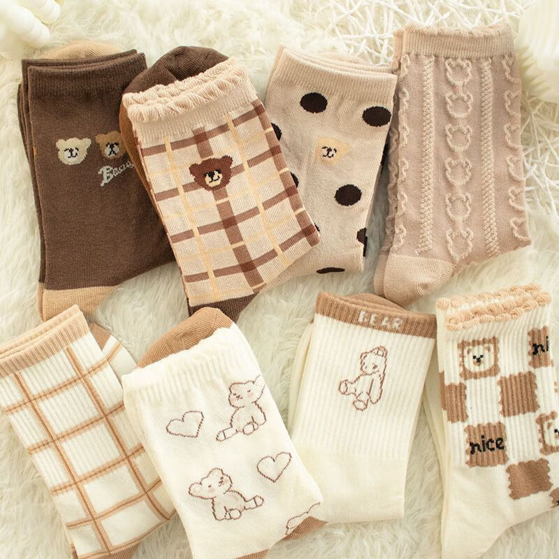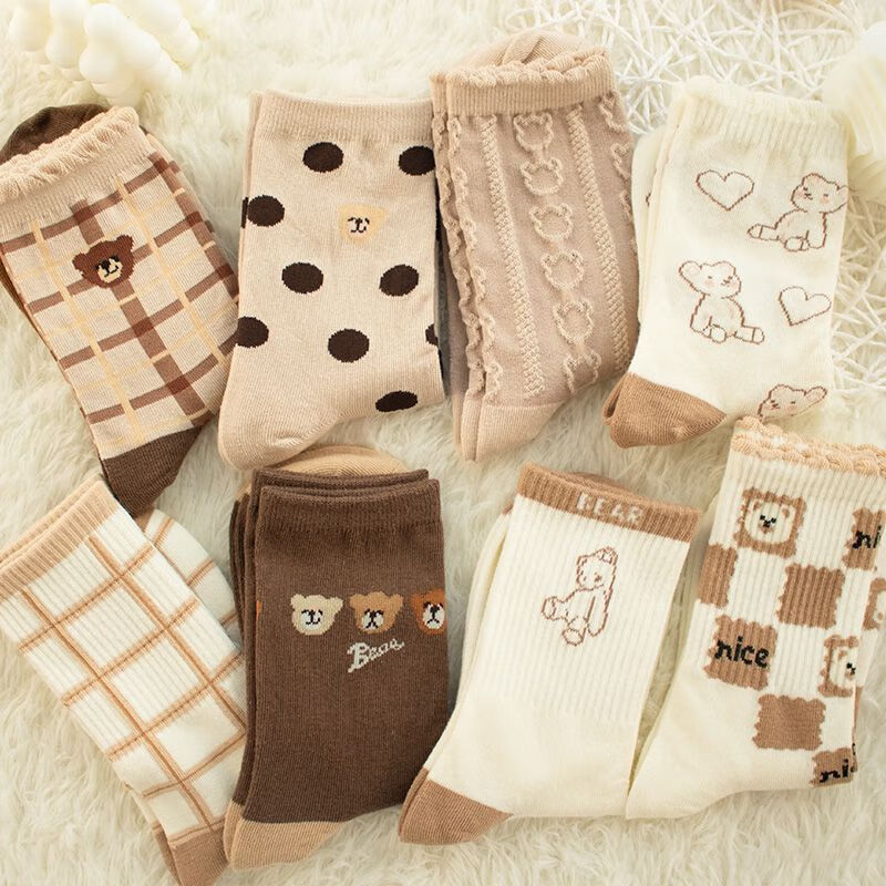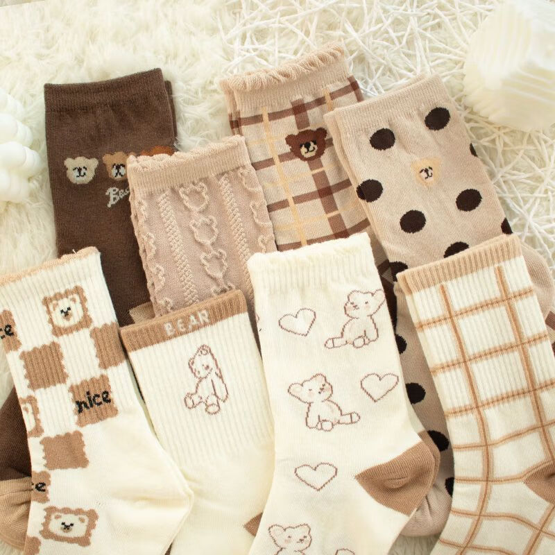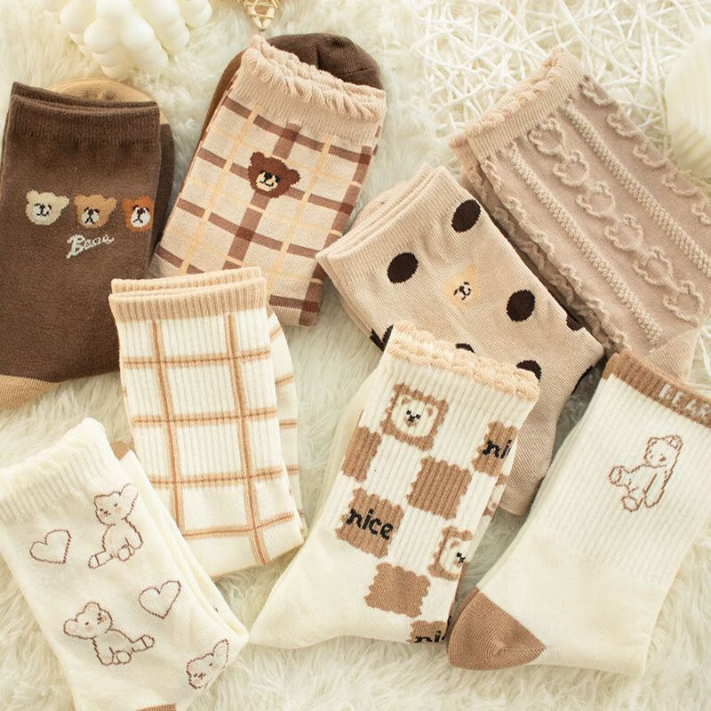 【咖色小熊中筒女袜】秋季长筒袜可爱卡通百搭防滑不掉跟学生袜 【混色随机】 10双