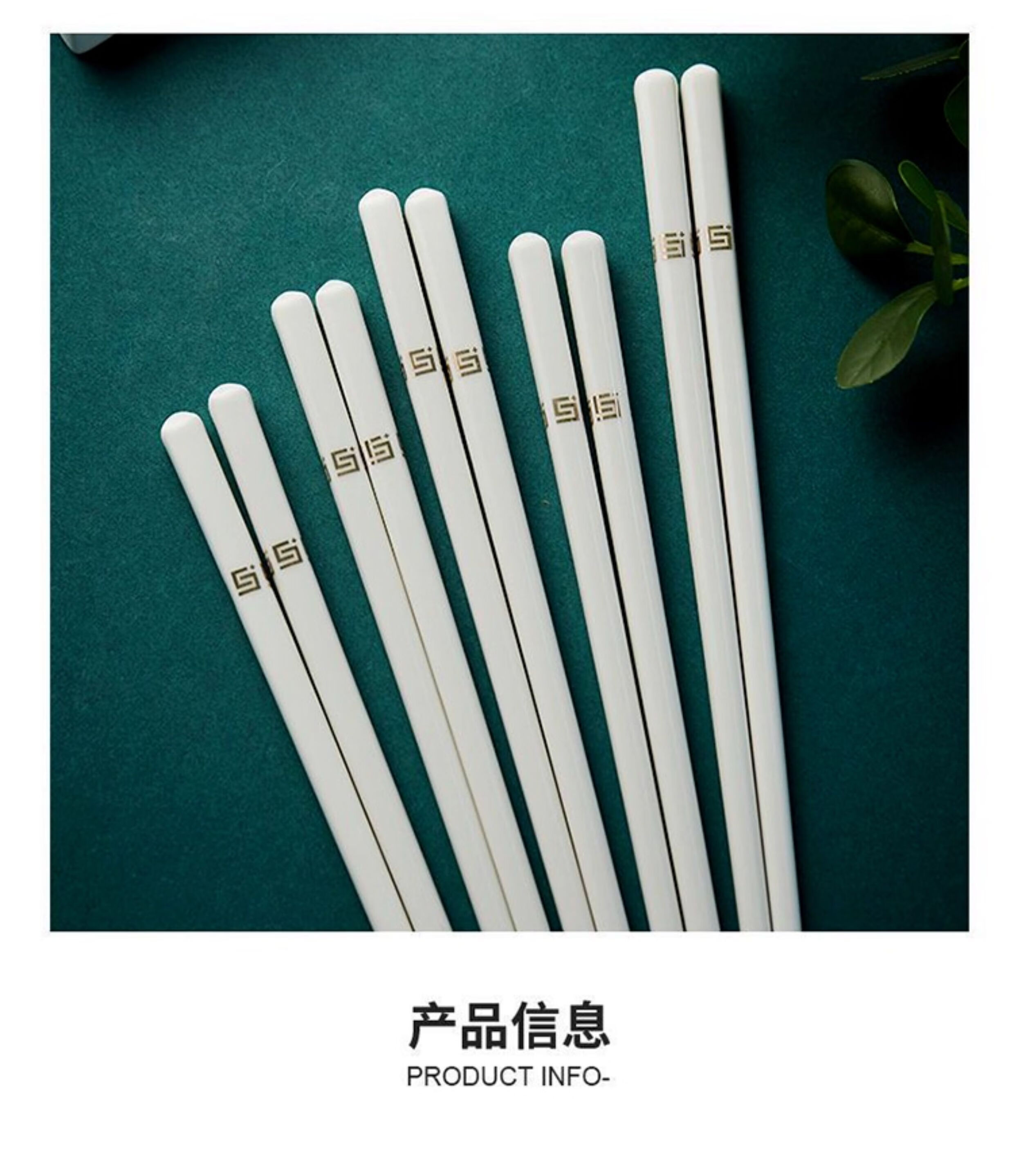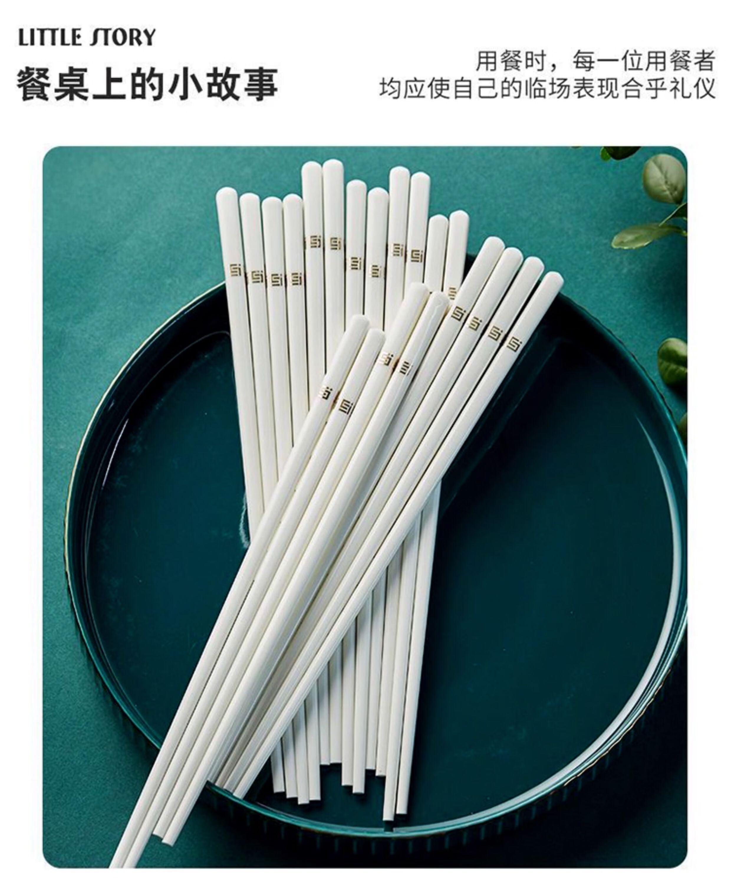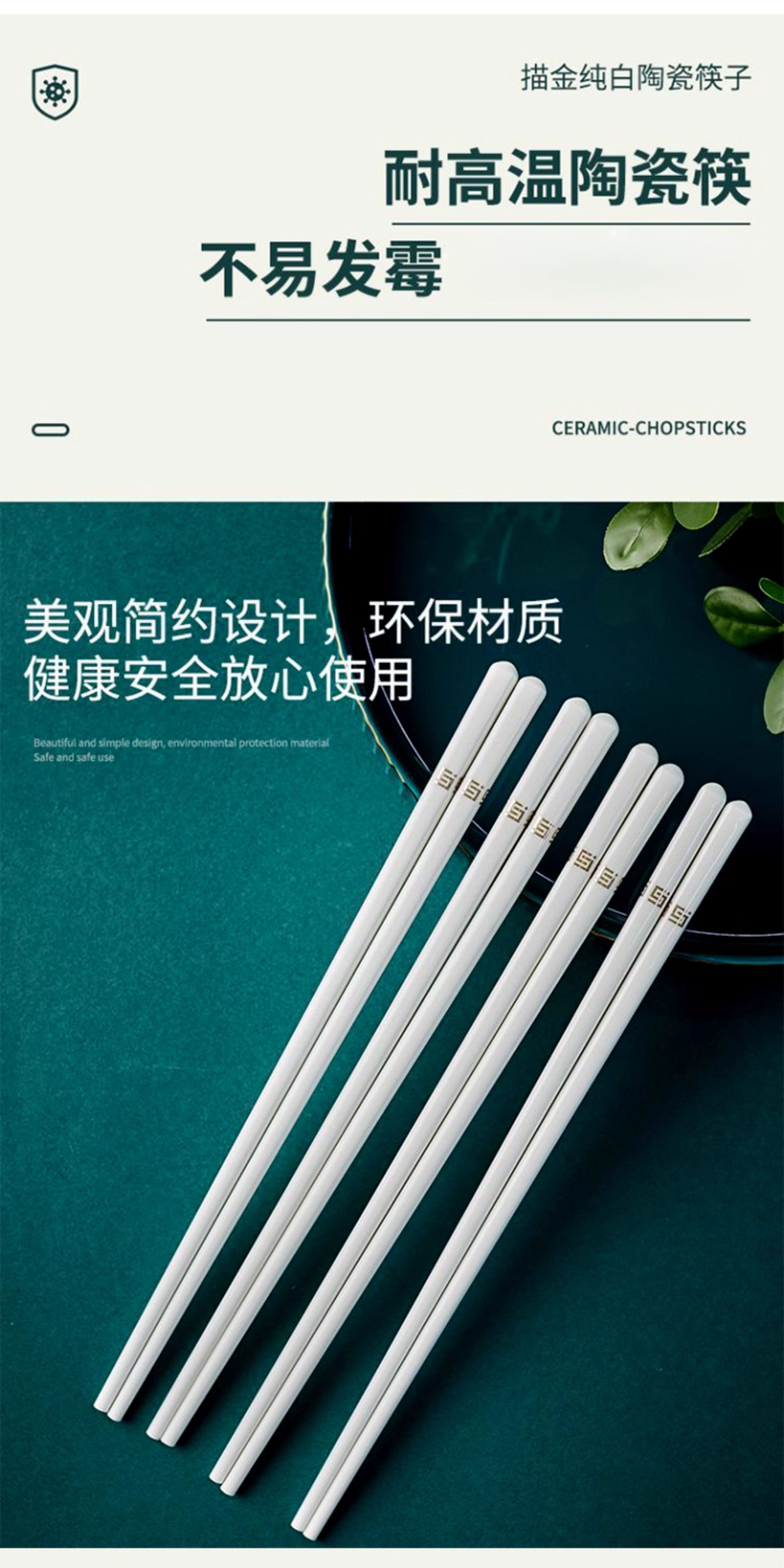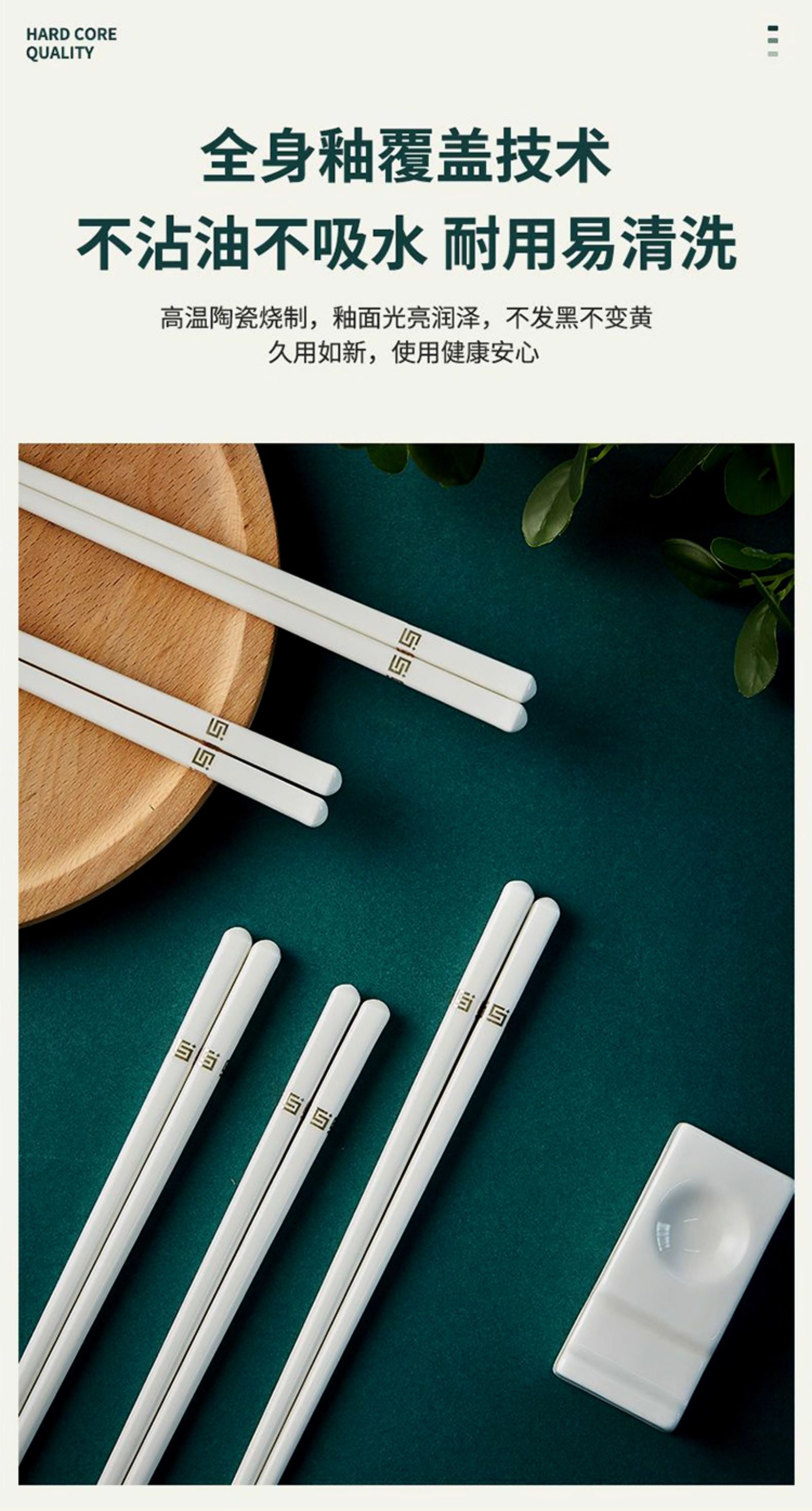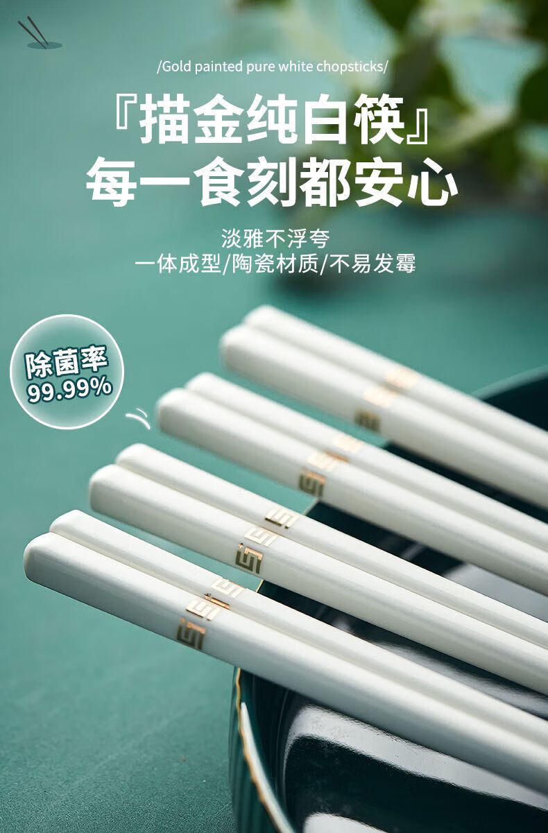 妙得简约轻奢陶瓷筷子10双景德镇瓷家用耐高温食品级防滑餐具送礼 简约金-筷子10双装(送饭勺)