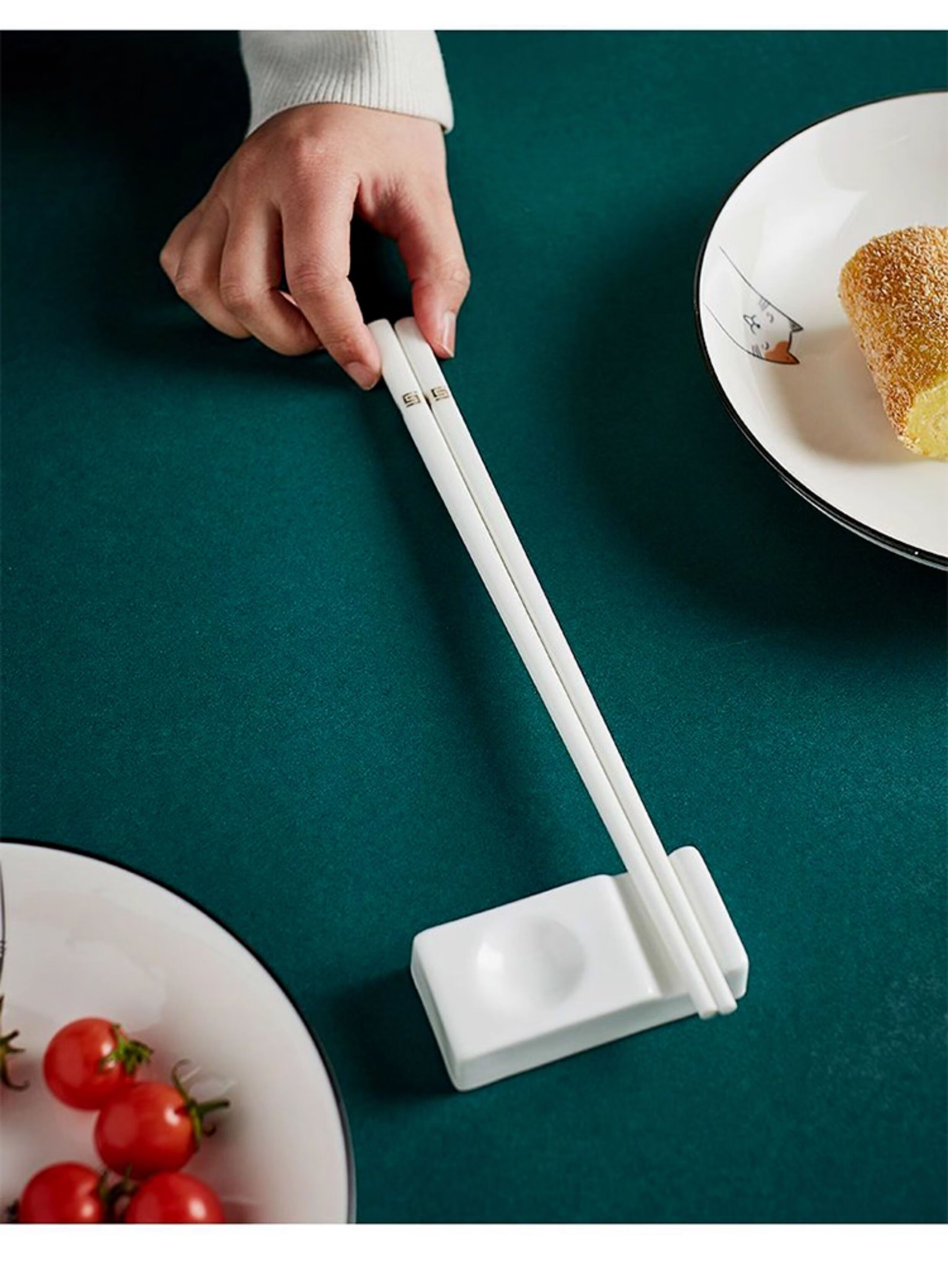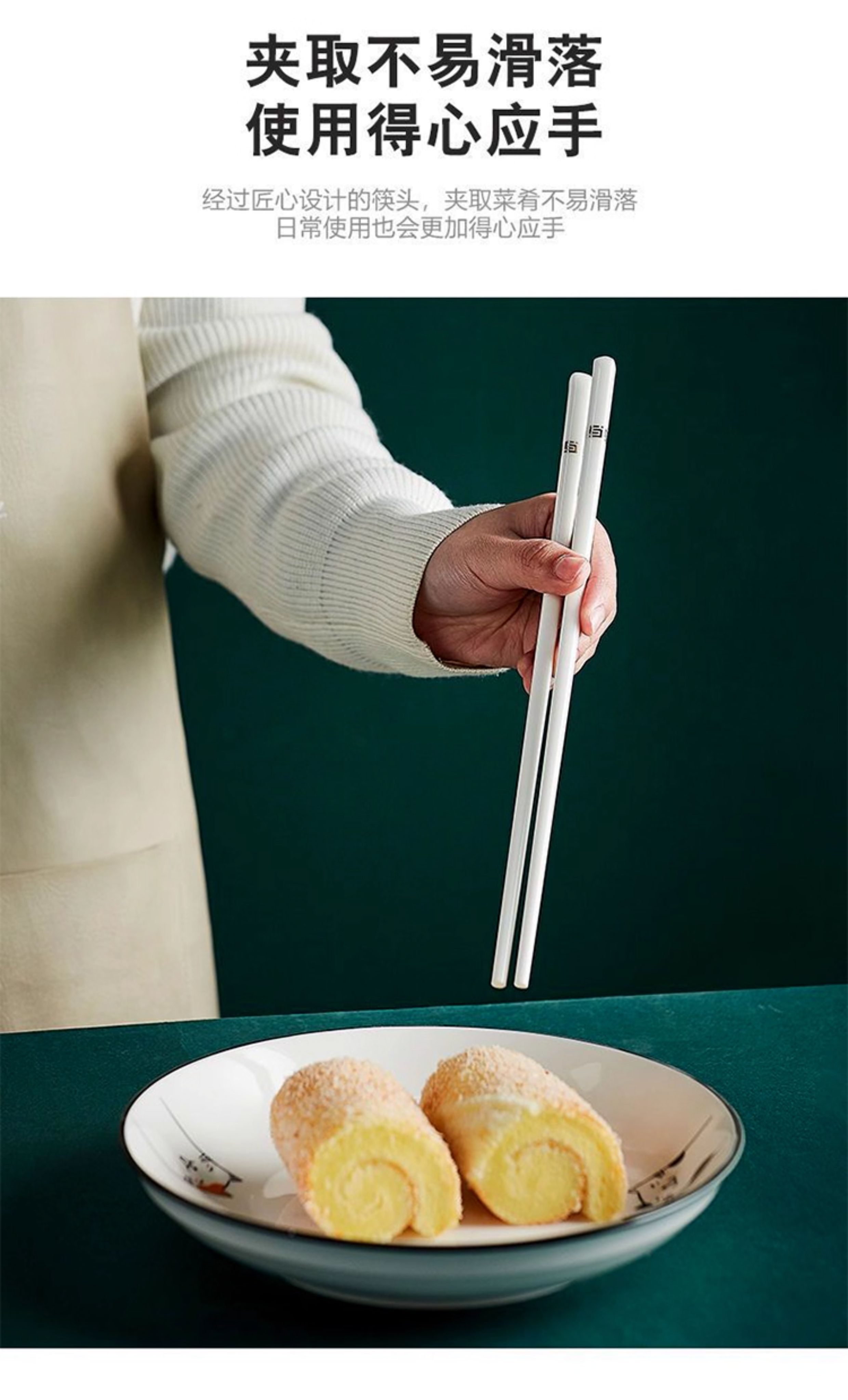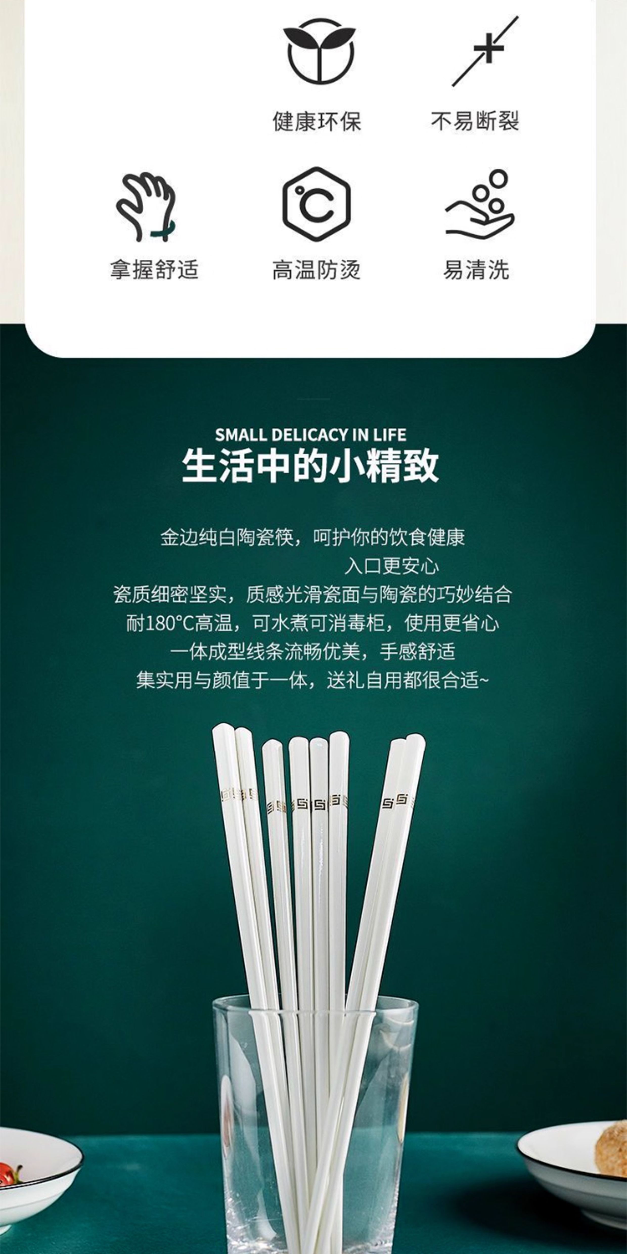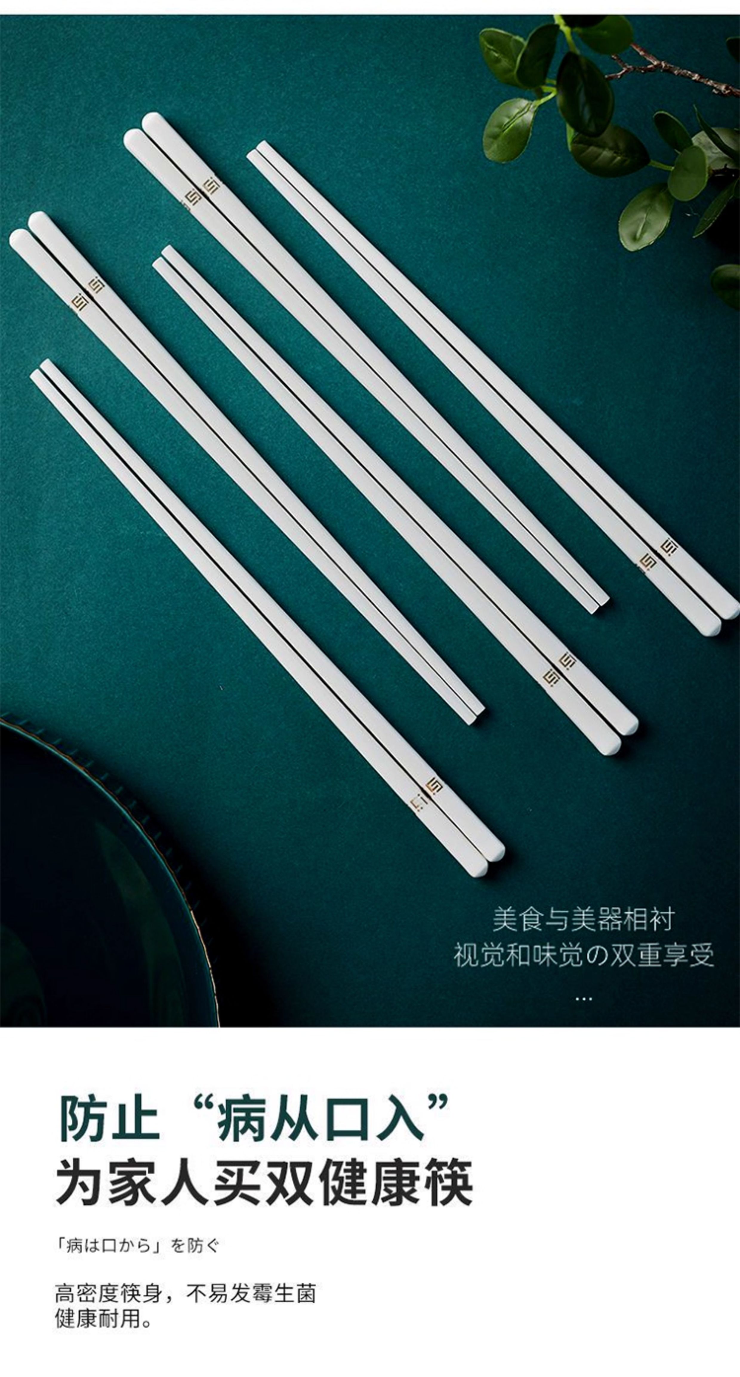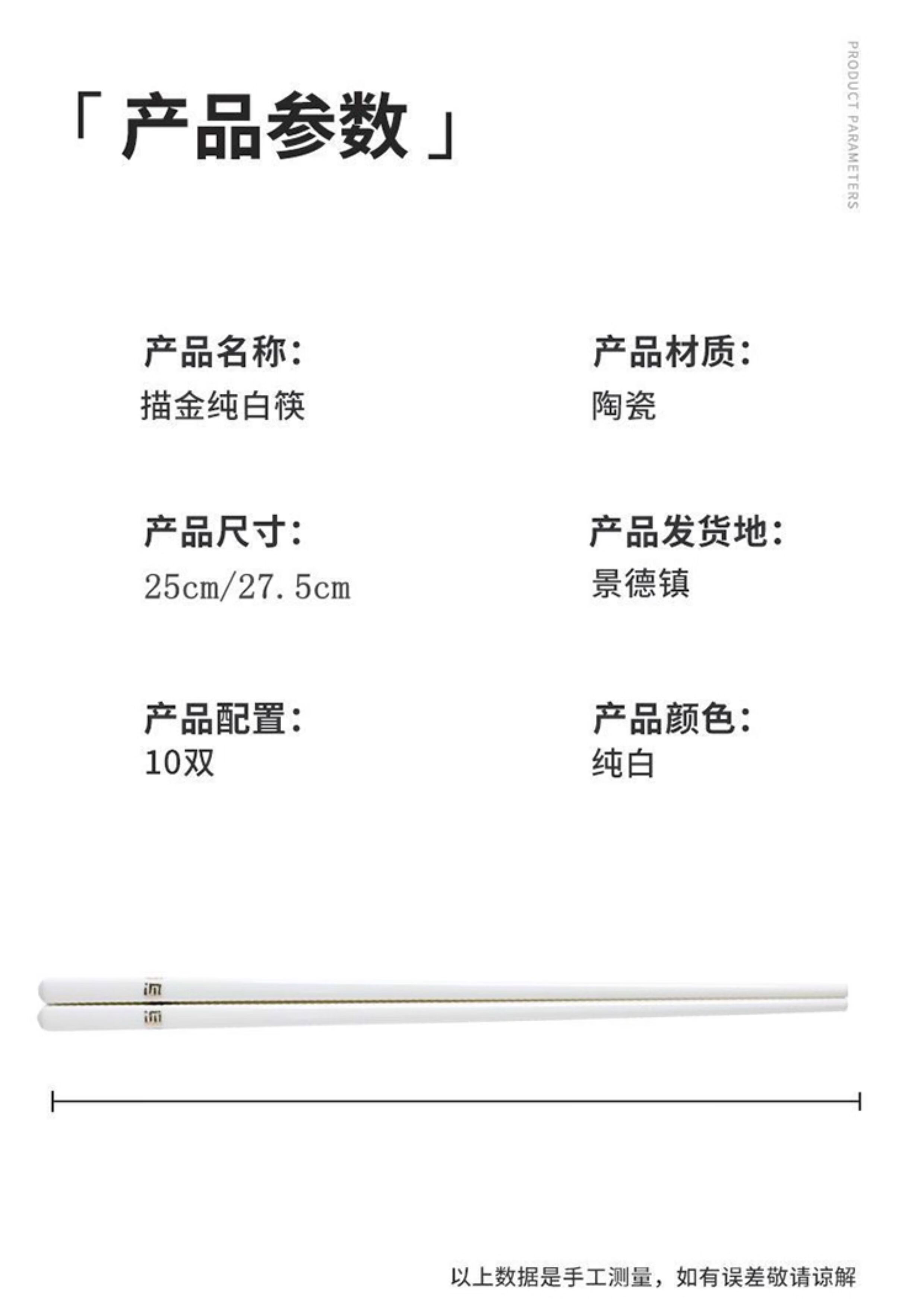 妙得简约轻奢陶瓷筷子10双景德镇瓷家用耐高温食品级防滑餐具送礼 简约金-筷子10双装(送饭勺)
