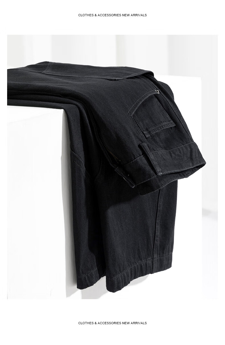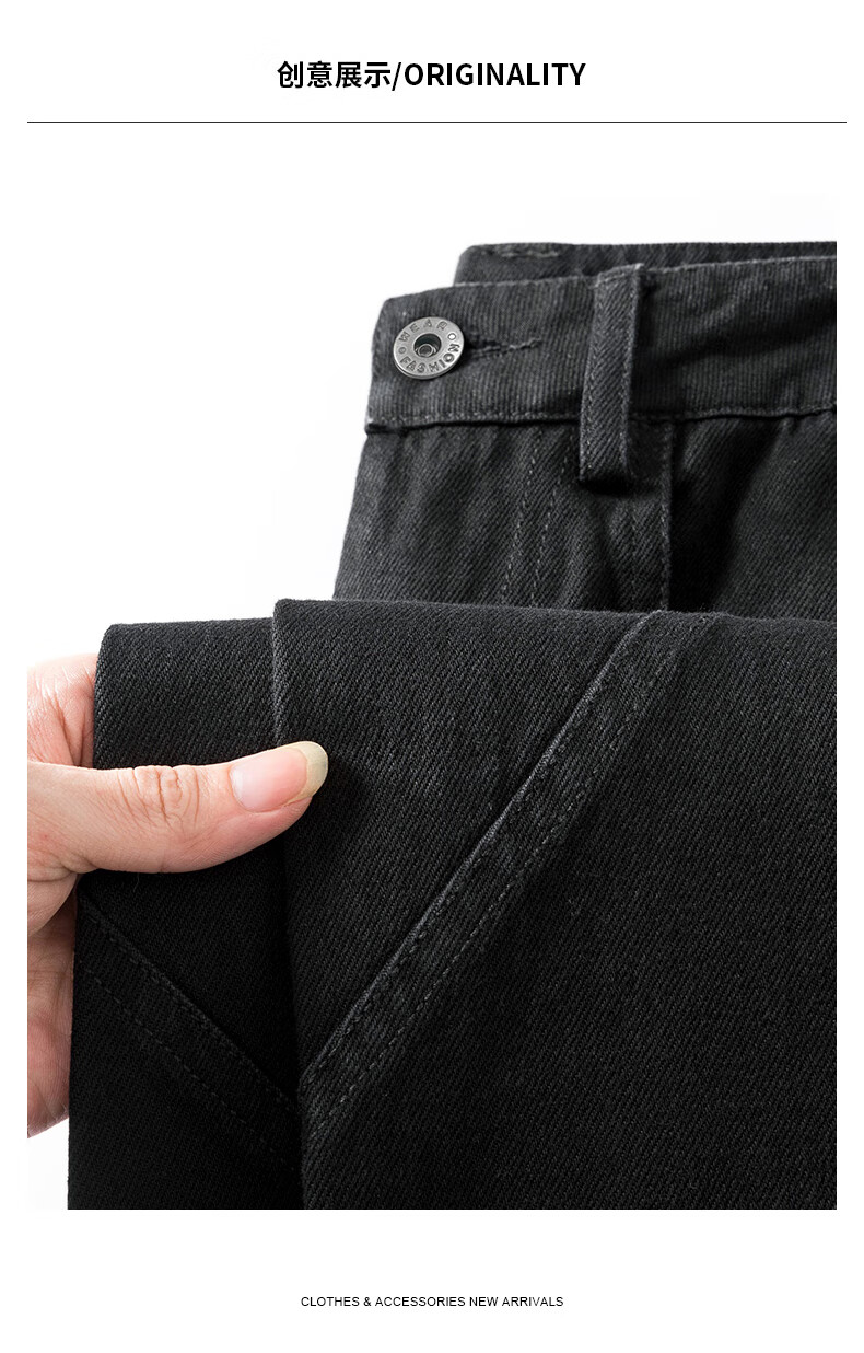 HIPANDA你好熊猫牛仔裤男2025秋冬新款休闲经典保暖加绒直筒牛仔长裤子男 黑色-加绒款 XL