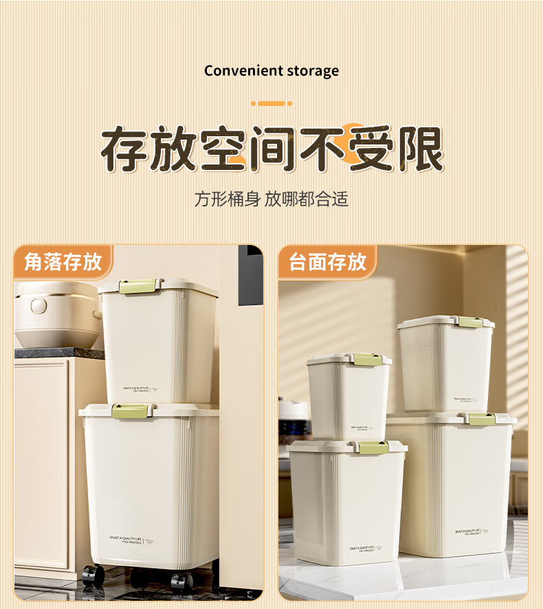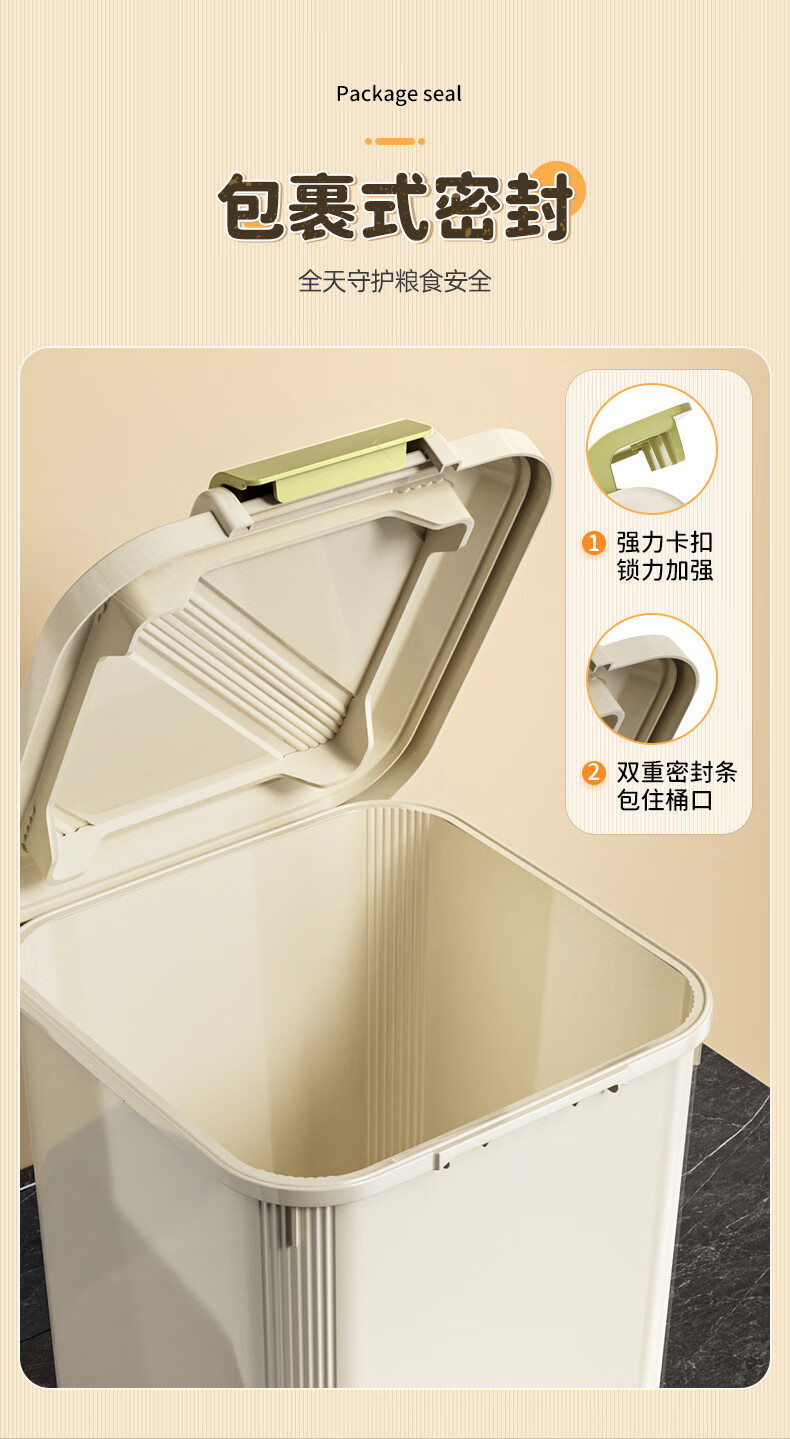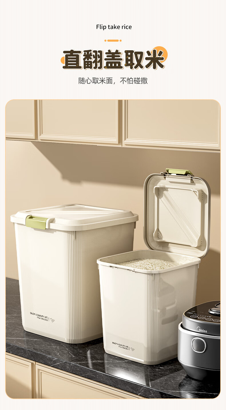 稻草熊米桶大容量大米密封储粮桶直翻盖家用防虫防潮加厚面粉面桶米缸桶 【10斤】配量杯/密封防潮