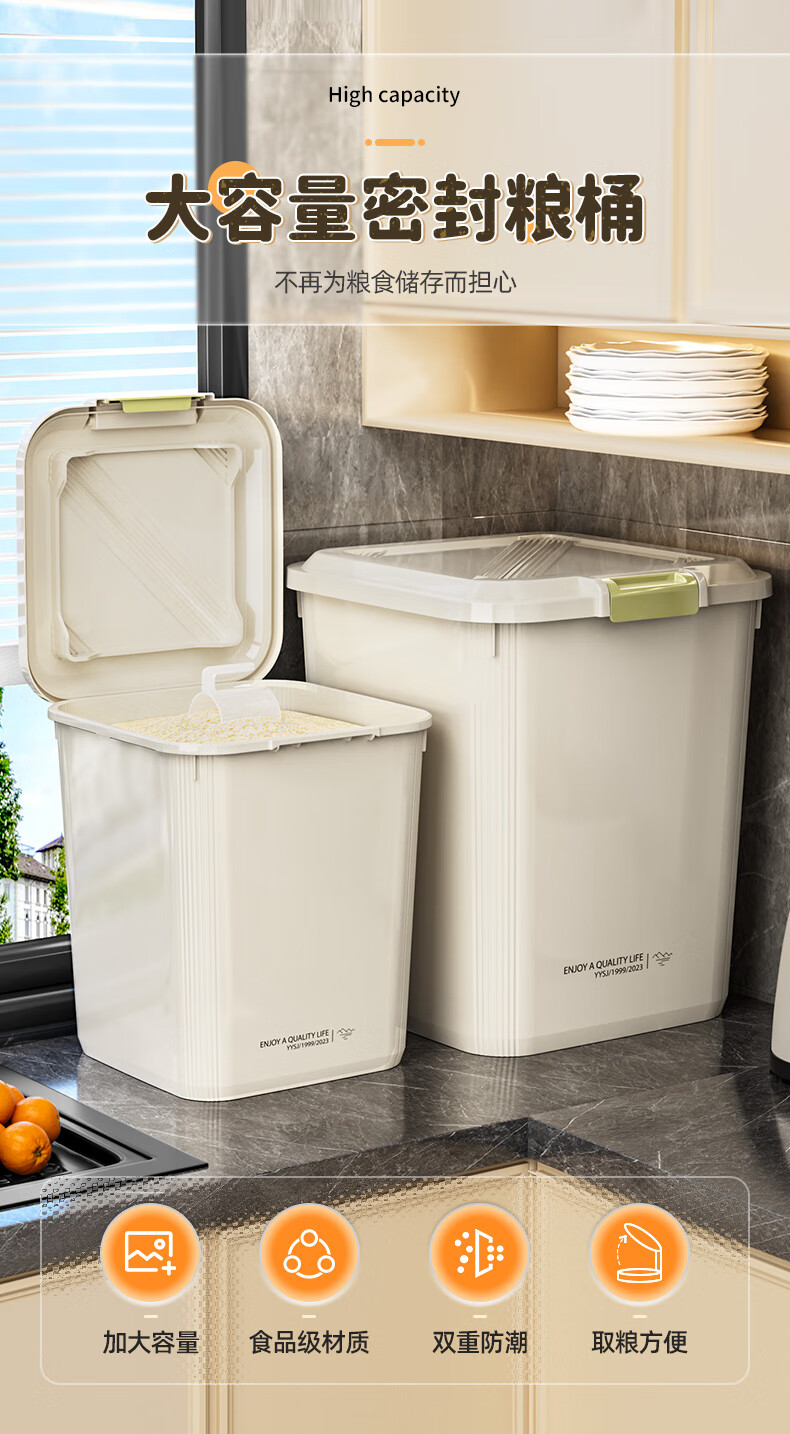禧天龙米桶五谷杂粮收纳罐密封家用米缸收纳盒储米箱杂粮盒 带量杯【1.7L】两个装