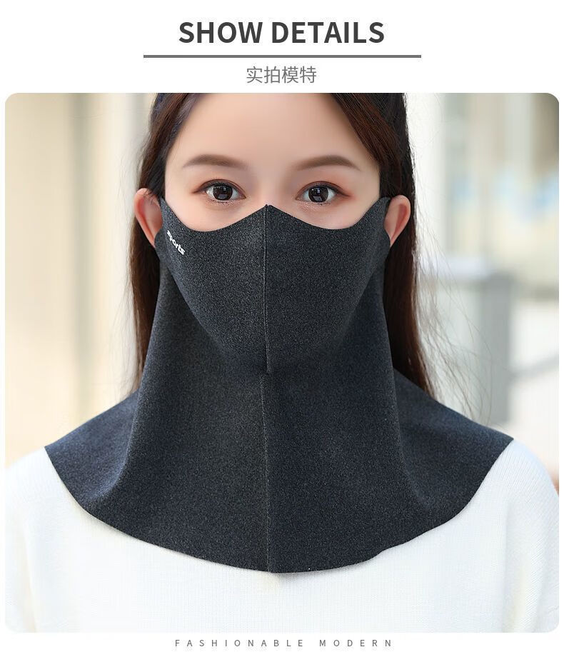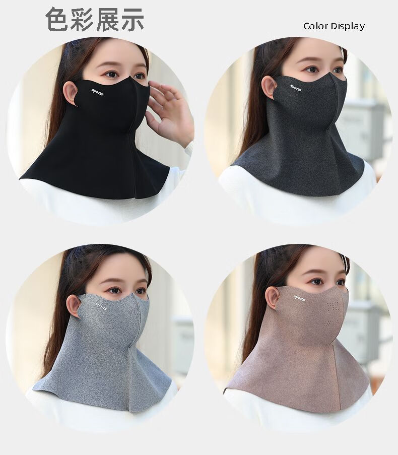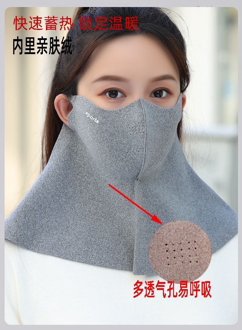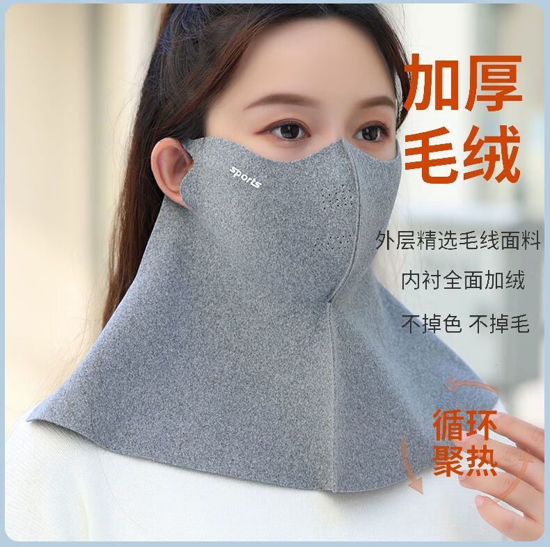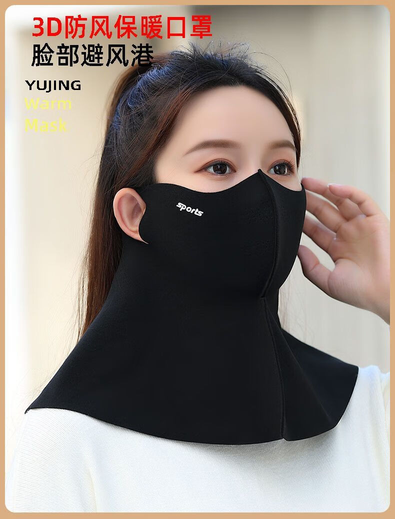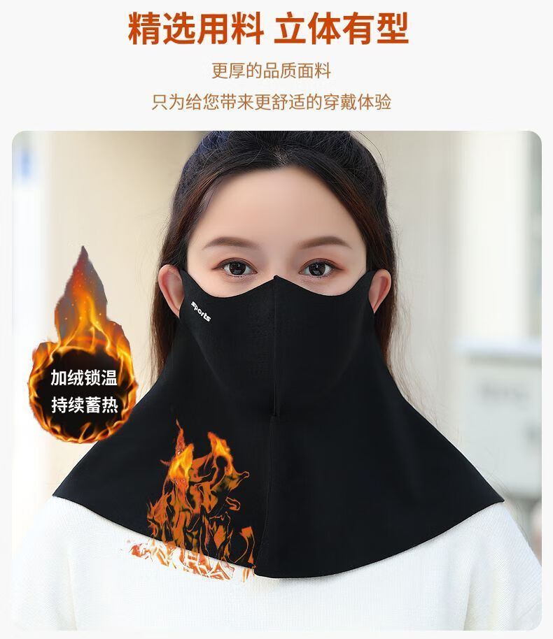 口罩围脖一体秋冬季防寒保暖透气加绒布成人户外骑车男女护脸面罩 无痕护脖秋冬(黑色)单件装