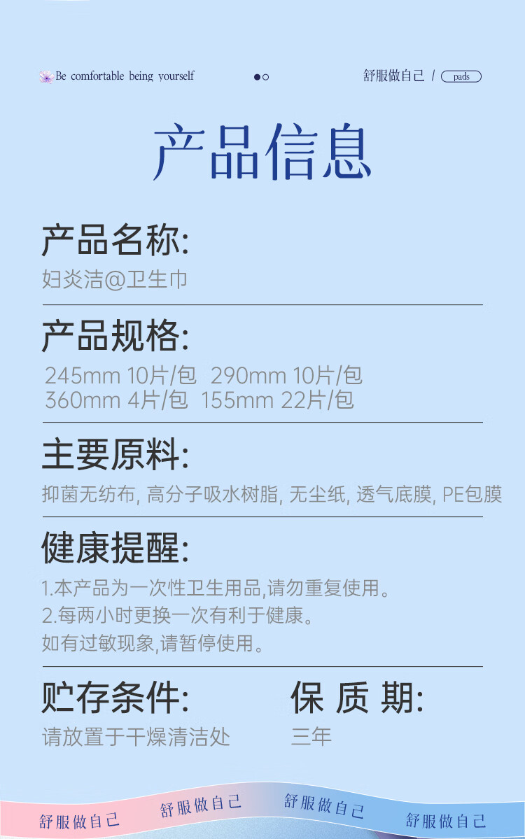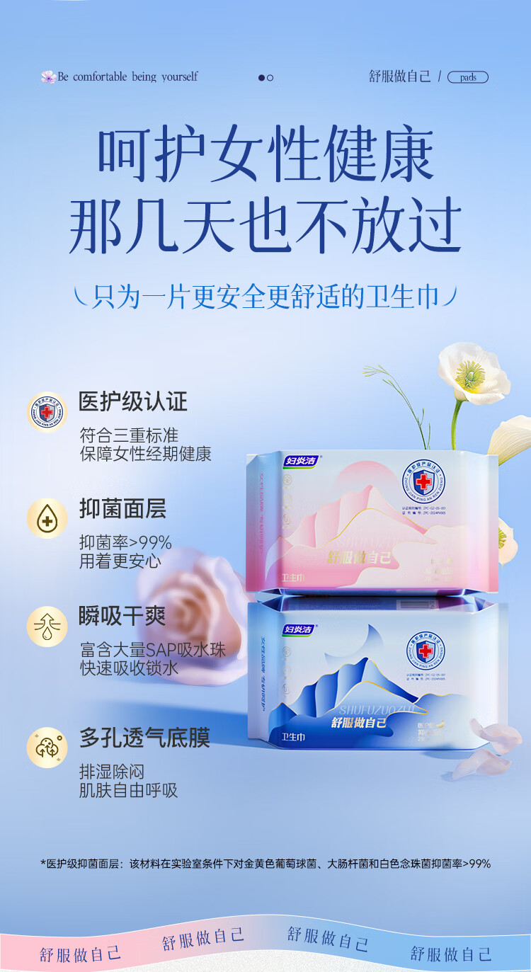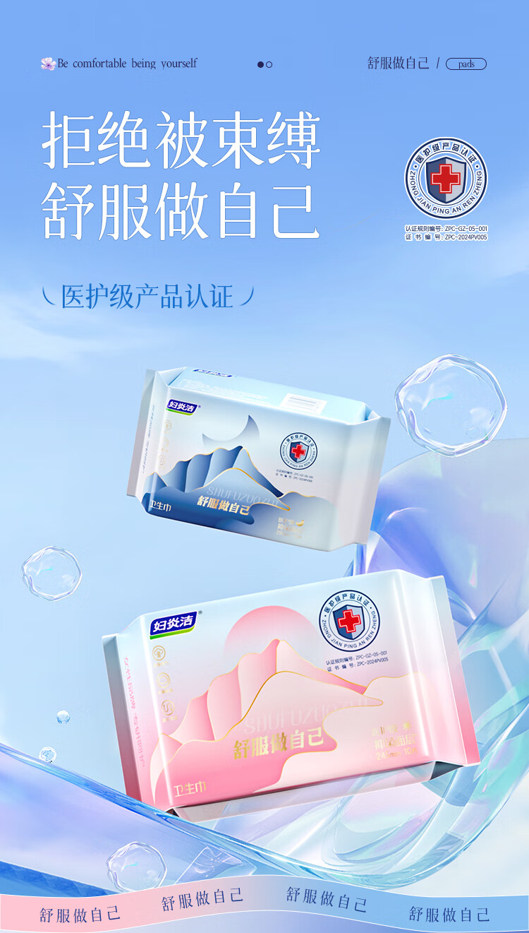 妇炎洁【任选6组】医护级抑菌超薄透气棉柔卫生巾日用夜用组合护垫姨妈 医护级日用1包