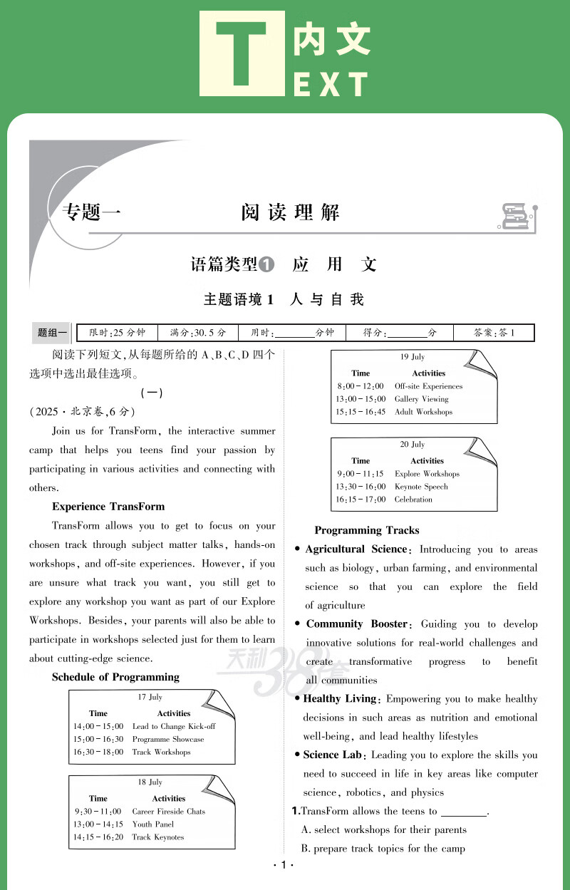 25秋一本周末小测卷七年级上册初一练习册试卷单元检测卷课本同步 【七上】英语-译林版