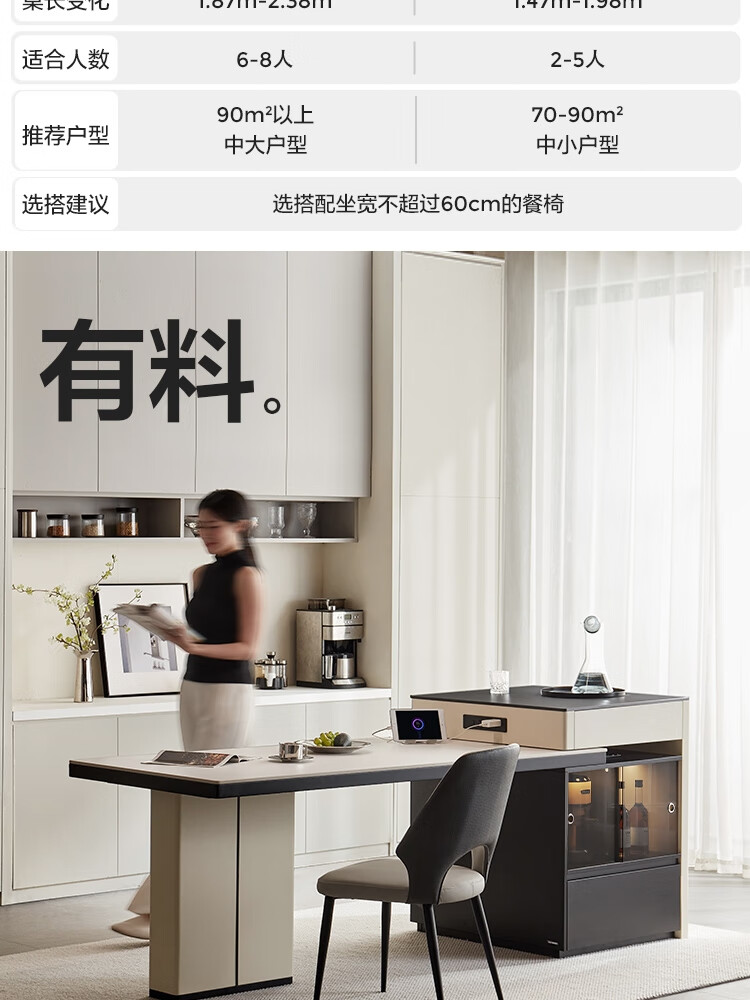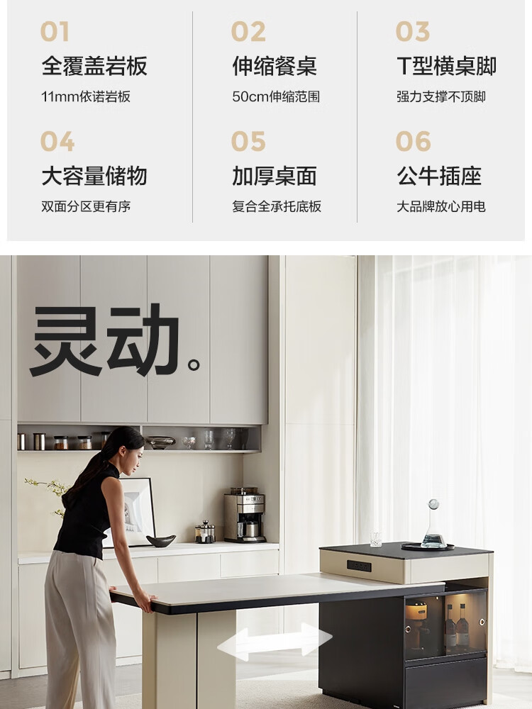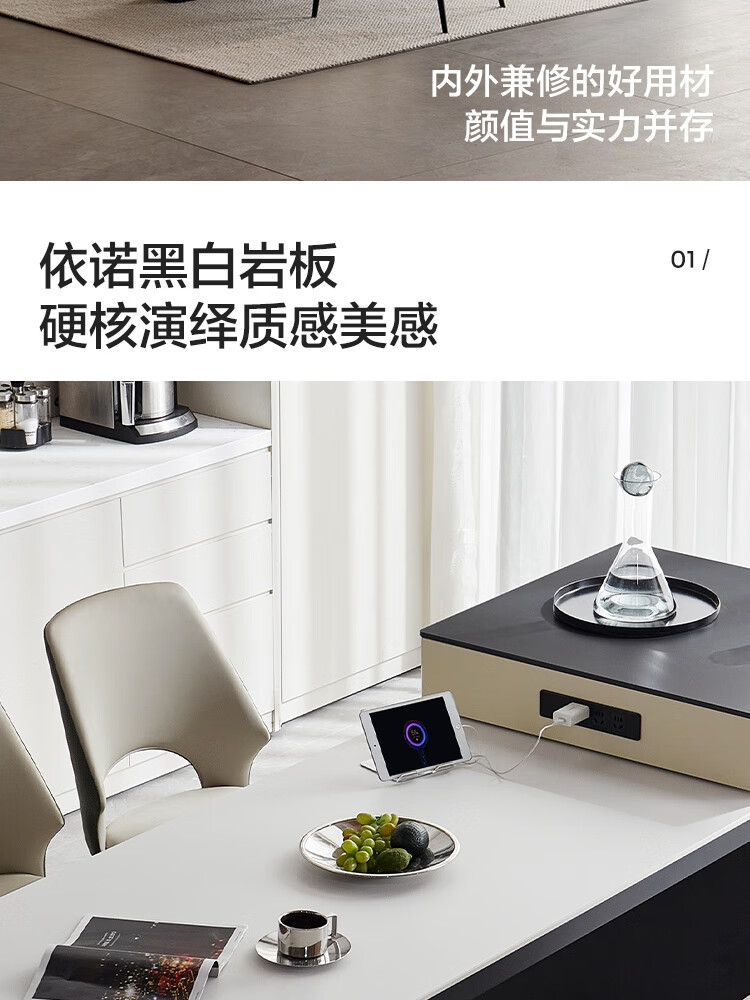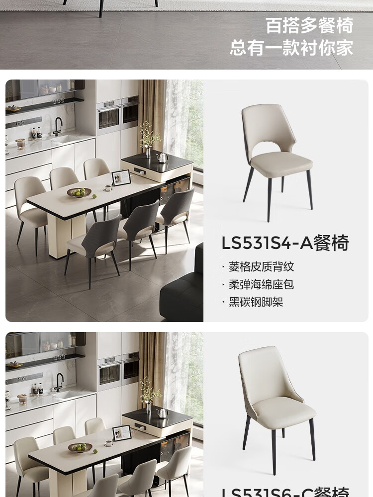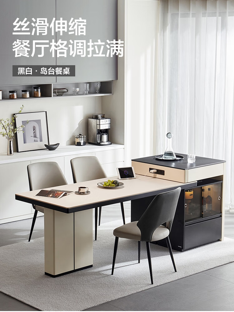林氏家居新款岛台餐桌一体家用可伸缩轻奢现代岩板餐桌小户型饭桌意式RI1R 【1.9m|4椅】岛台餐桌+餐椅531-C