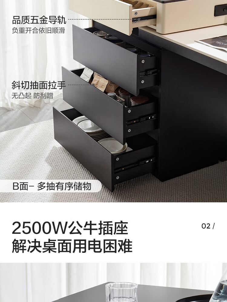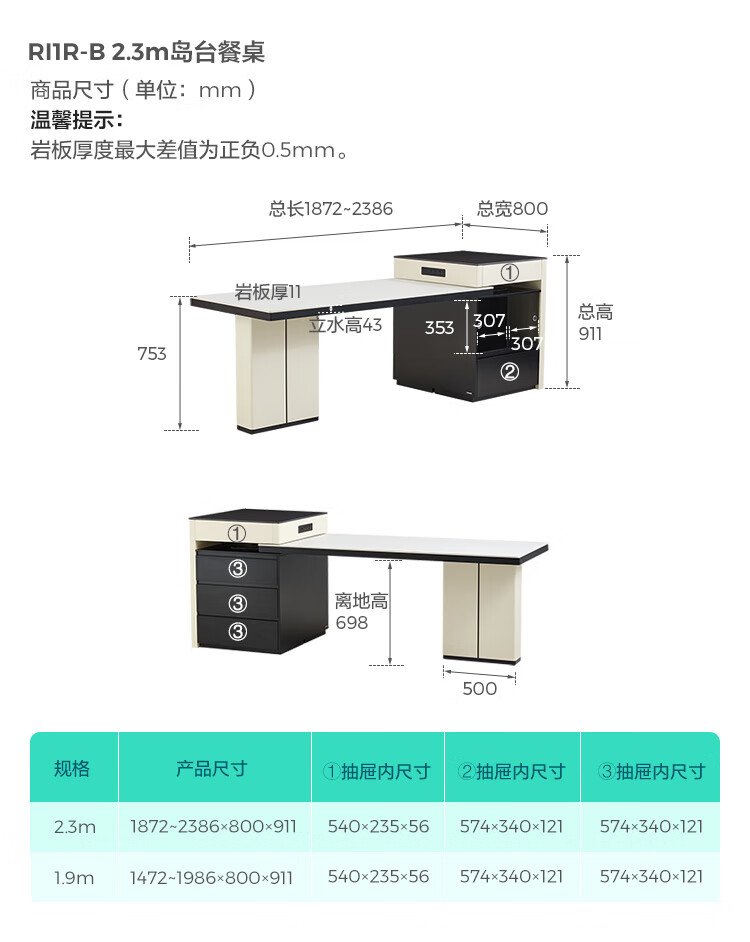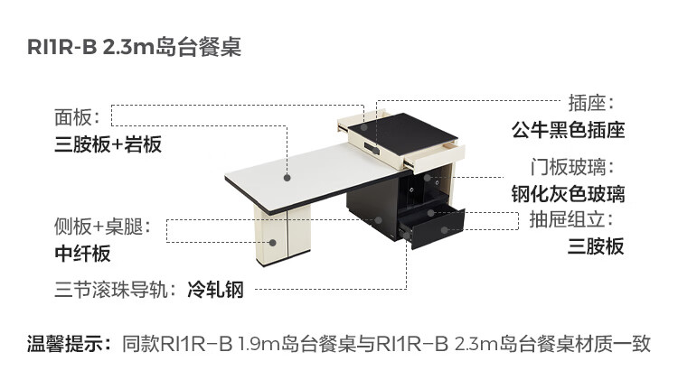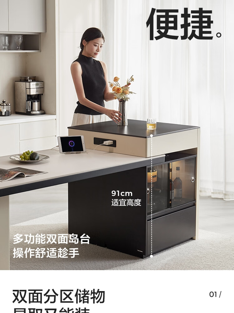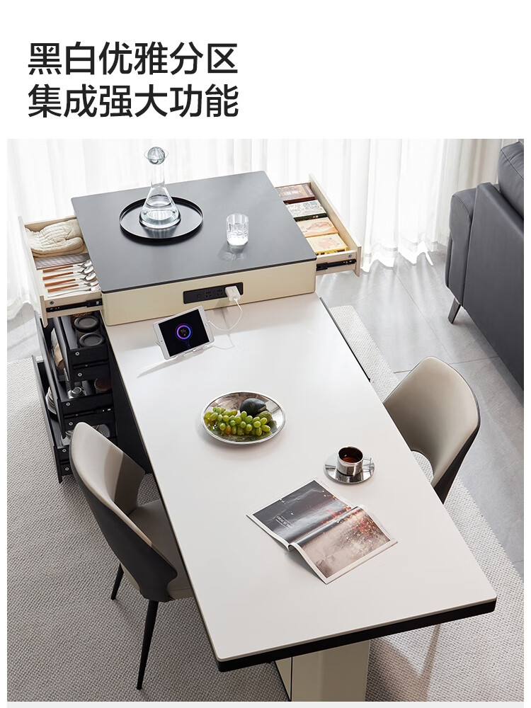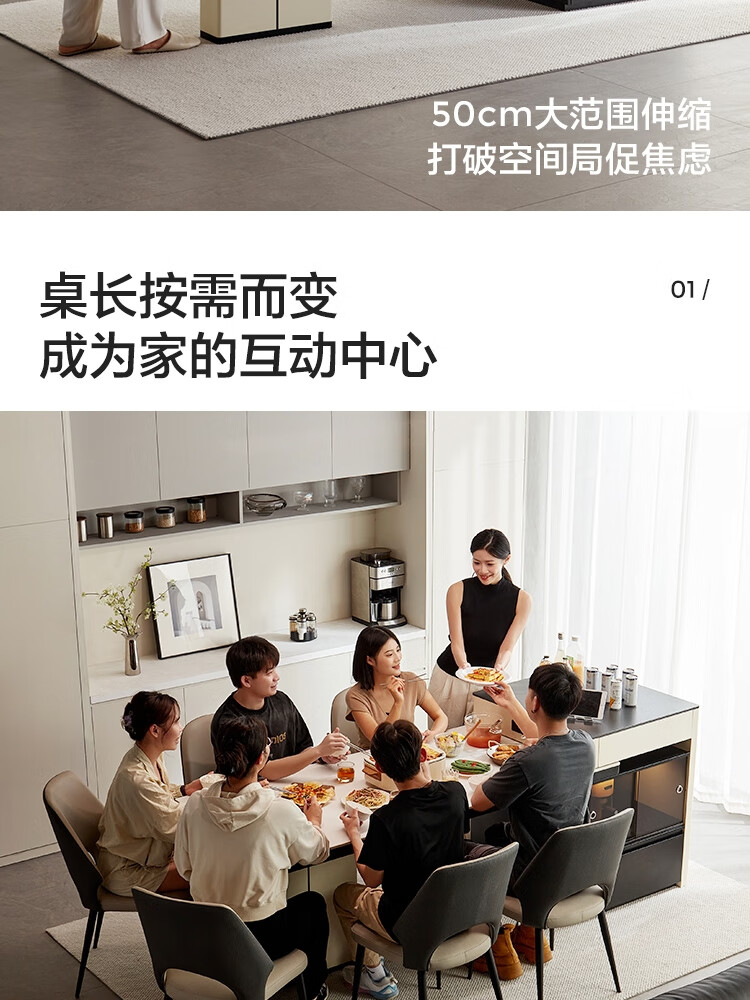 林氏家居新款岛台餐桌一体家用可伸缩轻奢现代岩板餐桌小户型饭桌意式RI1R 【1.9m|4椅】岛台餐桌+餐椅531-C