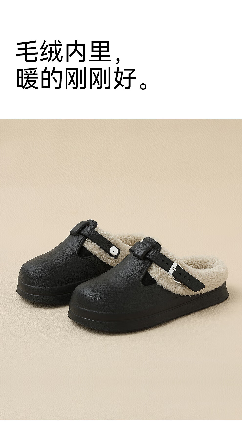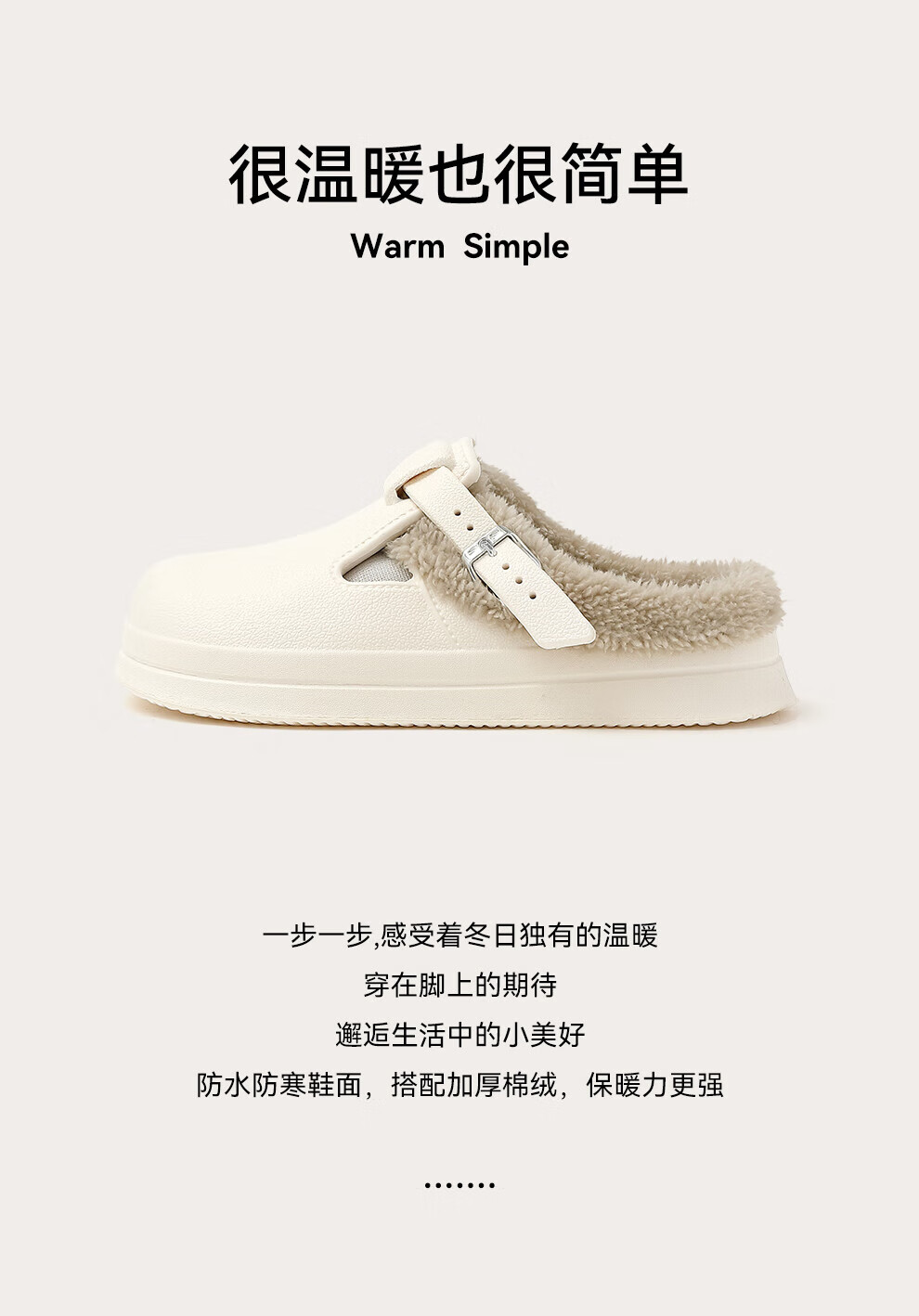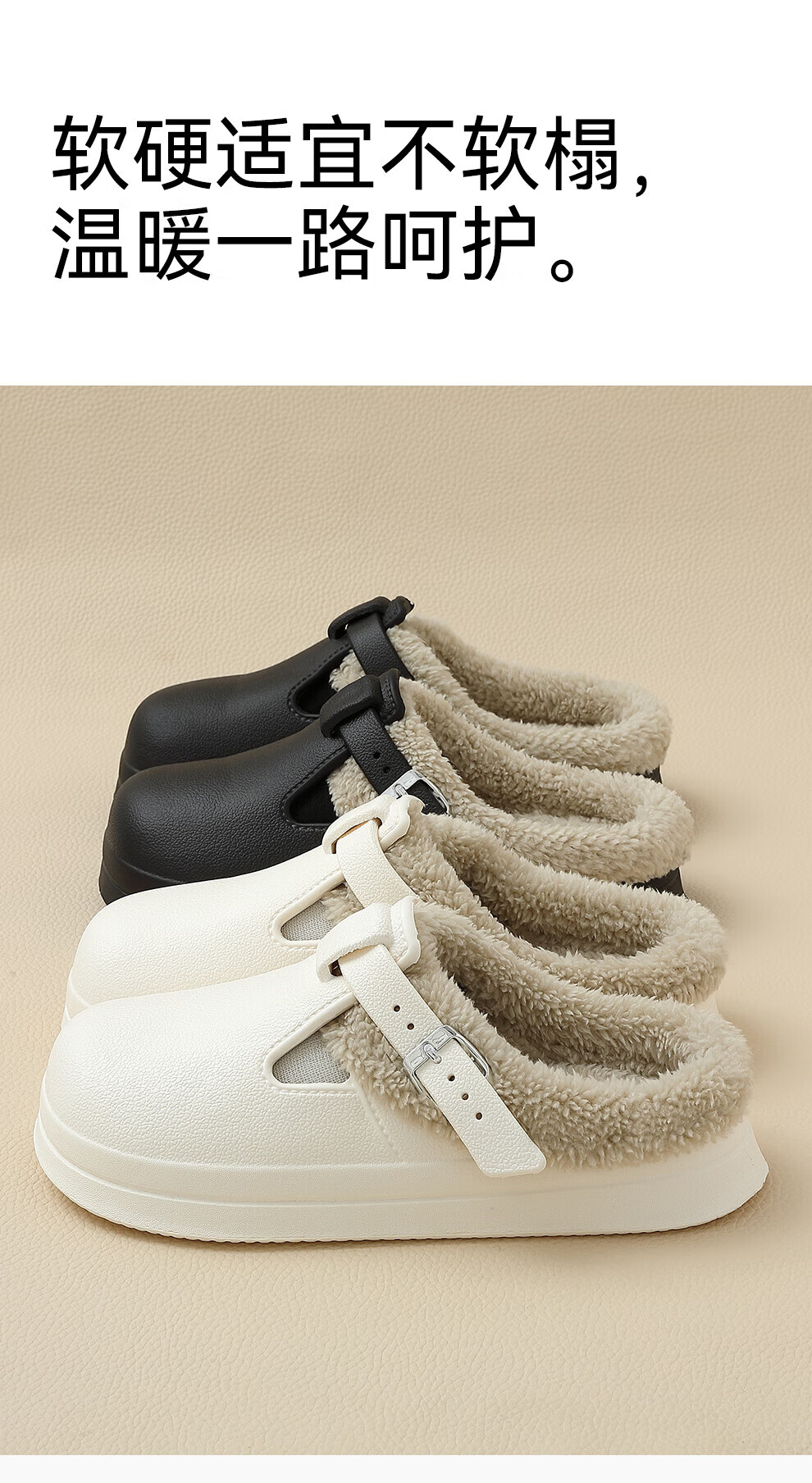 FZT包跟棉拖鞋女2025秋冬新款防滑防臭室内家居简约毛绒绒棉鞋男外穿 粉色 38-39 适合37-38【内长235mm】