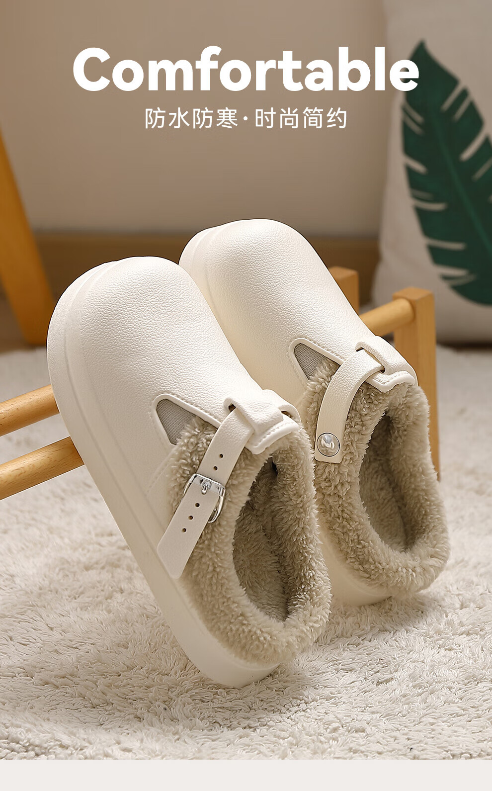 FZT棉拖鞋女冬季EVA防水毛绒保暖室内居家用可外穿脖肯鞋2025新款男 卡其色 38-39 标准码