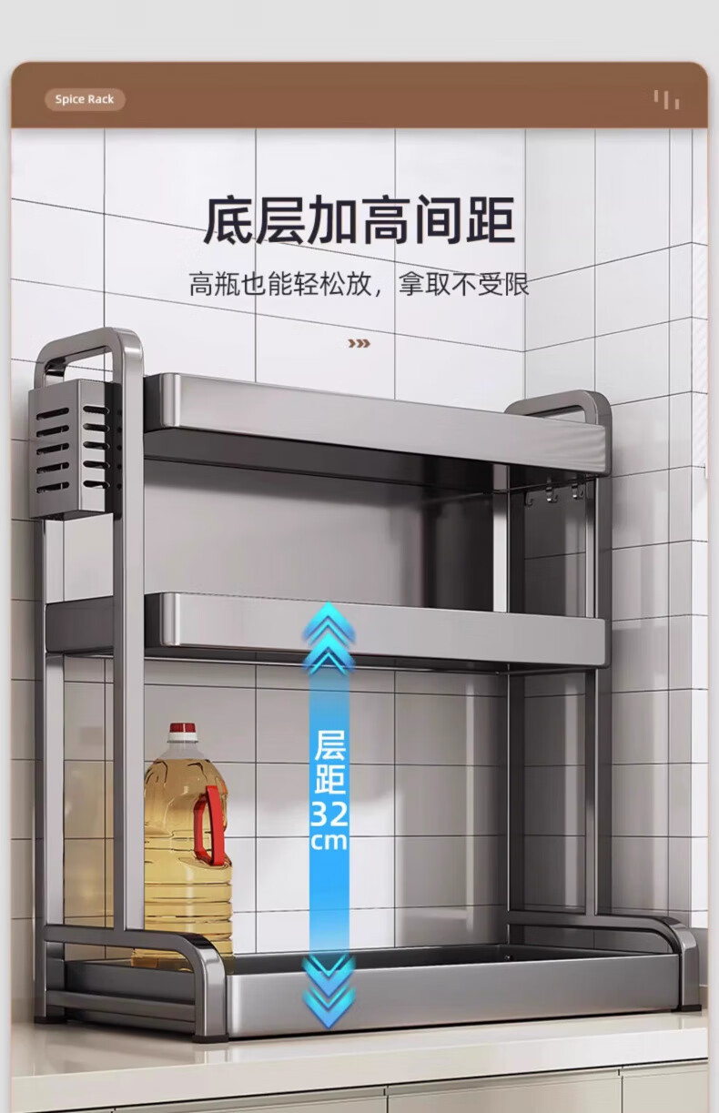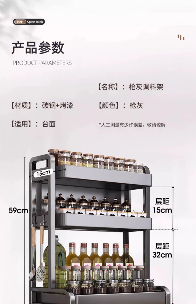 AILUKI日本厨房置物架台面刀架多功能调料架油盐酱醋调味品家用收纳置物 团购