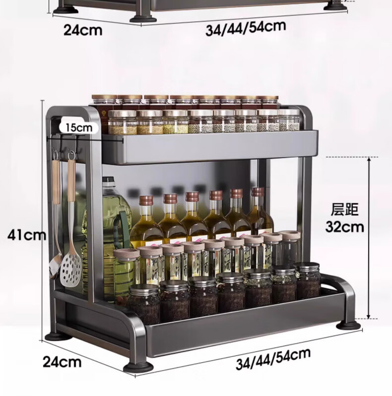 尔思家厨房调料品置物架多功能台面可壁挂多层窄边调料盒瓶罐架子收纳篮 双层-枪灰色-带板