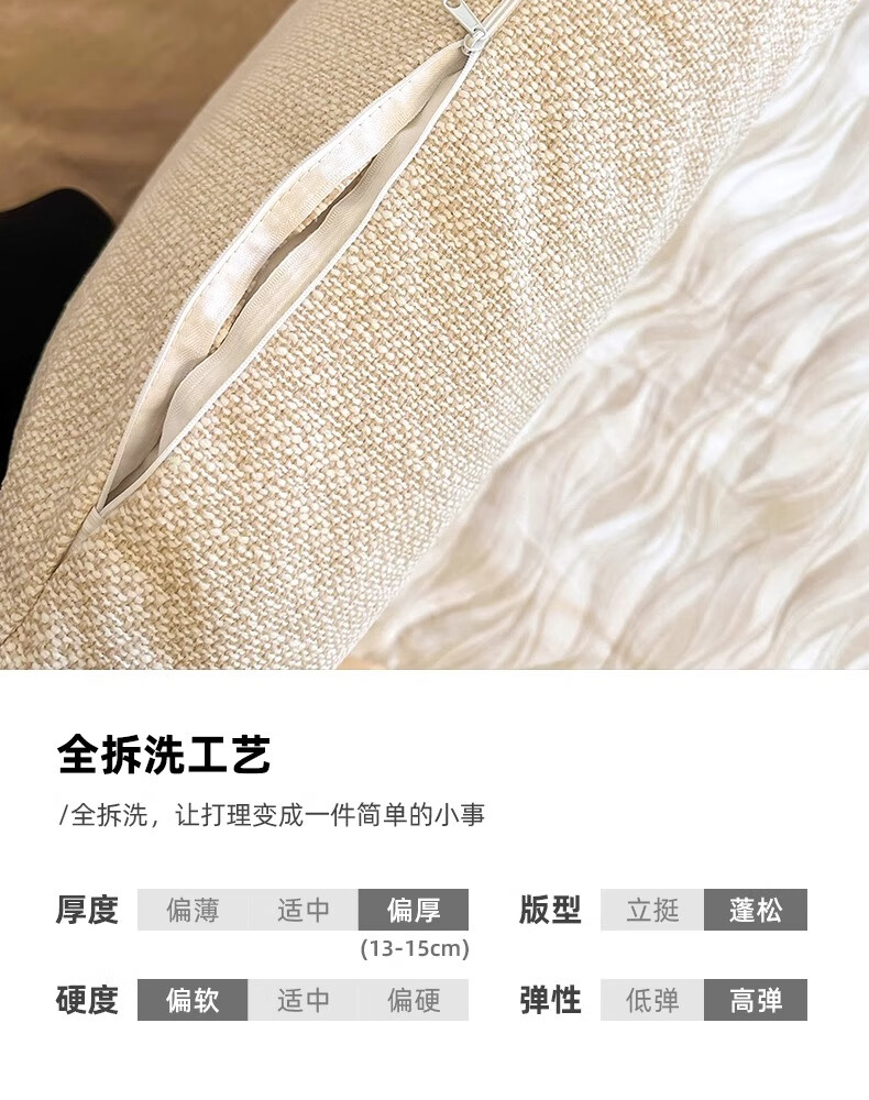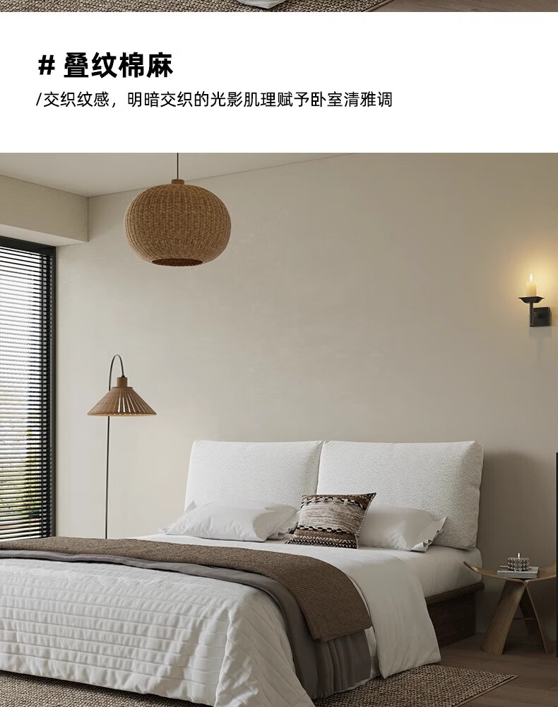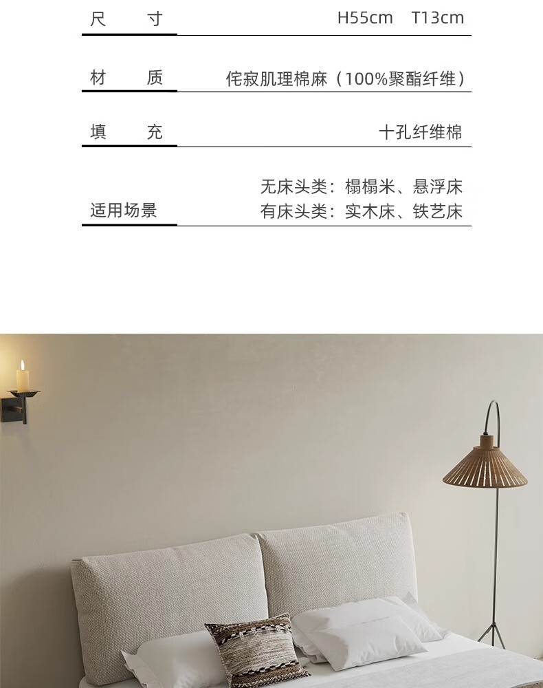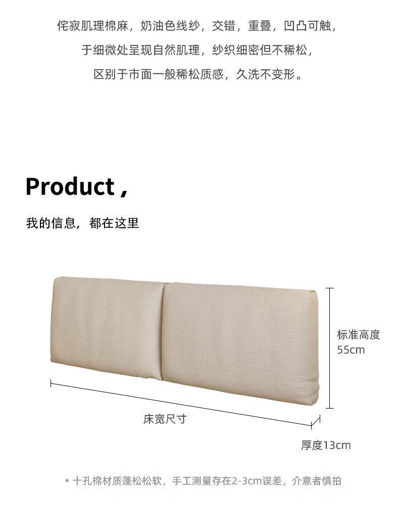 之于间可拆洗棉麻床头靠背软包靠枕沙发靠背垫榻榻米靠墙床上靠枕靠垫 叠纹棉麻 【侘寂风首选】 75cm*55cm*13cm 含枕芯 (2件)【即床宽150cm】