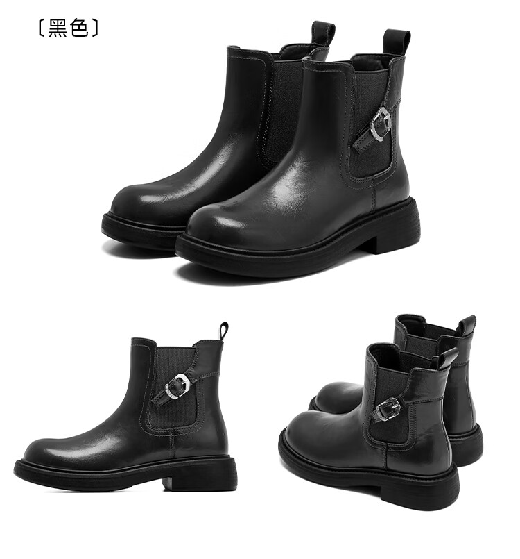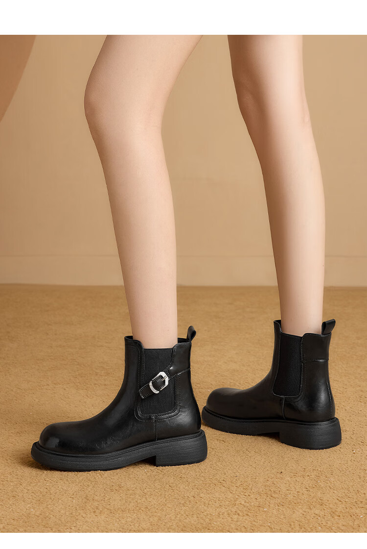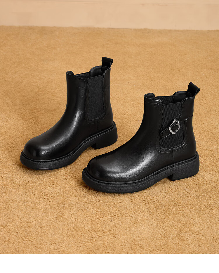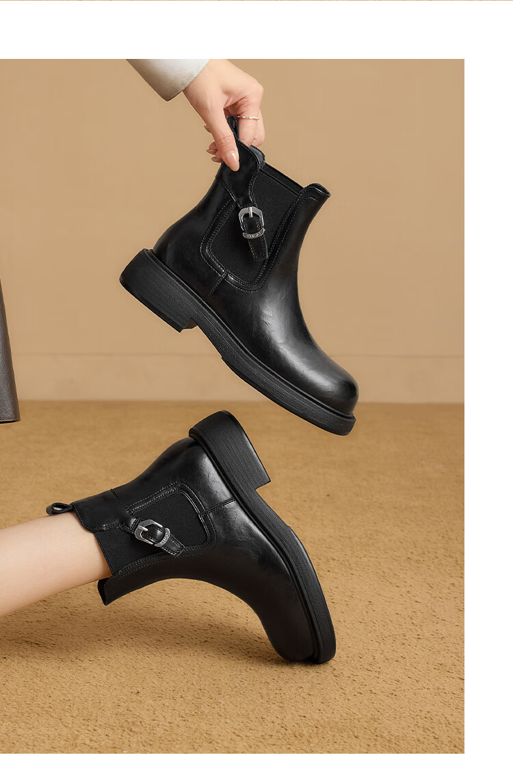 星期六2025秋季新款厚底切尔西靴女时尚百搭马丁靴英伦风增高短靴 黑色 【厚底增高】 37